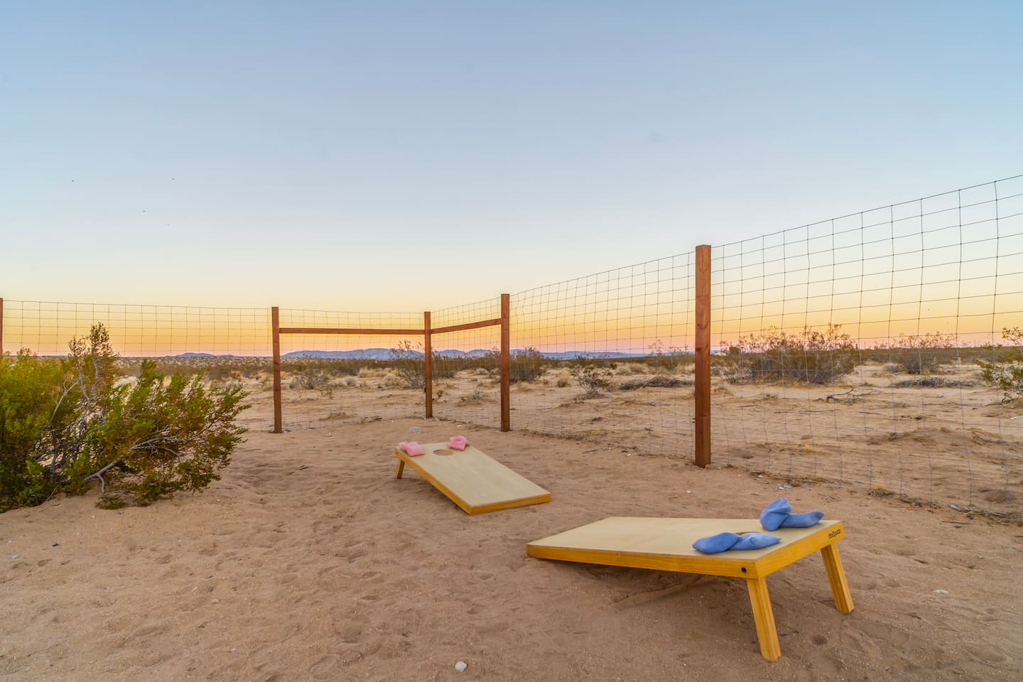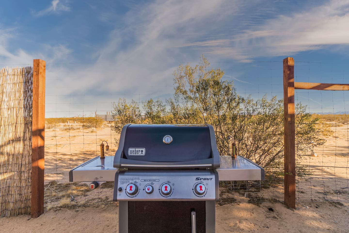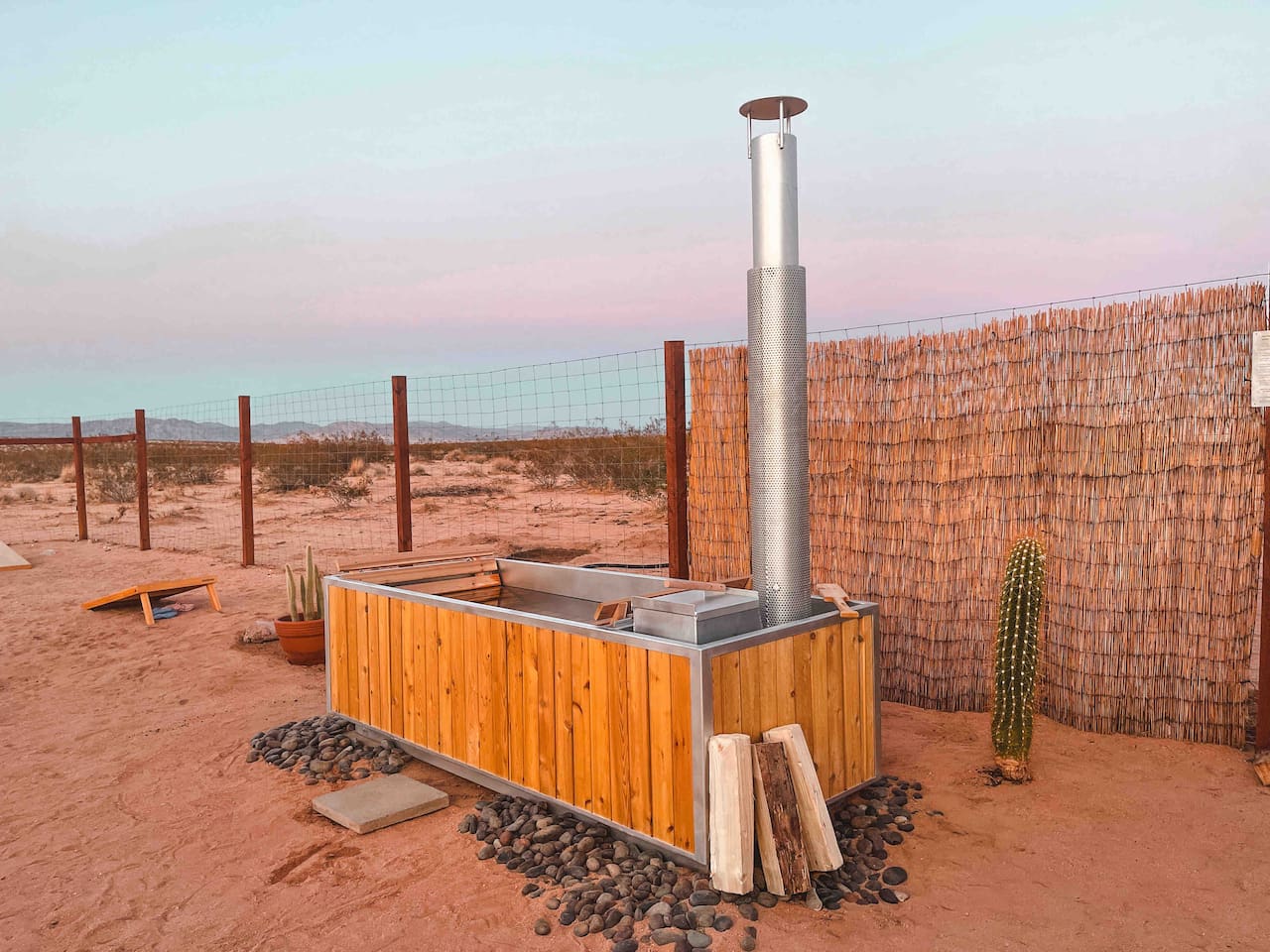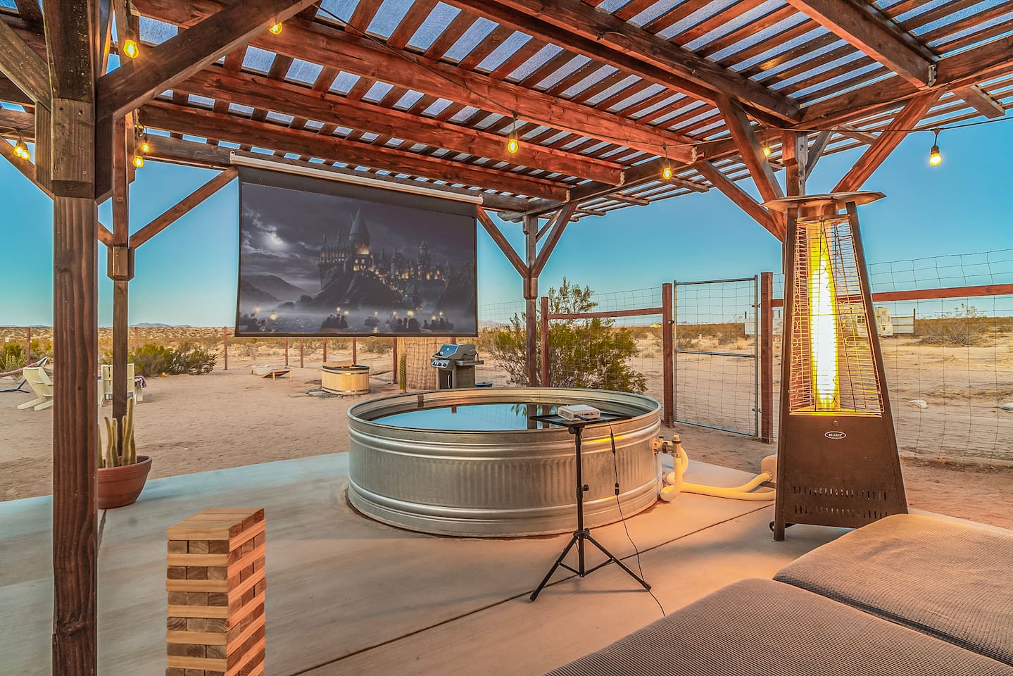 The wood-fired hot tub takes about 90–120 minutes to heat; bring your own firewood and kindling. Both the firepit and hot tub must not be used if the wind is above 10 mph (county rule). Roads are sandy; most cars are fine, but very low vehicles or large vans may have difficulty. House on the property: We live next door on the property. You might see us in the driveway (we'll say hello if so!) or hear us in our yard, but we’re quiet and keep to ourselves. The yards are separated by a fence with privacy panels. There is a military base in 29 Palms, on a very rare occasion we can hear training. Check-in: 3 PM Check-out: 11 AM Pet friendly (2 dogs max). No dogs on furniture or left unattended. Smoking outdoors only. Wildlife: You may spot coyotes, jackrabbits, roadrunners, lizards, and other desert creatures. The desert is peaceful but alive with nature, keep doors closed and food sealed, and enjoy the quiet rhythm of this wild landscape.
