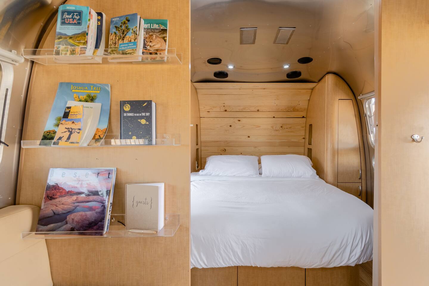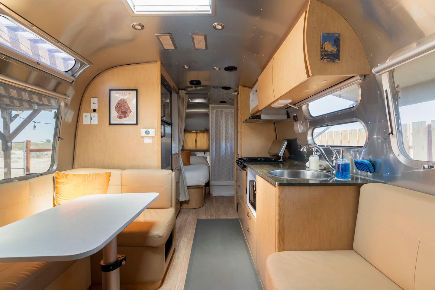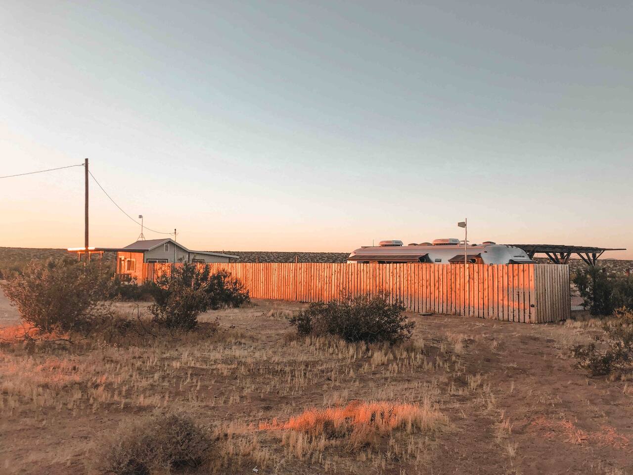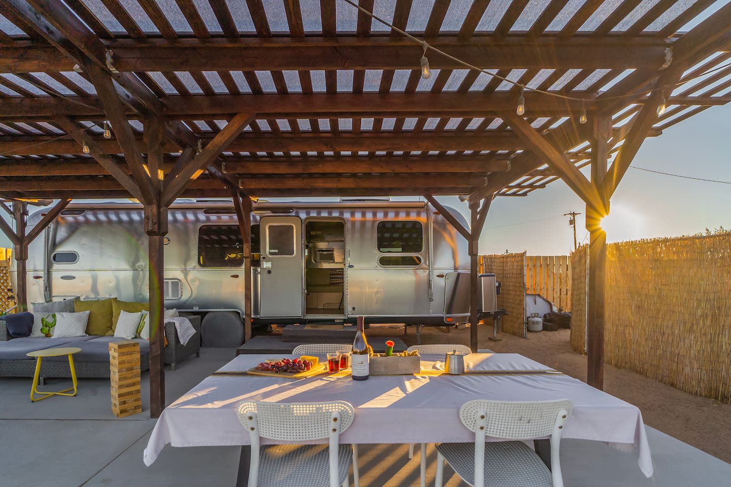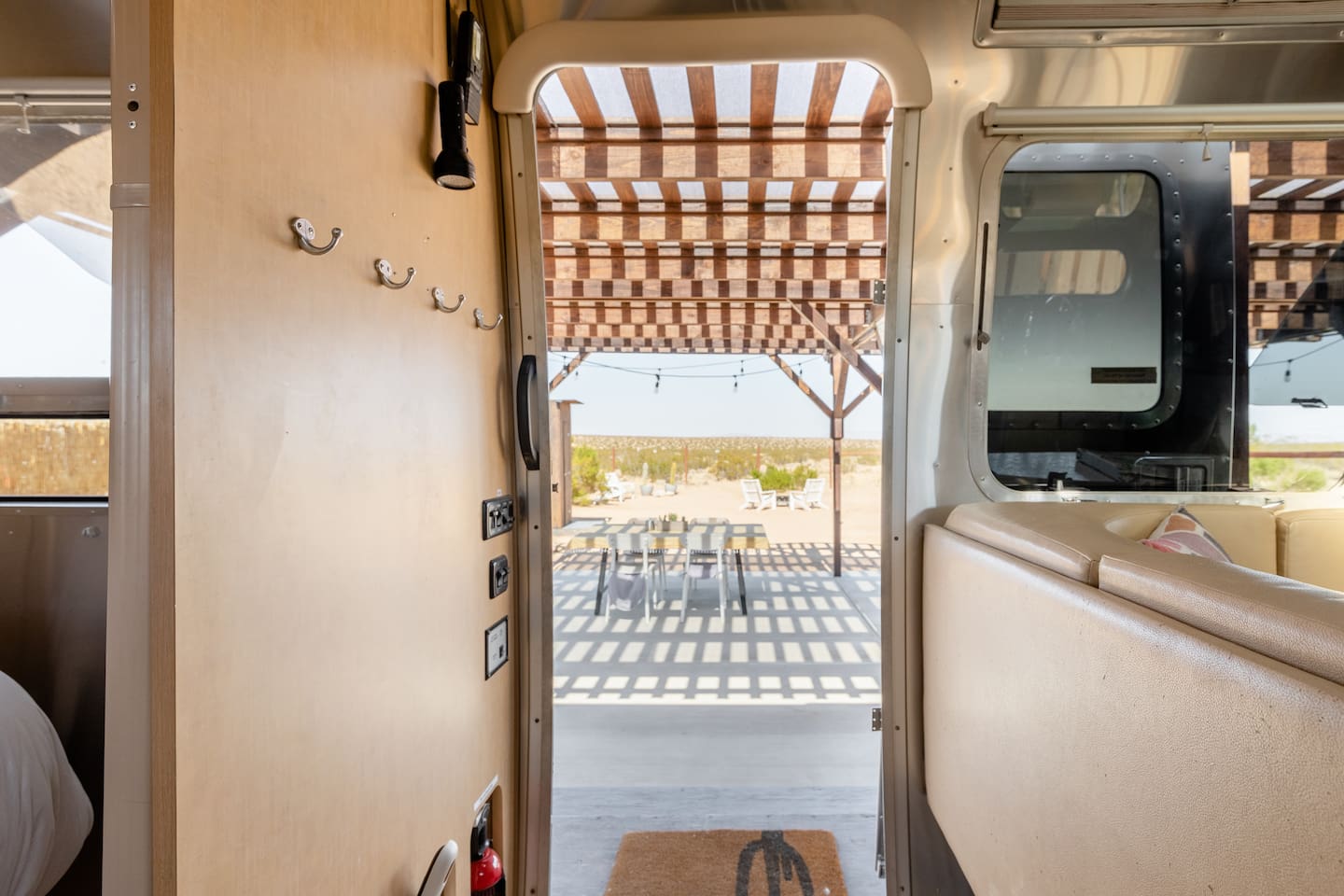 Perfect for up to two people, our 2016 Flying Cloud Airstream sits on five acres in a fenced, private yard, next to a large patio with a pergola. COMFORT: Inside, the Airstream is equipped with two air conditioners to keep you cool in the spring/summer. In the fall/winter, the Airstream is heated with a furnace and stays very comfy. We also have a back up electric heat system, so you'll always stay warm. Outside, there are misters on the patio to help keep you cool when it's hot and we have an 8 ft stock tank pool. When it’s chilly, there’s a patio heater. BEDS: The Airstream has one bedroom with a queen bed and an accordion door. There is another sleeping area in the back with bunk beds. Two adults fit comfortably in the main bedroom. In the back, the bottom bunk is between a twin and a full size, the top bunk is smaller and has a weight limit of 125 lbs. There is a curtain to close off this back sleeping area. We usually don't accept more than two guests, but if you are interested in bringing your kids, please reach out to inquire. COOKING: There is a kitchen with a sink, propane stove top and a microwave. We do not have an oven. There is a propane BBQ available outside (propane is provided). There is running hot and cold water in the Airstream and a refrigerator with freezer. We provide plates, cups, silverware, pots, pans, cooking utensils, etc. There is also a coffee and tea station with a Nespresso machine, a French Press and an electric tea kettle. We provide Nespresso pods, creamer, sugar, various teas and single serve coffee that comes in a tea bag (normally we would provide ground coffee but with our added COVID safety measures in place, we're keeping everything single serve. You may want to bring your own ground coffee). WATER: The water to the Airstream is drinkable. BATHROOM/SHOWER: We have an outside shower with hot and cold water. There is also a hot/cold indoor shower. There is an outhouse with a dry toilet a few steps from the Airstream. PATIO/YARD: The large patio is fully shaded and has a dining table with chairs and an outdoor couch. There is a propane fire pit in the yard. We have giant Jenga and ladder ball for you to enjoy. POOL: We have an 8 ft stock tank pool to keep you cool in the warm weather. TECH: There is a TV with Fire Stick with Amazon Prime and Disney+ in the bedroom. We can also provide a projector for big screen moves on the patio (super fun!). We have Wifi and most cell service works here. PETS: Up to two well behaved dogs allowed. They are not allowed on any of the furniture/beds. They can be off-leash inside the fenced yard (the fence is 6 ft). ROADS/DRIVING: We are located off the pavement and the roads are a bit rough. 4WD is nice but not necessary (we have both an AWD and a 2WD), most cars have no issue getting here but it can be tricky for very low cars. COVID SAFETY: We live on the property but are fully socially distancing and will give you your space and privacy. If there is an issue and we need to come over, we will be masked and will socially distance. We are taking extra cleaning and sanitizing measures. *We are fully vaccinated, as it our cleaning team. This is not a guarantee of anything and we will continue to wear our masks but it is info we are happy to share with you.* We also request that you socially distance and wear your masks properly while in town. Let's keep everyone safe :) THANK YOU: We love hosting and it's our goal for you to have the best time out here in the desert! If you'd like to connect on IG: @adventurejoshuatree