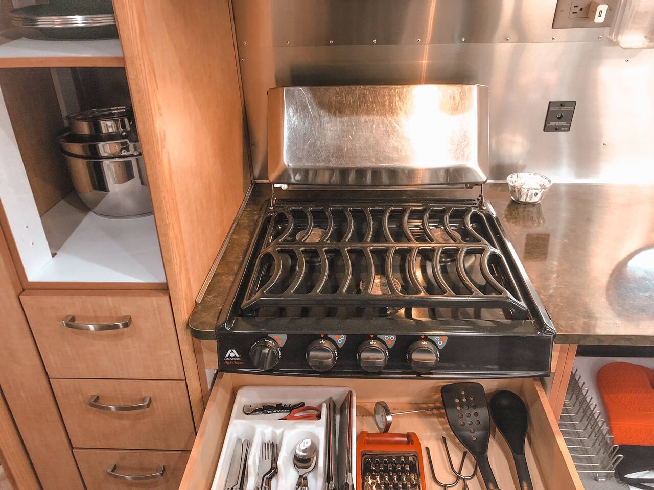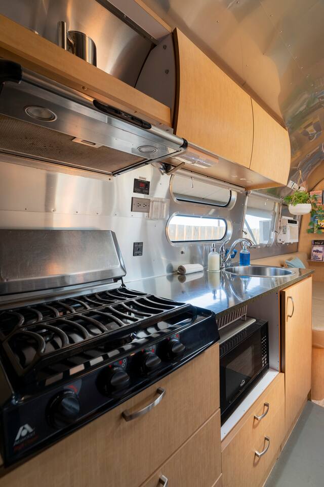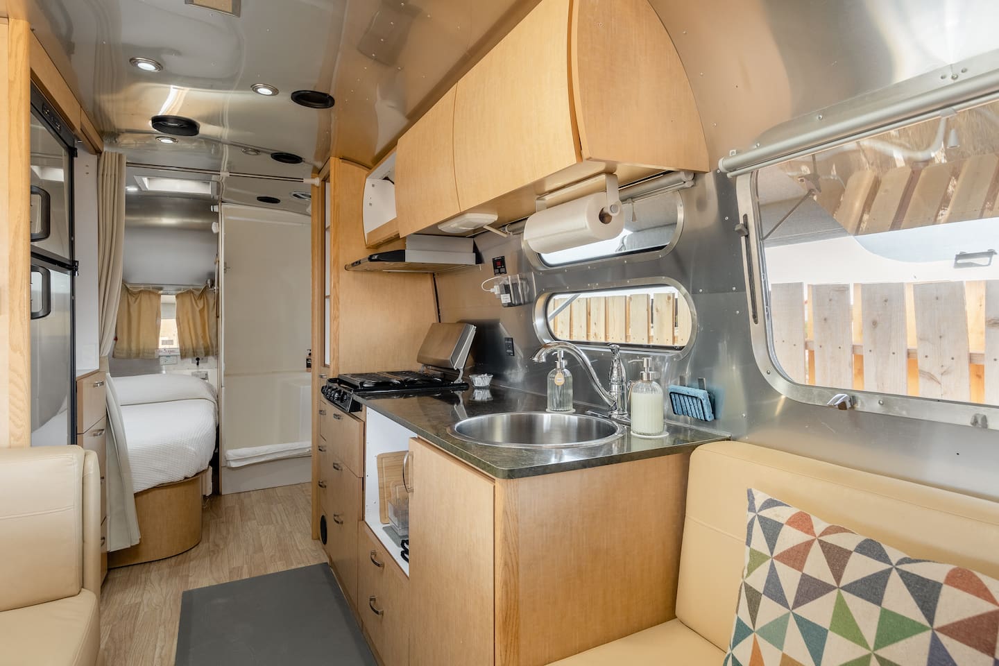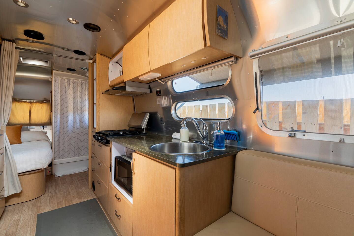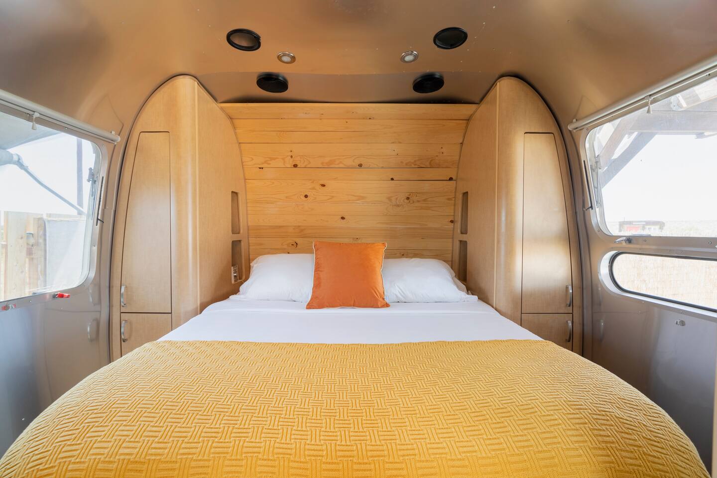 Perfect for up to two people, our 2016 Flying Cloud Airstream sits on five acres in a fenced, private yard, next to a large patio with a pergola. COMFORT: Inside, the Airstream is equipped with two air conditioners to keep you cool in the spring/summer. In the fall/winter, the Airstream is heated with a furnace and stays very comfy. We also have a back up electric heat system, so you'll always stay warm. Outside, there are misters on the patio to help keep you cool when it's hot and we have an 8 ft stock tank pool. When it’s chilly, there’s a patio heater. BEDS: The Airstream has one bedroom with a queen bed and an accordion door. There is another sleeping area in the back with bunk beds. Two adults fit comfortably in the main bedroom. In the back, the bottom bunk is between a twin and a full size, the top bunk is smaller and has a weight limit of 125 lbs. There is a curtain to close off this back sleeping area. We usually don't accept more than two guests, but if you are interested in bringing your kids, please reach out to inquire. COOKING: There is a kitchen with a sink, propane stove top and a microwave. We do not have an oven. There is a propane BBQ available outside (propane is provided). There is running hot and cold water in the Airstream and a refrigerator with freezer. We provide plates, cups, silverware, pots, pans, cooking utensils, etc. There is also a coffee and tea station with a Nespresso machine, a French Press and an electric tea kettle. We provide Nespresso pods, creamer, sugar, various teas and single serve coffee that comes in a tea bag (normally we would provide ground coffee but with our added COVID safety measures in place, we're keeping everything single serve. You may want to bring your own ground coffee). WATER: The water to the Airstream is drinkable. BATHROOM/SHOWER: We have an outside shower with hot and cold water. There is also a hot/cold indoor shower. There is an outhouse with a dry toilet a few steps from the Airstream. PATIO/YARD: The large patio is fully shaded and has a dining table with chairs and an outdoor couch. There is a propane fire pit in the yard. We have giant Jenga and ladder ball for you to enjoy. POOL: We have an 8 ft stock tank pool to keep you cool in the warm weather. TECH: There is a TV with Fire Stick with Amazon Prime and Disney+ in the bedroom. We can also provide a projector for big screen moves on the patio (super fun!). We have Wifi and most cell service works here. PETS: Up to two well behaved dogs allowed. They are not allowed on any of the furniture/beds. They can be off-leash inside the fenced yard (the fence is 6 ft). ROADS/DRIVING: We are located off the pavement and the roads are a bit rough. 4WD is nice but not necessary (we have both an AWD and a 2WD), most cars have no issue getting here but it can be tricky for very low cars. COVID SAFETY: We live on the property but are fully socially distancing and will give you your space and privacy. If there is an issue and we need to come over, we will be masked and will socially distance. We are taking extra cleaning and sanitizing measures. *We are fully vaccinated, as it our cleaning team. This is not a guarantee of anything and we will continue to wear our masks but it is info we are happy to share with you.* We also request that you socially distance and wear your masks properly while in town. Let's keep everyone safe :) THANK YOU: We love hosting and it's our goal for you to have the best time out here in the desert! If you'd like to connect on IG: @adventurejoshuatree
