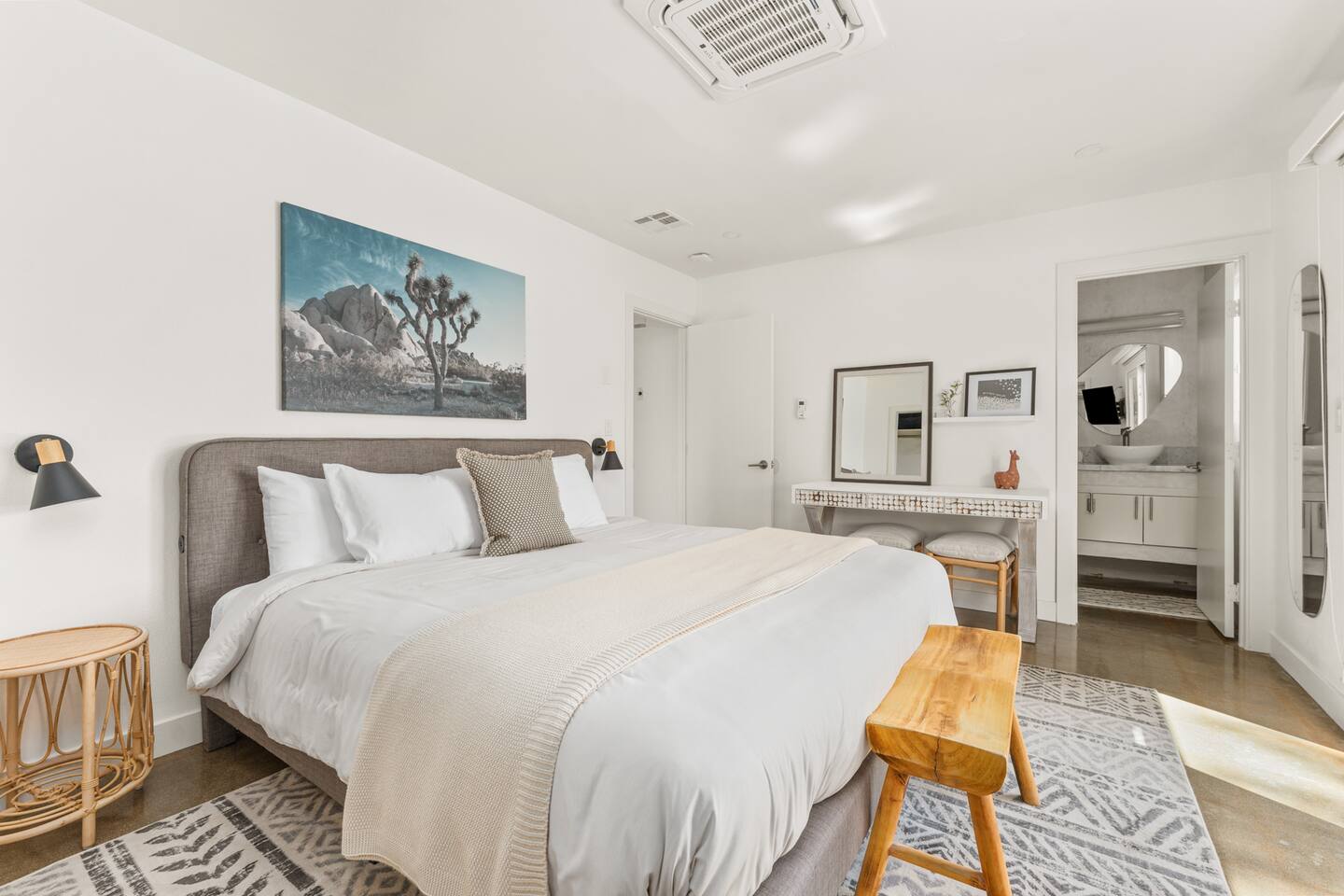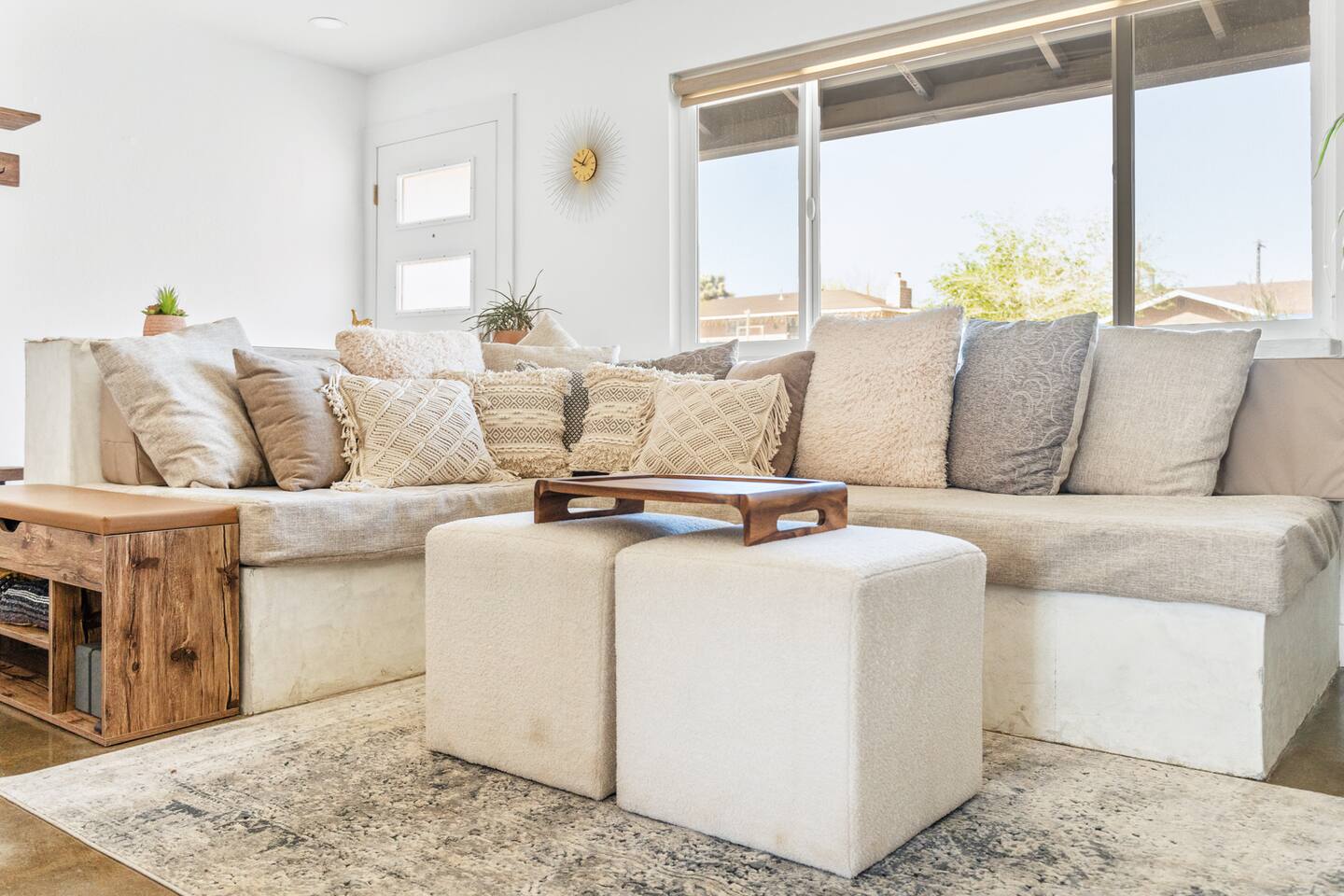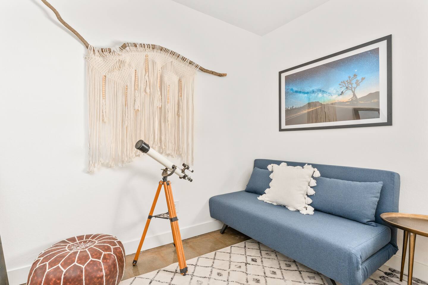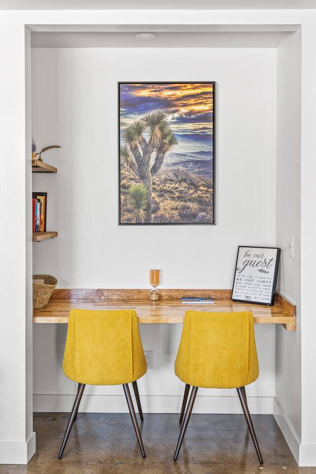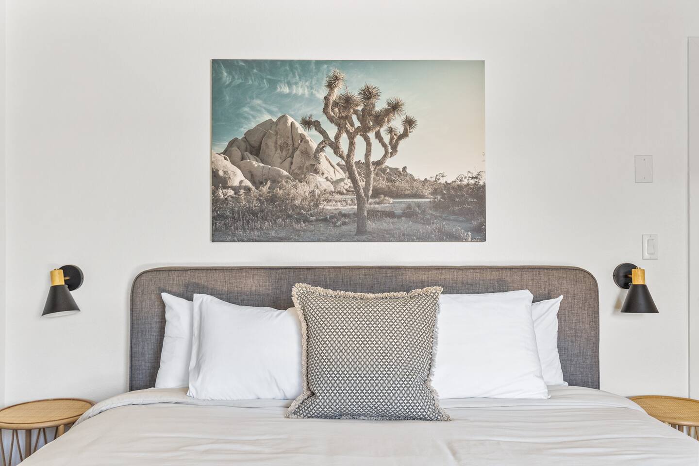 Immerse yourself in the stunning beauty of Joshua Tree National Park. This incredible area features dramatic, rugged landscapes, spectacular rock formations, and the iconic Joshua trees. Explore ancient boulder piles and rock outcroppings, take in gorgeous sunrises and sunsets, and enjoy the peaceful solitude of the desert. Joshua Tree National Park is unforgettable for all ages and a must-see for any nature enthusiast. This lovely three-bedroom house in Yucca Valley is the perfect home away from home for families or groups of up to 8. The house is ideally situated close to Joshua Tree National Park, making it easy to explore the stunning desert landscape. Inside, there’s plenty of space for everyone to relax and enjoy. Three bedrooms provide a cozy retreat for a good night’s sleep, while the in-ground pool, hot tub, game room, movie area, and fire pit ensure there’s something for everyone to do. There’s also a BBQ and cornhole for outdoor fun. You’ll be perfectly positioned to explore: 3 minutes ➔ The Copper Room 5 minutes ➔ Frontier Café & Old Town Yucca Valley 10 minutes ➔ Pappy & Harriet’s 11 minutes ➔ Joshua Tree National Park Visitor Center 12 minutes ➔ La Copine 20 minutes ➔ Integratron 40 minutes ➔ Palm Springs Bedrooms Back bedroom (primary suite): King bed, en-suite bathroom, makeup table, large closet, and TV Middle bedroom: Queen bed, closet, dresser, and TV Front bedroom: Full bed, sofa that unfolds into a full bed, closet, dresser, and TV All TVs in the house are smart TVs where you can log in to your streaming accounts. Living & Kitchen The open-plan living spaces are generously furnished with the essentials you need to make your stay comfortable. The kitchen includes: Microwave Dishwasher Coffee station Counter dining area Breakfast nook The kitchen and living areas are seamlessly combined into one room, giving guests flexibility. Cook a delicious meal while still interacting with family and friends. Game Room & Amenities There is a game room furnished with: Pool table Shuffleboard Picnic-style table Movie-watching area There is also a washer and dryer for your convenience. Highlights include: ⁕ 3 bedrooms with comfy beds plus a pull-out full sofa and twin daybeds in the living room (sleeps up to 8 guests) ⁕ Beautiful in-ground pool with patio for lounging ⁕ Spa for relaxing and stargazing at night ⁕ Large propane fire pit for gathering ⁕ Outdoor dining and seating area ⁕ Game room with pool table, shuffleboard, darts, and movie-watching area ⁕ Pet friendly – up to 2 pups welcome! ⁕ Fully equipped kitchen ⁕ Open floor plan kitchen, dining, and living area ⁕ Reliable and fast WiFi ⁕ Coffee and coffee maker ready for your morning coffee Experiences Rooted in the community, we know the desert well and enjoy sharing it with our guests. Here are some unforgettable ways to experience the area: Immerse yourself in a sound bath at the Integratron or with a local practitioner. Book an in-home massage with a trusted desert therapist. Set out on a private guided hike. Enjoy a custom meal prepared in-home by a private chef. Move and reset with a personal yoga or Pilates session. Discover the night sky on a private stargazing tour under some of California’s darkest skies. Explore canyons and creeks on a private horseback ride. Try cold plunges and wellness sessions with local experts. We’d love to connect you with our favorite local guides and practitioners.