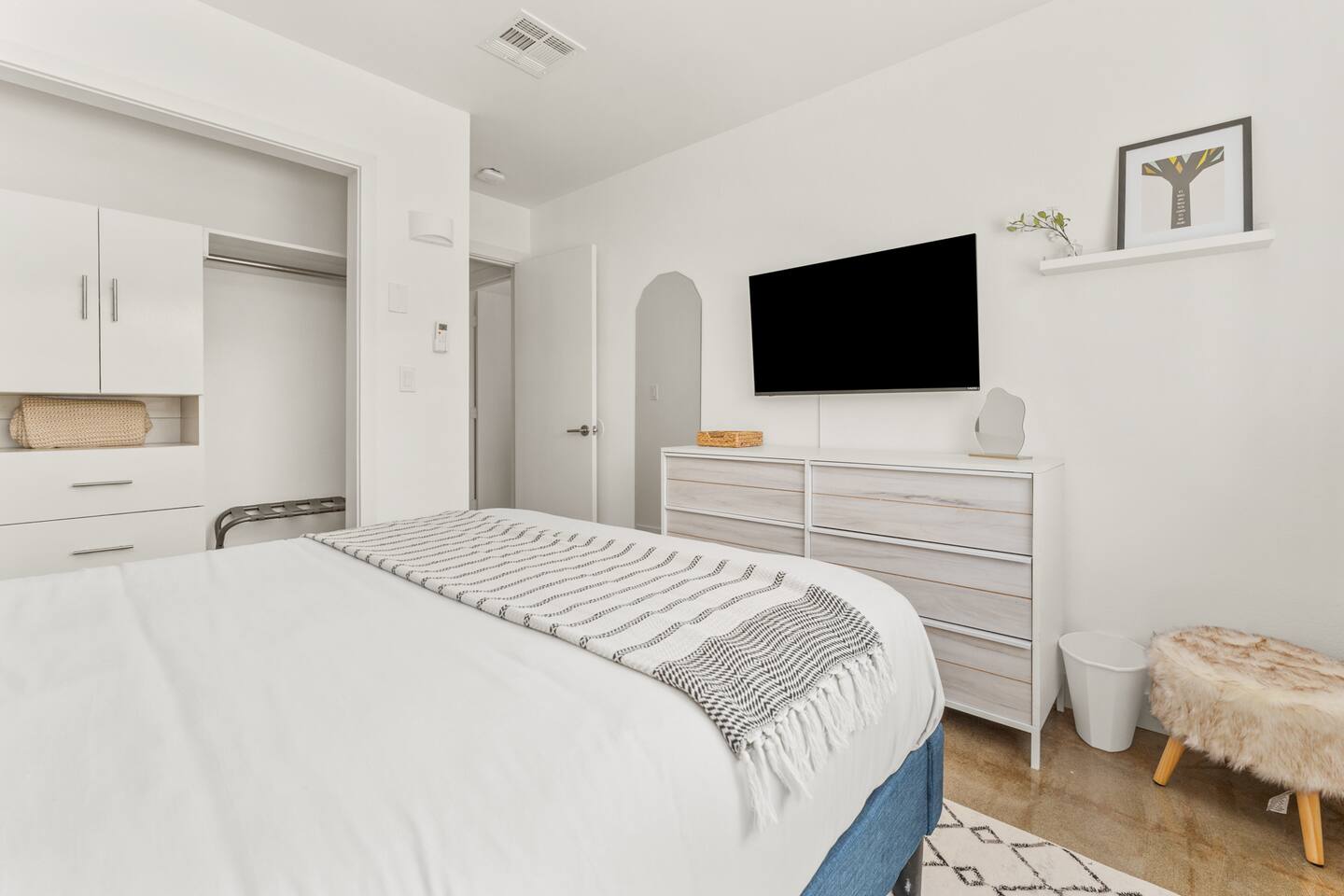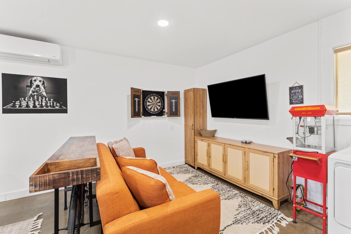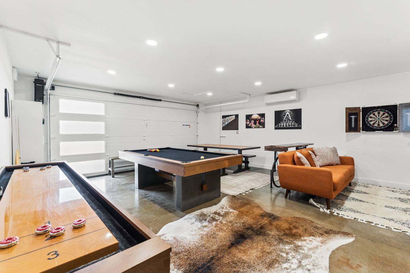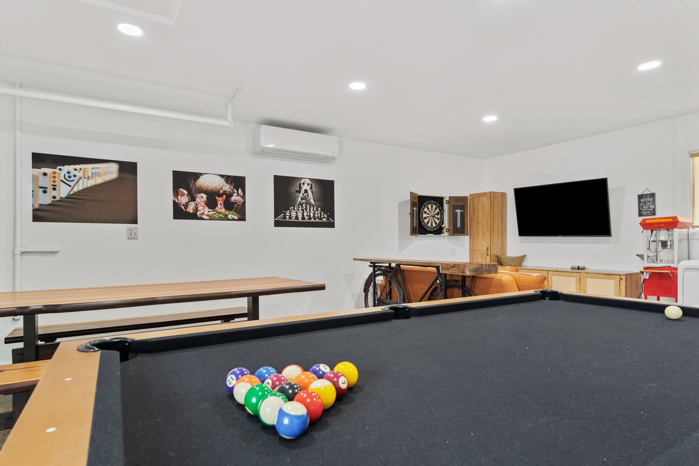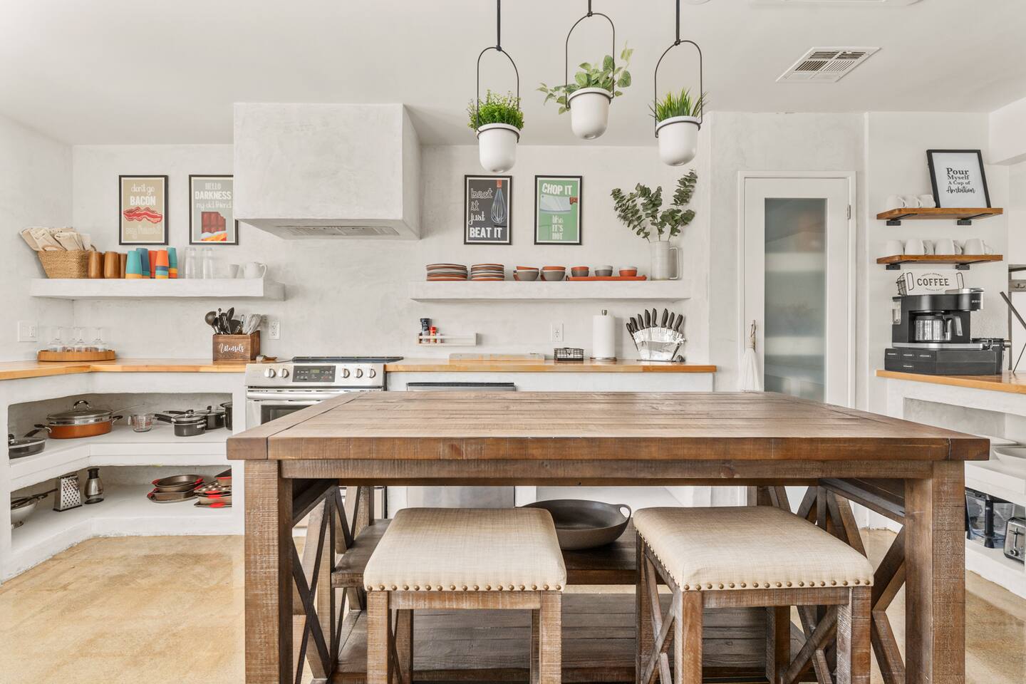Immerse yourself in the stunning beauty of Joshua Tree National Park. This incredible area features dramatic, rugged landscapes, spectacular rock formations, and the iconic Joshua trees. Explore ancient boulder piles and rock outcroppings, take in gorgeous sunrises and sunsets, and enjoy the peaceful solitude of the desert. Joshua Tree National Park is unforgettable for all ages and a must-see for any nature enthusiast. This lovely three-bedroom house in Yucca Valley is the perfect home away from home for families or groups of up to 8. The house is ideally situated close to Joshua Tree National Park, making it easy to explore the stunning desert landscape. Inside, there’s plenty of space for everyone to relax and enjoy. Three bedrooms provide a cozy retreat for a good night’s sleep, while the in-ground pool, hot tub, game room, movie area, and fire pit ensure there’s something for everyone to do. There’s also a BBQ and cornhole for outdoor fun. You’ll be perfectly positioned to explore: 3 minutes ➔ The Copper Room 5 minutes ➔ Frontier Café & Old Town Yucca Valley 10 minutes ➔ Pappy & Harriet’s 11 minutes ➔ Joshua Tree National Park Visitor Center 12 minutes ➔ La Copine 20 minutes ➔ Integratron 40 minutes ➔ Palm Springs Bedrooms Back bedroom (primary suite): King bed, en-suite bathroom, makeup table, large closet, and TV Middle bedroom: Queen bed, closet, dresser, and TV Front bedroom: Full bed, sofa that unfolds into a full bed, closet, dresser, and TV All TVs in the house are smart TVs where you can log in to your streaming accounts. Living & Kitchen The open-plan living spaces are generously furnished with the essentials you need to make your stay comfortable. The kitchen includes: Microwave Dishwasher Coffee station Counter dining area Breakfast nook The kitchen and living areas are seamlessly combined into one room, giving guests flexibility. Cook a delicious meal while still interacting with family and friends. Game Room & Amenities There is a game room furnished with: Pool table Shuffleboard Picnic-style table Movie-watching area There is also a washer and dryer for your convenience. Highlights include: ⁕ 3 bedrooms with comfy beds plus a pull-out full sofa and twin daybeds in the living room (sleeps up to 8 guests) ⁕ Beautiful in-ground pool with patio for lounging ⁕ Spa for relaxing and stargazing at night ⁕ Large propane fire pit for gathering ⁕ Outdoor dining and seating area ⁕ Game room with pool table, shuffleboard, darts, and movie-watching area ⁕ Pet friendly – up to 2 pups welcome! ⁕ Fully equipped kitchen ⁕ Open floor plan kitchen, dining, and living area ⁕ Reliable and fast WiFi ⁕ Coffee and coffee maker ready for your morning coffee Experiences Rooted in the community, we know the desert well and enjoy sharing it with our guests. Here are some unforgettable ways to experience the area: Immerse yourself in a sound bath at the Integratron or with a local practitioner. Book an in-home massage with a trusted desert therapist. Set out on a private guided hike. Enjoy a custom meal prepared in-home by a private chef. Move and reset with a personal yoga or Pilates session. Discover the night sky on a private stargazing tour under some of California’s darkest skies. Explore canyons and creeks on a private horseback ride. Try cold plunges and wellness sessions with local experts. We’d love to connect you with our favorite local guides and practitioners.