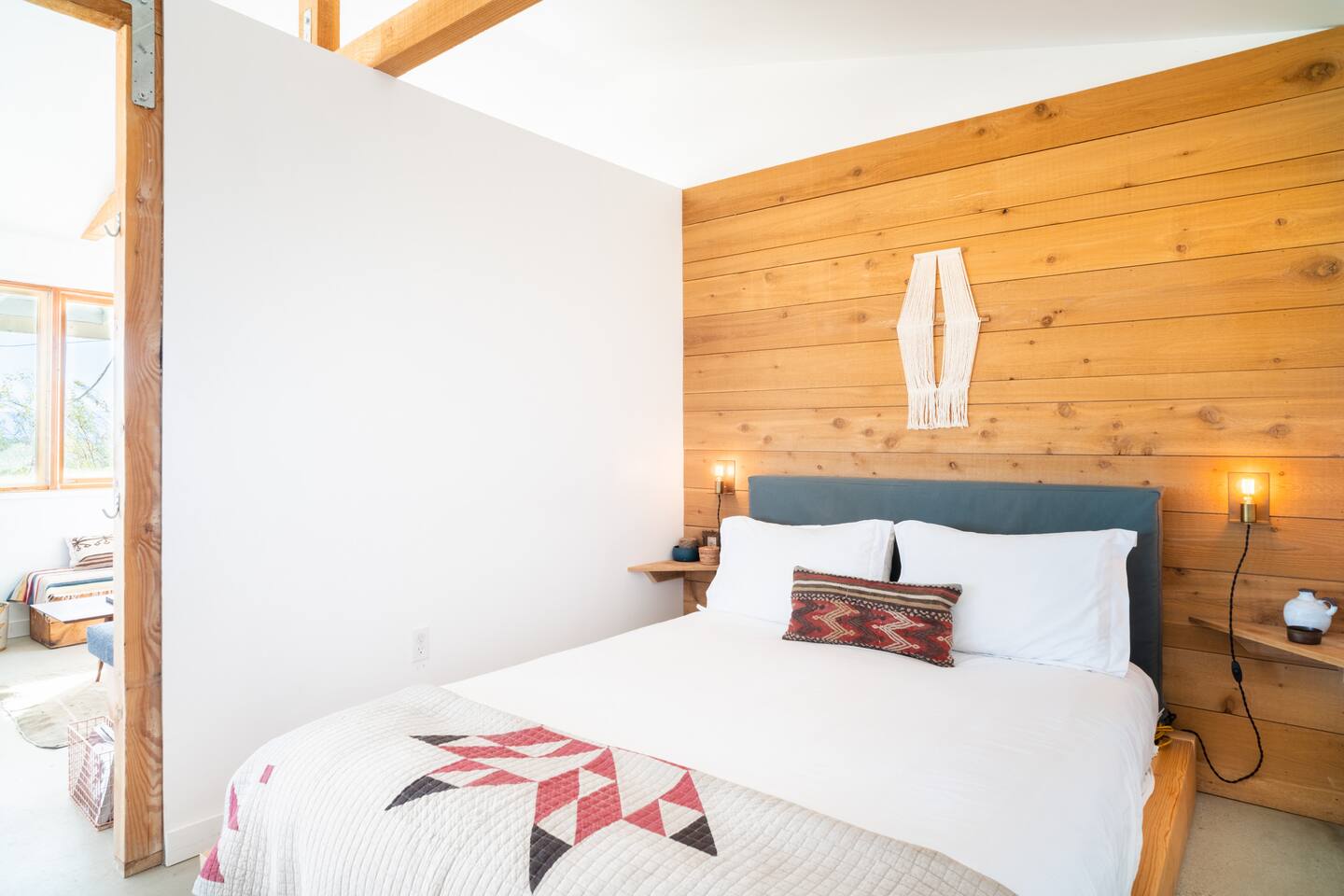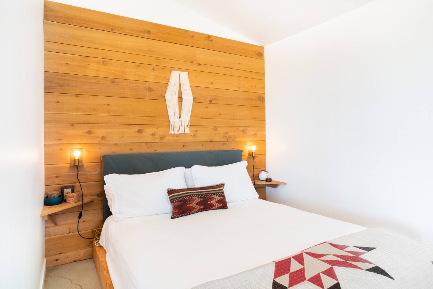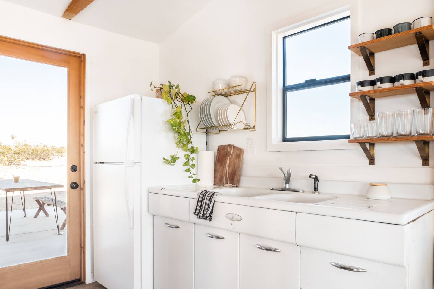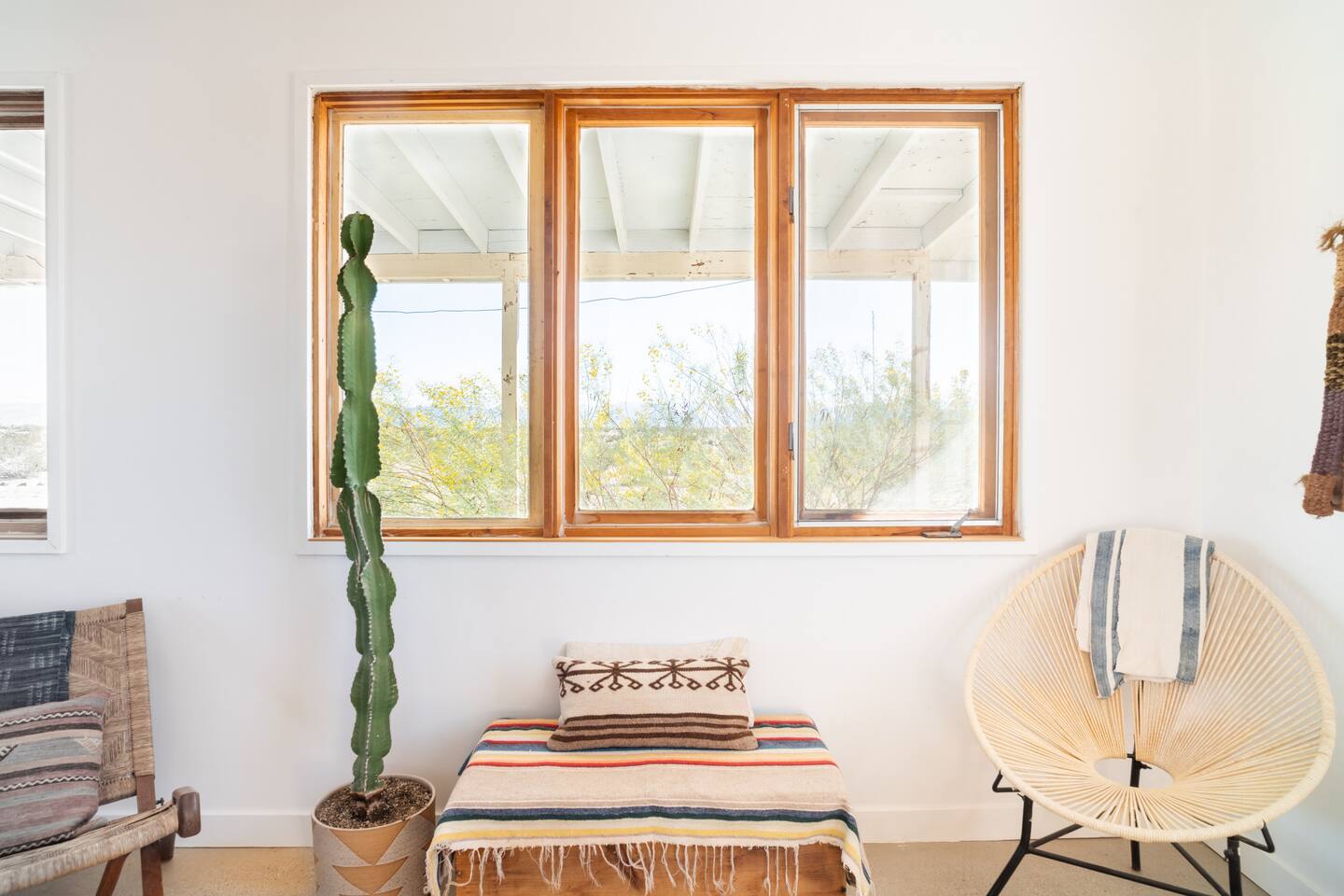 This North Joshua Tree cabin is the perfect secluded hideaway. Sitting on over 22 acres, our little homesteader cabin was built in the 1950's and went through a big renovation. A cabin feel with modern amenities including a brand new bathroom with tile rain shower, queen size bed, kitchen, ac/heat, wifi and outdoor shower. Pour over coffee from Joshua Tree Coffee Co and tea provided. Our very private North Joshua Tree location allows for unprecedented panoramic views of Joshua Tree. You don't have to worry about close neighbors with this uniquely perfect location. (Please note the national park is in South Joshua Tree so definitely drivable, but not super close) Vast unobstructed sunrises and sunsets can be enjoyed from the front porch or back dining patio (please note: we don't have blinds on the windows). If you are looking for a place to get away, but with the necessary creature comforts you will love this space. We are 15 minutes from Joshua Tree town where there are great little shops and restaurants. Honored to have Campover Cabin featured on Airbnb's official IG! We intentionally try to keep the homestead cabin experience a bit more authentic. There is no tv, microwave or blender. We are smack dab in the middle of nature. We do have an eco exterminator come, but there are bugs and wildlife that live in the desert landscape. It is their home too and part of what makes nature nature. :) Joshua Tree and Yucca Valley have great little stores and vintage shops, as well as plenty of dining. Pioneer Town is the home of Pappy and Harriet’s, so if you like live music and BBQ fare, this place is for you. National acts roll through here and it's a great place to catch a show. La Copine is a great restaurant. Also, be sure to check out the other artist shops in town. Having a reliable car is mandatory. Please note, our property is off of a dirt road. -- Recent guest feedback: "This place was my Joshua Tree cabin dreams come true. The space looks just as described and as shown in the photos. There was clearly a lot of attention given to the details to make the place feel welcoming, comfortable, and inspiring. The cabin is in a remote area and it feels super peaceful. The hosts were welcoming and responsive. They provided helpful directions to the cabin given its remote location. This was a magical stay, the perfect home base from which to explore the town and national park. I would stay here again and would recommend it." - Lynneth "Peaceful and relaxing stay. Enjoyed the breathtaking nights with the stars. Had everything you needed. The wifi was a plus and I was able to do some work. It's worth the experience." - Chul -- Locally hosted by Jenn, an East Coast transplant, who loves living in the desert and sharing this area with guests. If you need a recommendation or help during your stay, Jenn will be available and happy to help. Some fun things to do while in the area: - Go to a sound bath at Integratron or with one of our local practitioners. - Get an in-home massage by one of our awesome, local massage therapists. - Go on a private, guided hike - a favorite activity for guests! - Get a private Yoga or Pilates session. - Go on a star gazing tour with Sky Watcher Tours - another favorite! - Go on a private horseback ride and explore canyons, creeks, and desert wildlife. Ready to book? Grab your dates now (before someone else does)! Not ready to decide? Please save our listing ♡ so you can come back when you're ready.