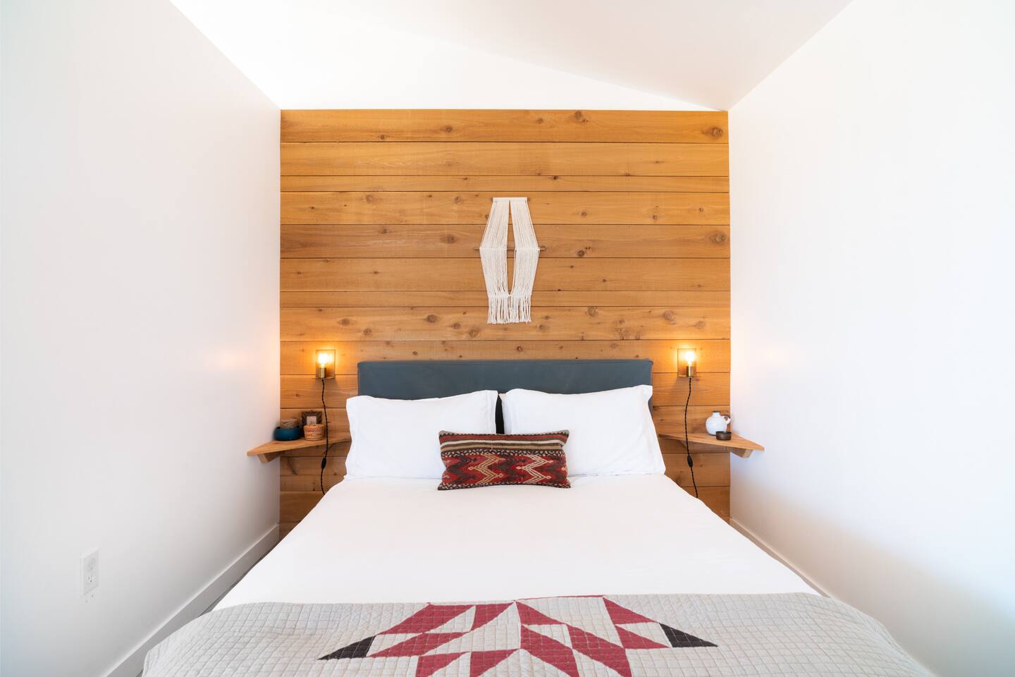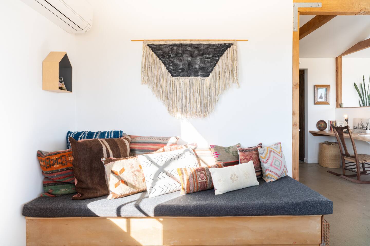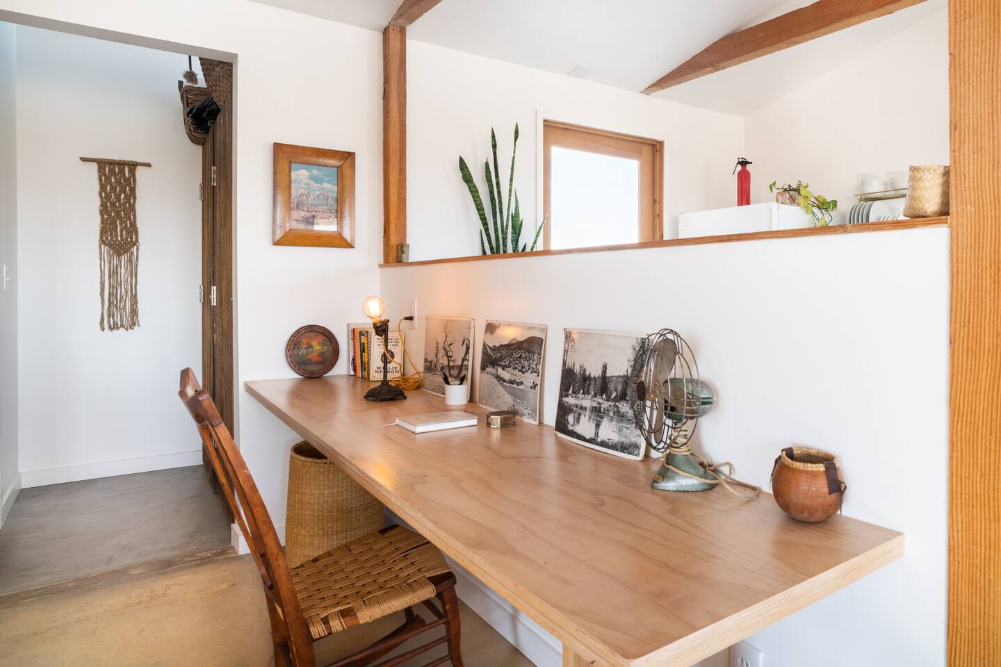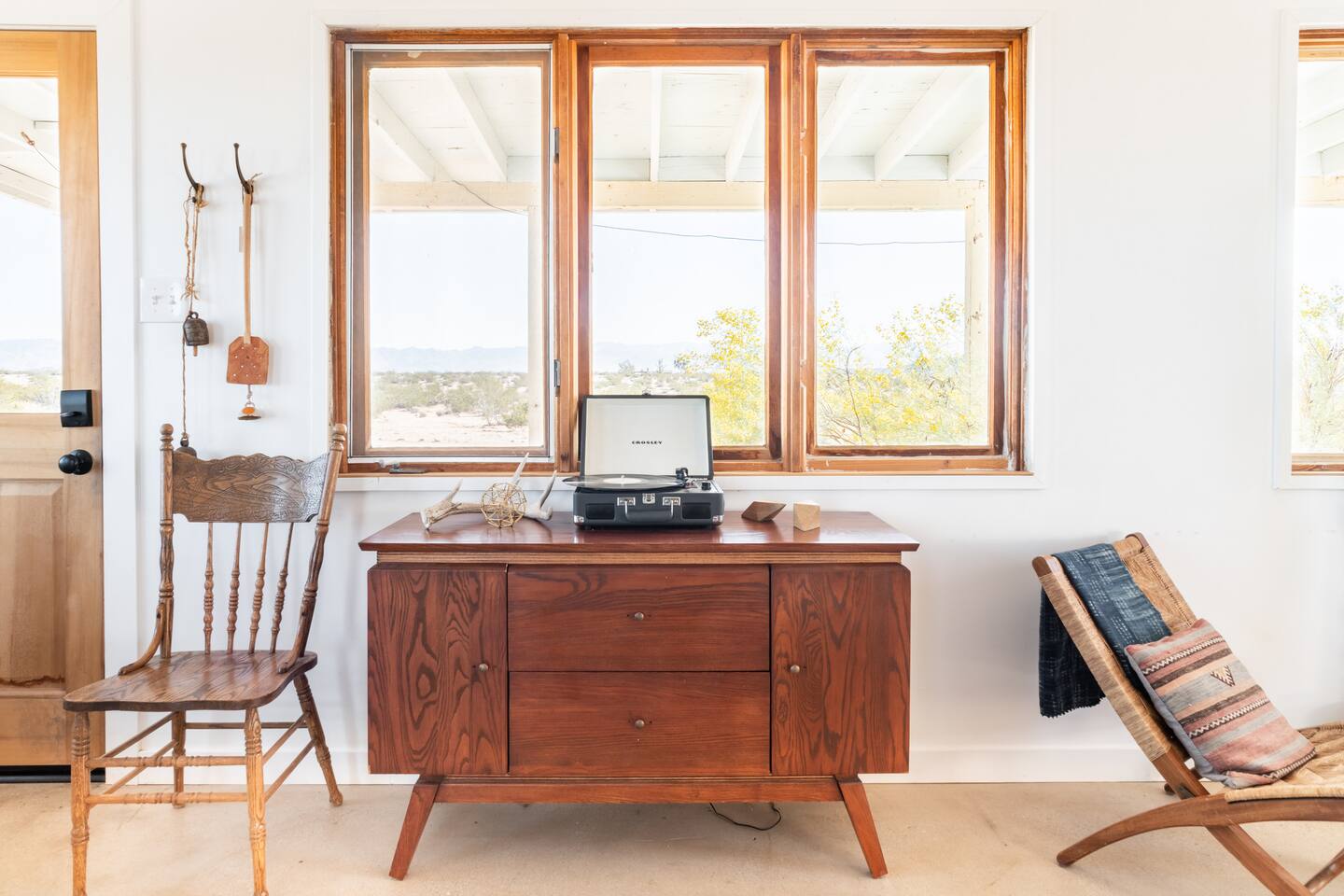This North Joshua Tree cabin is the perfect secluded hideaway. Sitting on over 22 acres, our little homesteader cabin was built in the 1950's and went through a big renovation. A cabin feel with modern amenities including a brand new bathroom with tile rain shower, queen size bed, kitchen, ac/heat, wifi and outdoor shower. Pour over coffee from Joshua Tree Coffee Co and tea provided. Our very private North Joshua Tree location allows for unprecedented panoramic views of Joshua Tree. You don't have to worry about close neighbors with this uniquely perfect location. (Please note the national park is in South Joshua Tree so definitely drivable, but not super close) Vast unobstructed sunrises and sunsets can be enjoyed from the front porch or back dining patio (please note: we don't have blinds on the windows). If you are looking for a place to get away, but with the necessary creature comforts you will love this space. We are 15 minutes from Joshua Tree town where there are great little shops and restaurants. Honored to have Campover Cabin featured on Airbnb's official IG! We intentionally try to keep the homestead cabin experience a bit more authentic. There is no tv, microwave or blender. We are smack dab in the middle of nature. We do have an eco exterminator come, but there are bugs and wildlife that live in the desert landscape. It is their home too and part of what makes nature nature. :) Joshua Tree and Yucca Valley have great little stores and vintage shops, as well as plenty of dining. Pioneer Town is the home of Pappy and Harriet’s, so if you like live music and BBQ fare, this place is for you. National acts roll through here and it's a great place to catch a show. La Copine is a great restaurant. Also, be sure to check out the other artist shops in town. Having a reliable car is mandatory. Please note, our property is off of a dirt road. -- Recent guest feedback: "This place was my Joshua Tree cabin dreams come true. The space looks just as described and as shown in the photos. There was clearly a lot of attention given to the details to make the place feel welcoming, comfortable, and inspiring. The cabin is in a remote area and it feels super peaceful. The hosts were welcoming and responsive. They provided helpful directions to the cabin given its remote location. This was a magical stay, the perfect home base from which to explore the town and national park. I would stay here again and would recommend it." - Lynneth "Peaceful and relaxing stay. Enjoyed the breathtaking nights with the stars. Had everything you needed. The wifi was a plus and I was able to do some work. It's worth the experience." - Chul -- Locally hosted by Jenn, an East Coast transplant, who loves living in the desert and sharing this area with guests. If you need a recommendation or help during your stay, Jenn will be available and happy to help. Some fun things to do while in the area: - Go to a sound bath at Integratron or with one of our local practitioners. - Get an in-home massage by one of our awesome, local massage therapists. - Go on a private, guided hike - a favorite activity for guests! - Get a private Yoga or Pilates session. - Go on a star gazing tour with Sky Watcher Tours - another favorite! - Go on a private horseback ride and explore canyons, creeks, and desert wildlife. Ready to book? Grab your dates now (before someone else does)! Not ready to decide? Please save our listing ♡ so you can come back when you're ready.