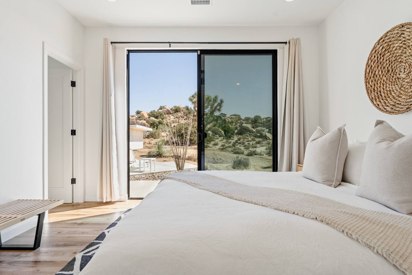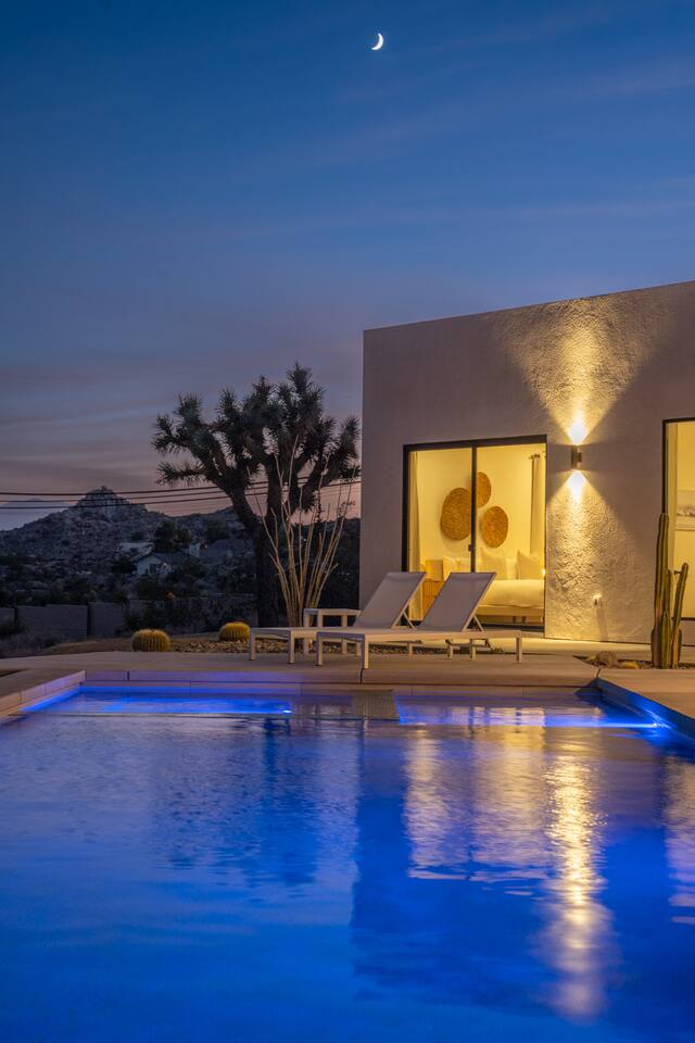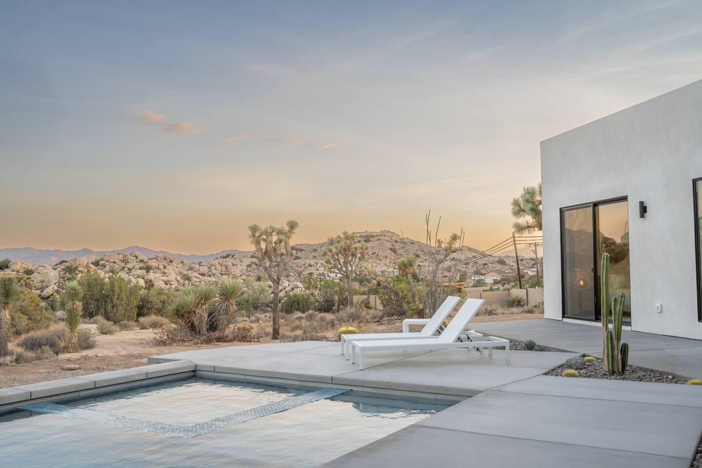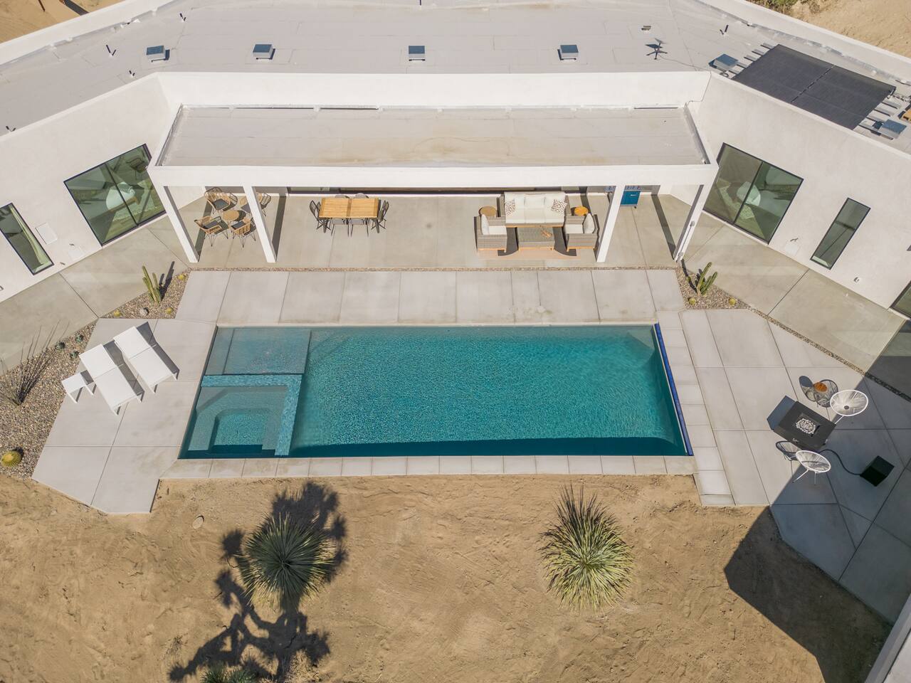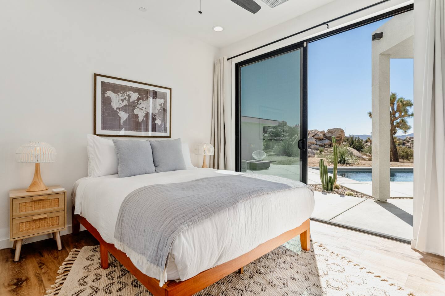 Welcome to Mars Landing, a striking modern desert home featured in Dwell, set among boulders and big open views just minutes from Joshua Tree National Park. Highlights 4 bedrooms, 4 bathrooms (all ensuite) Private pool + spa tucked into dramatic boulders Fire pit for nights under the stars 30-foot sliding glass wall that opens fully to the desert Game zone with ping pong + foosball Starlink high-speed internet for streaming and remote work Close to JTNP, La Copine, and Pappy & Harriet’s