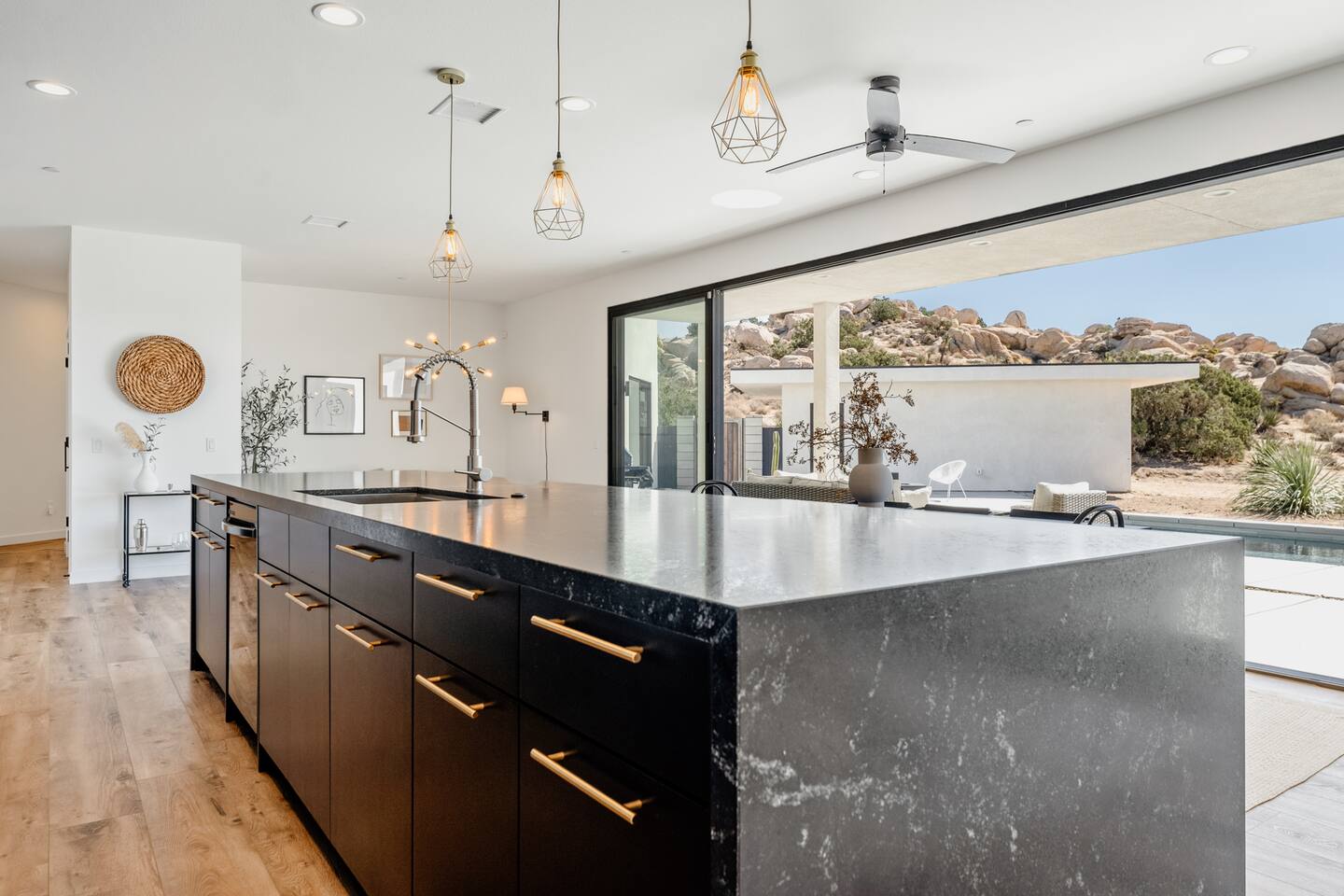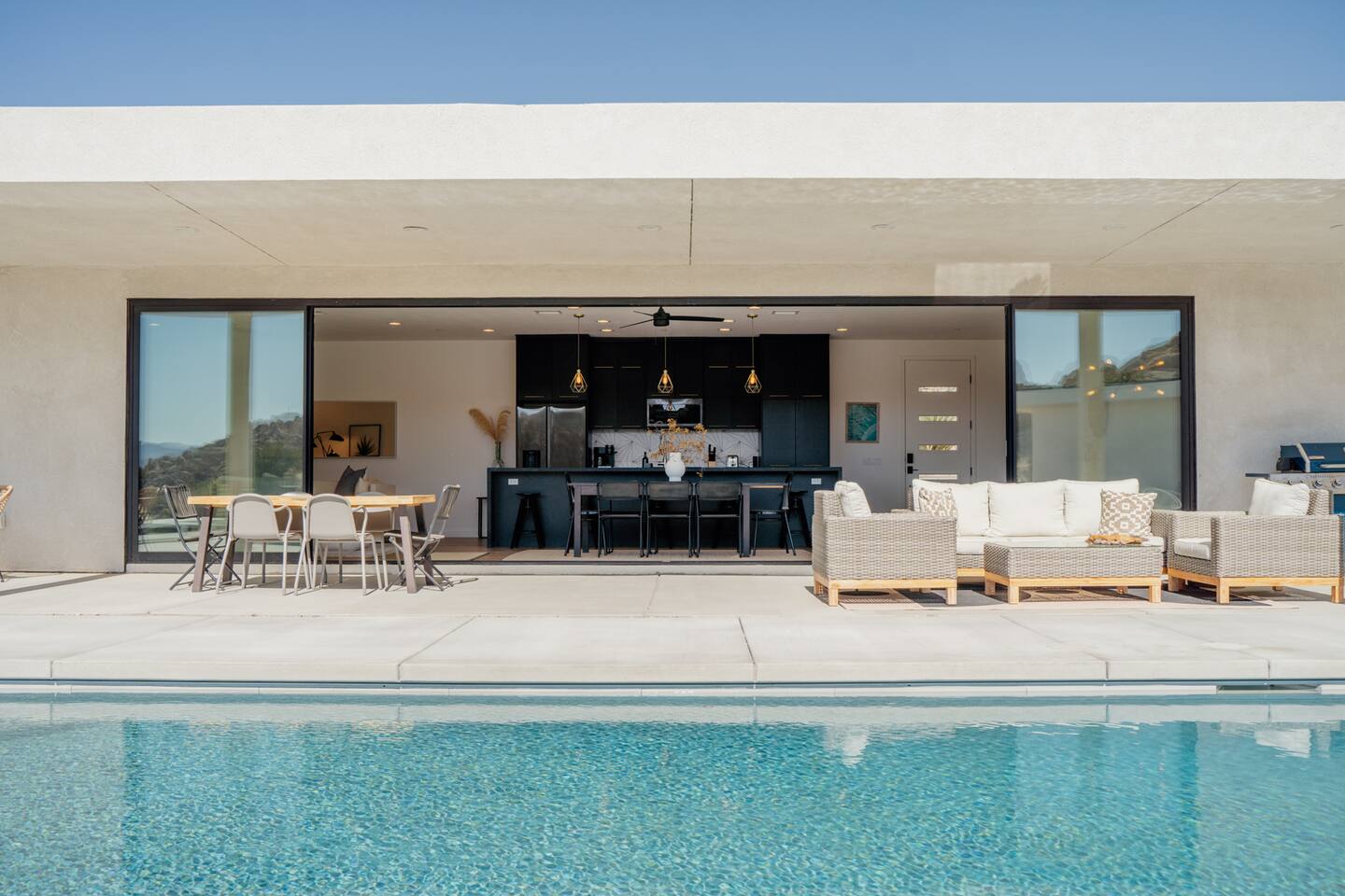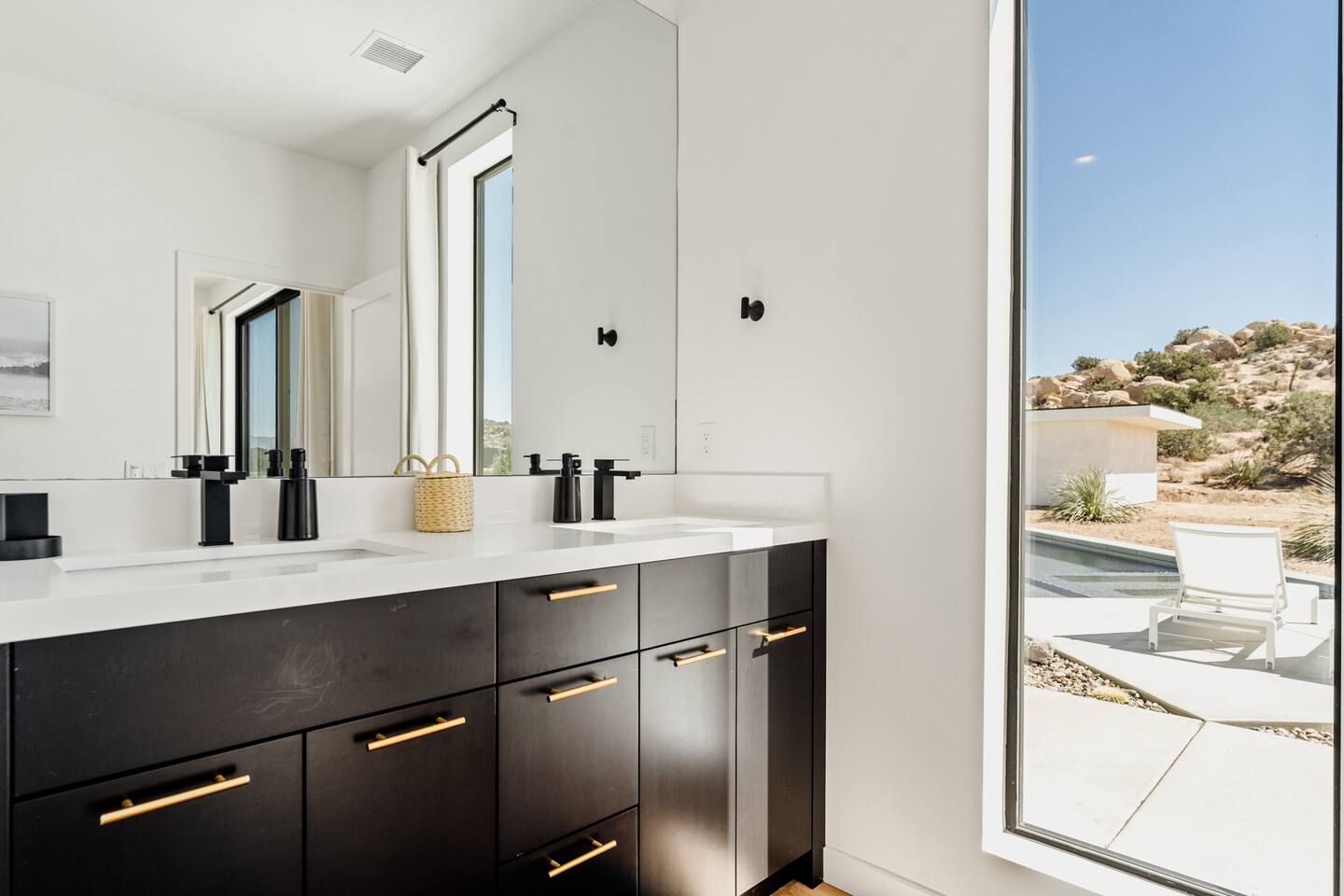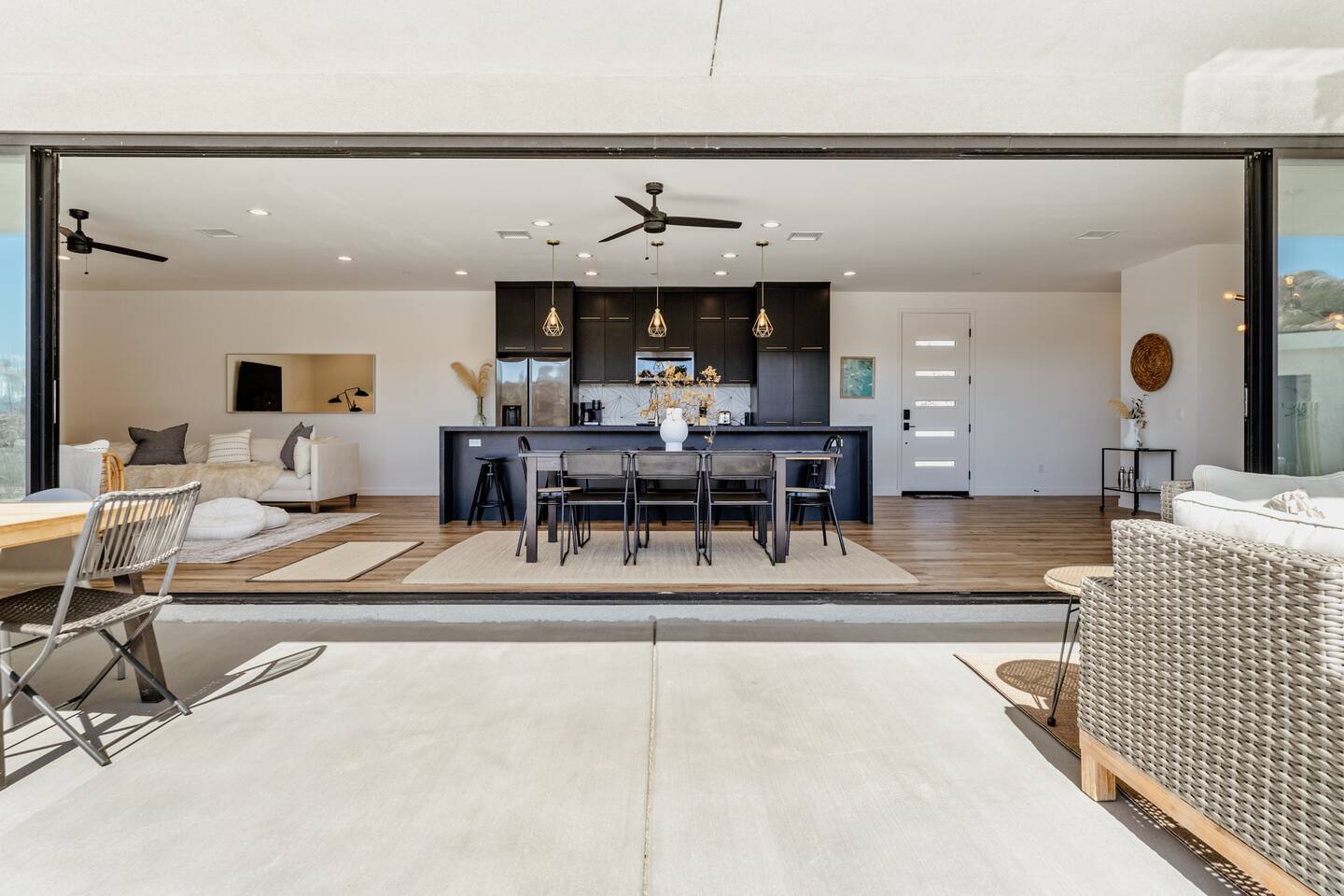 Welcome to Mars Landing, a striking modern desert home featured in Dwell, set among boulders and big open views just minutes from Joshua Tree National Park. Highlights 4 bedrooms, 4 bathrooms (all ensuite) Private pool + spa tucked into dramatic boulders Fire pit for nights under the stars 30-foot sliding glass wall that opens fully to the desert Game zone with ping pong + foosball Starlink high-speed internet for streaming and remote work Close to JTNP, La Copine, and Pappy & Harriet’s