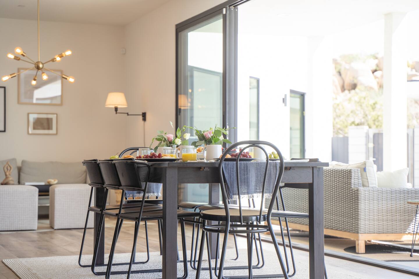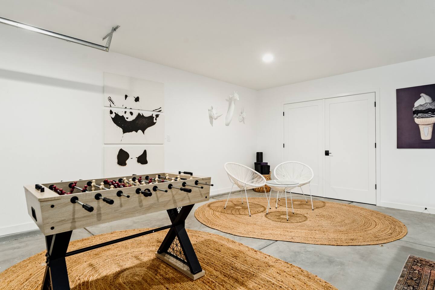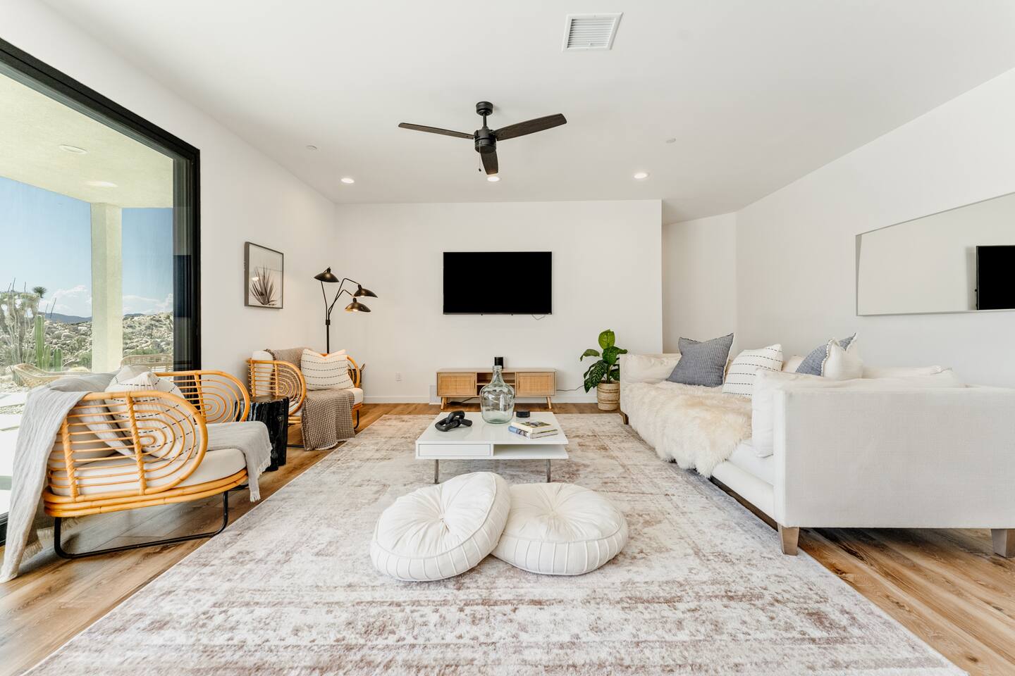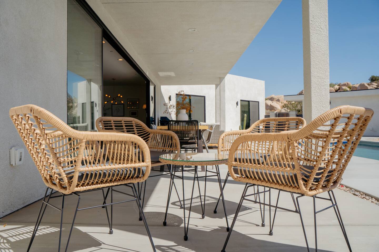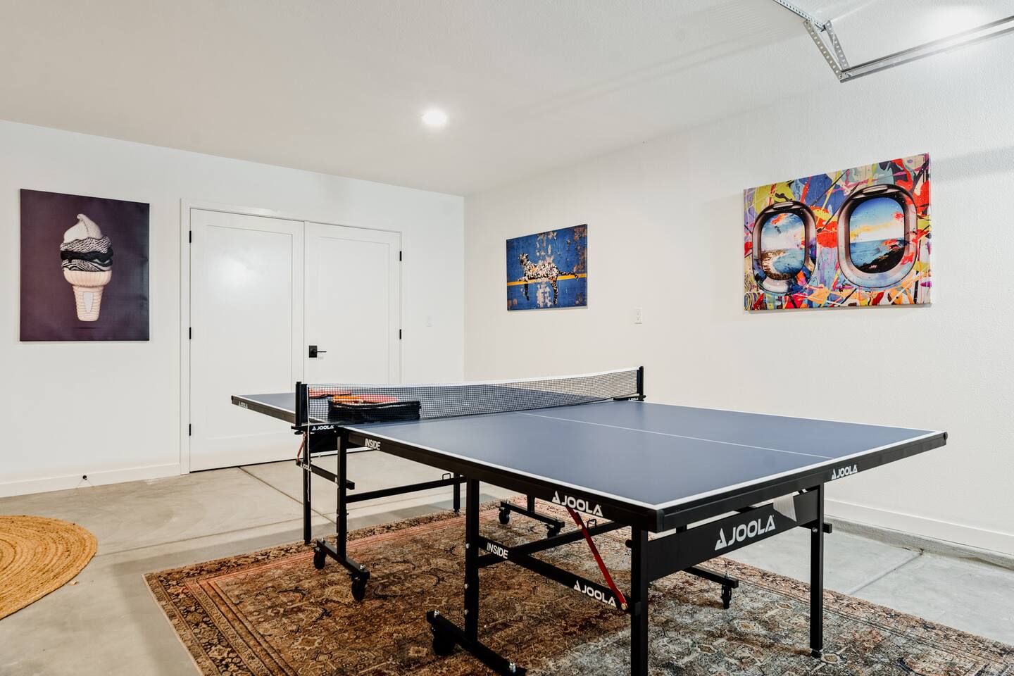 Mars Landing is made for easy group trips where everyone gets their own space. With four ensuite bedrooms, you’ll have comfort and privacy built in, plus a layout that still feels connected. The main living area is open, bright, and designed for hanging out, cooking, and slow mornings. A 30-foot glass door slides completely open, so the whole house flows right out to the pool deck and desert beyond. Views are everywhere. Outdoor Living This is the good stuff: swim in the sun, soak in the spa at sunset, then move to the fire pit when the temperature drops. The boulders, Joshua trees, and mountain backdrop make it feel cinematic, but still calm and private. Entertainment + Amenities A separate recreation area keeps the group entertained with ping pong and foosball, and Starlink makes it easy to work, stream, or stay connected without drama. Great Location 5 mins ➔ Grocery stores 8 mins ➔ La Copine 9 mins ➔ Joshua Tree Saloon 10 mins ➔ Pappy & Harriet’s 15 mins ➔ Joshua Tree National Park Quick Note on Road Noise Please note the home is located just off a busier road, so you may hear some road noise when outside. It can be more noticeable on weekdays and just before and after holidays. For most guests it hasn’t been an issue. The upside is the convenience. You’re close to shops, restaurants, and everything you’ll want to explore, which makes getting around easy. Local Experiences Enhance your stay with thoughtfully curated local experiences: Sound baths at the Integratron or with a local practitioner Massage, bodywork, or energy sessions at the house Private guided desert hikes and nature walks Yoga, Pilates, or breathwork under open skies Private chef dinners and in-home dining Stargazing and astronomy tours Horseback rides through desert trails Cold plunges and wellness sessions with local experts We’d love to connect you with our favorite local guides and practitioners.