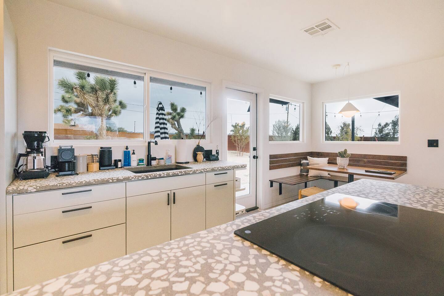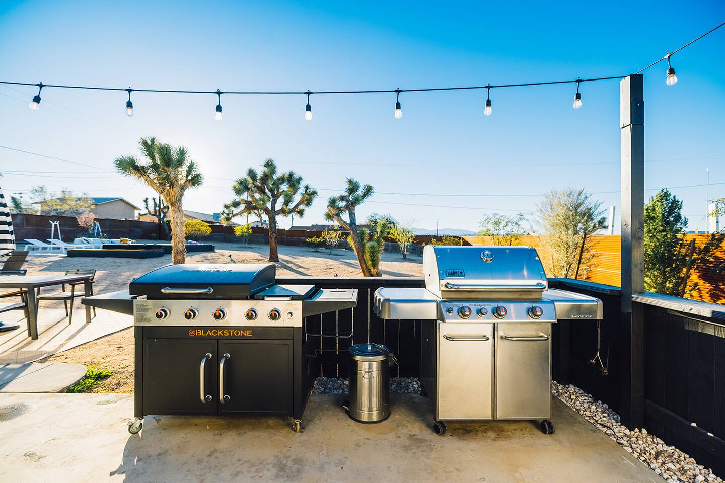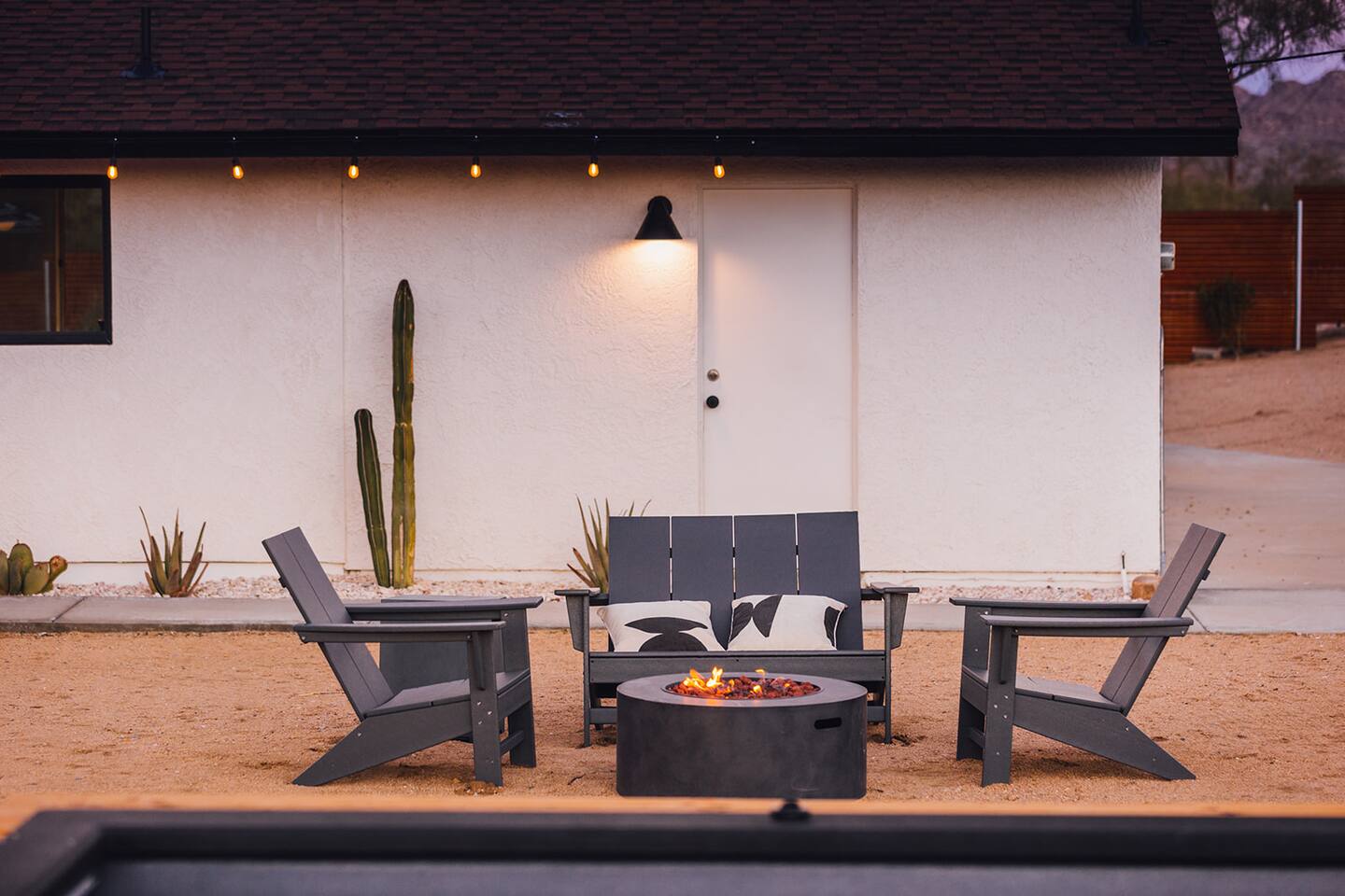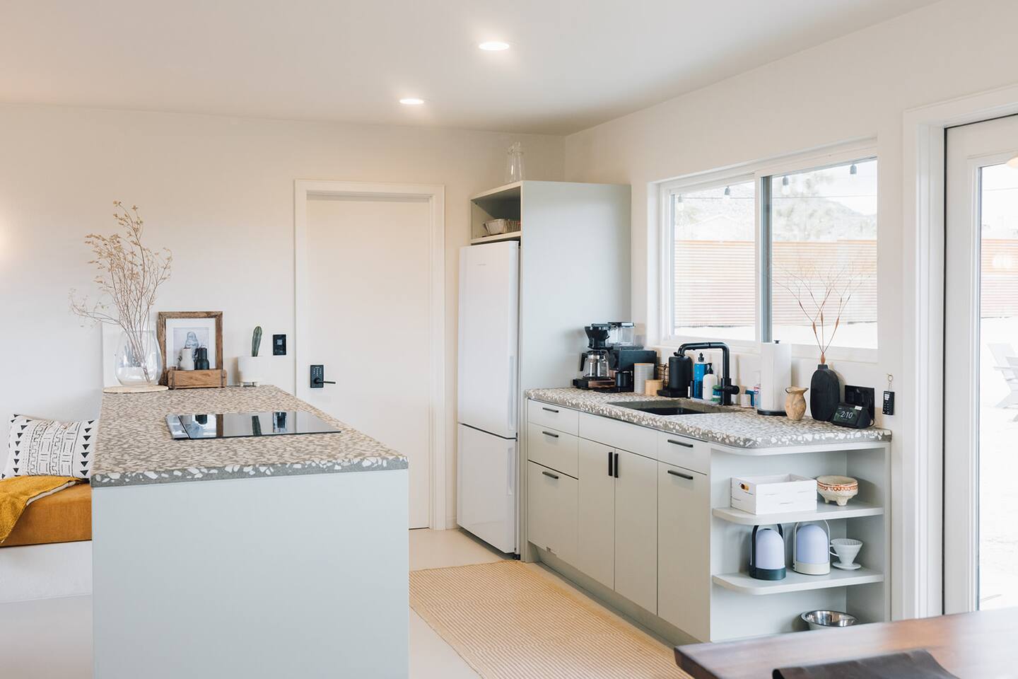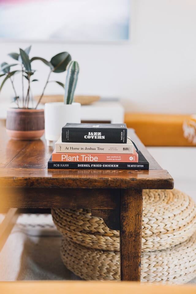 A desert retreat designed for rest, connection, and simple luxury. Casa Demesne pairs clean architecture with natural textures and calm desert tones. Relax & Unwind: - Custom built-in sofa - Smart TV for streaming - Board games and puzzles for downtime - Cook & Enjoy - Fully equipped kitchen with terrazzo countertops - Induction stove, ANOVA Sous Vide, KitchenAid processor, Ninja blender - Freshly roasted Joshua Tree Coffee with multiple brewing options Restful Bedrooms: Two inviting bedrooms, each with queen beds and memory-foam mattresses Refresh & Recharge: Full bathroom with shower/tub combo and complimentary toiletries Outdoor Living: - Stylish container pool + spa ($85/day for heat) - Spacious, private fenced yard - Outdoor kitchen with Weber grill + Blackstone griddle - Propane fire pit for stargazing - Outdoor shower for rinsing under the stars Local Experiences: Enhance your stay with thoughtfully curated local experiences. Sound baths at the Integratron or with a local practitioner. Massage, bodywork, or energy sessions at the house. Guided desert hikes and nature walks. Yoga, Pilates, or breathwork under open skies. Private chef dinners and in-home dining. Stargazing and astronomy tours. Horseback rides through desert trails. Cold plunges and wellness sessions with local experts. We’d love to connect you with our favorite local guides and practitioners.