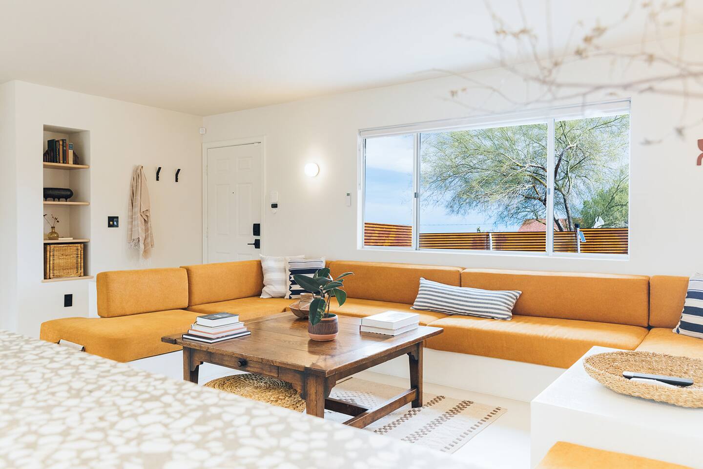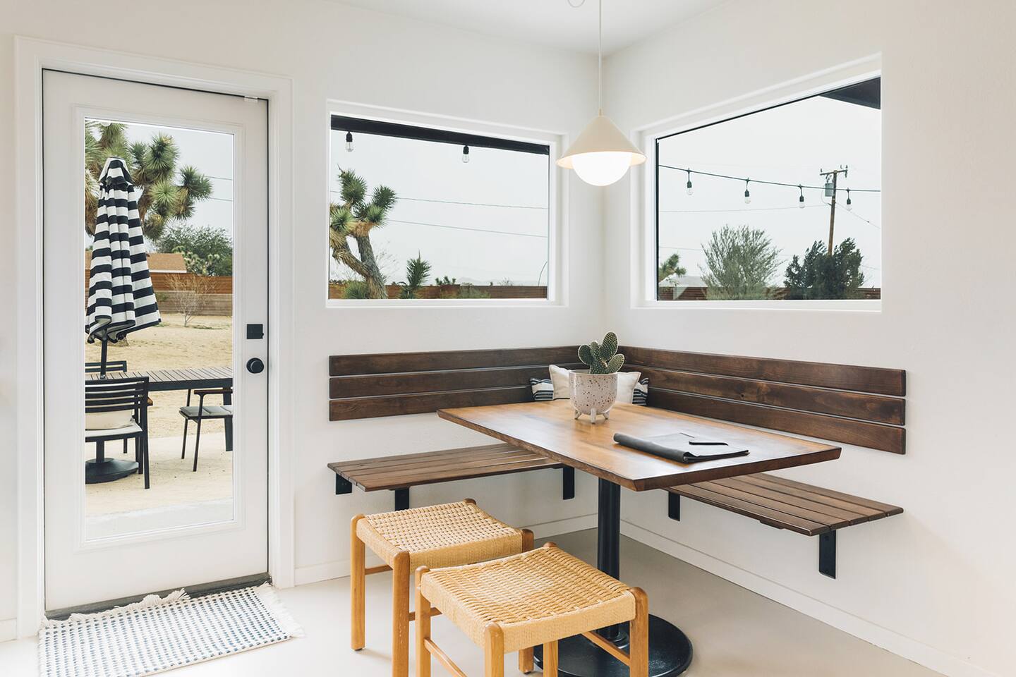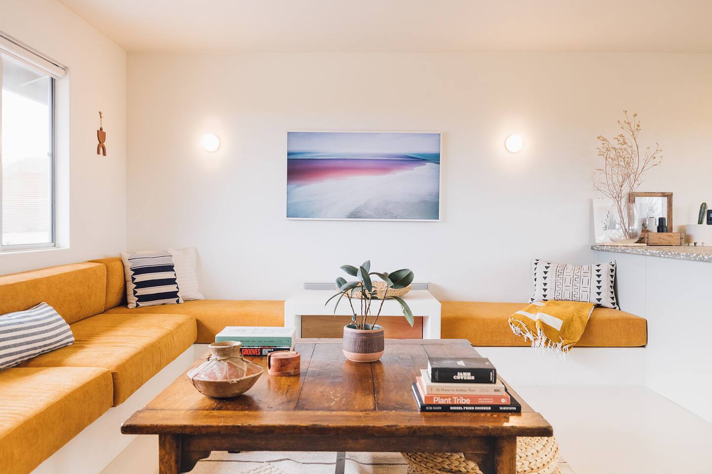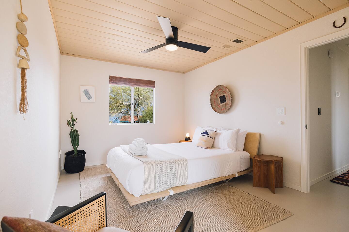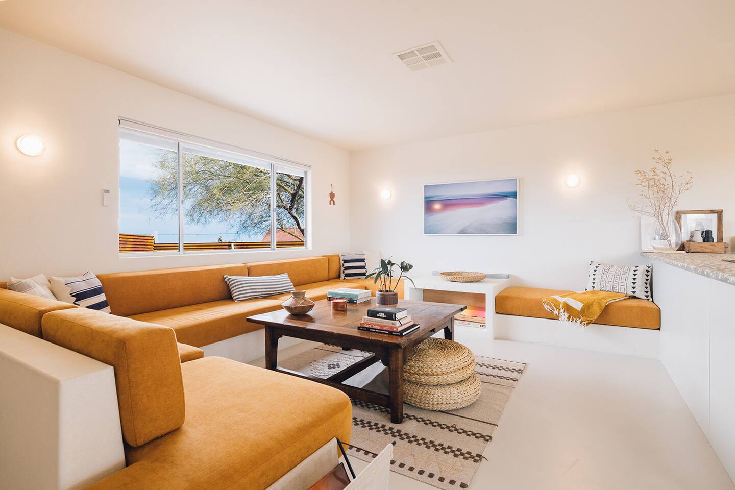 A desert retreat designed for rest, connection, and simple luxury. Casa Demesne pairs clean architecture with natural textures and calm desert tones. Relax & Unwind: - Custom built-in sofa - Smart TV for streaming - Board games and puzzles for downtime - Cook & Enjoy - Fully equipped kitchen with terrazzo countertops - Induction stove, ANOVA Sous Vide, KitchenAid processor, Ninja blender - Freshly roasted Joshua Tree Coffee with multiple brewing options Restful Bedrooms: Two inviting bedrooms, each with queen beds and memory-foam mattresses Refresh & Recharge: Full bathroom with shower/tub combo and complimentary toiletries Outdoor Living: - Stylish container pool + spa ($85/day for heat) - Spacious, private fenced yard - Outdoor kitchen with Weber grill + Blackstone griddle - Propane fire pit for stargazing - Outdoor shower for rinsing under the stars Local Experiences: Enhance your stay with thoughtfully curated local experiences. Sound baths at the Integratron or with a local practitioner. Massage, bodywork, or energy sessions at the house. Guided desert hikes and nature walks. Yoga, Pilates, or breathwork under open skies. Private chef dinners and in-home dining. Stargazing and astronomy tours. Horseback rides through desert trails. Cold plunges and wellness sessions with local experts. We’d love to connect you with our favorite local guides and practitioners.