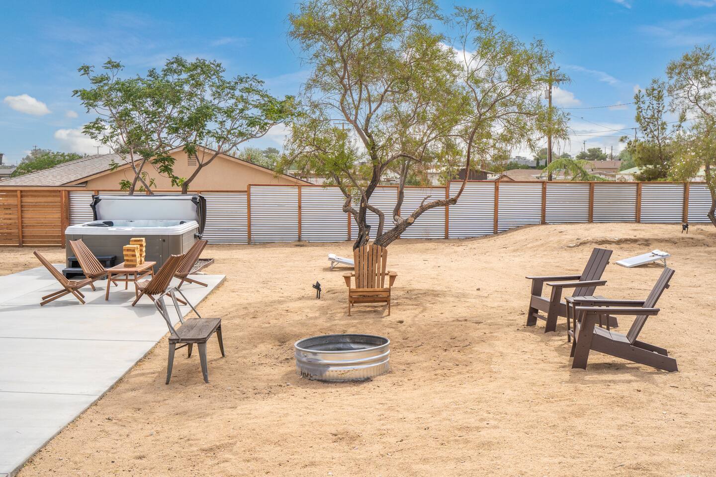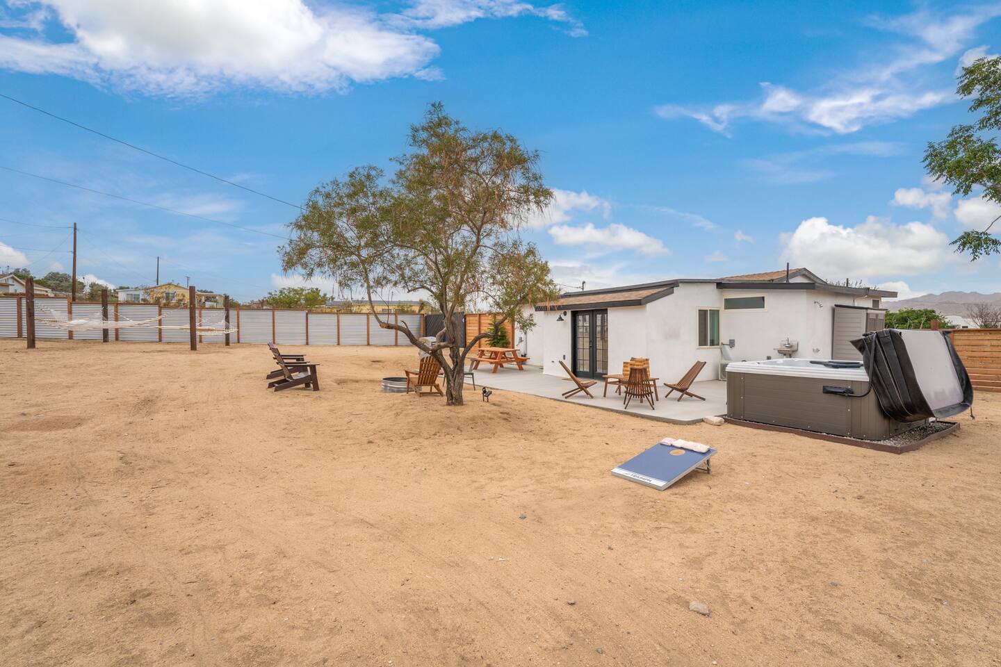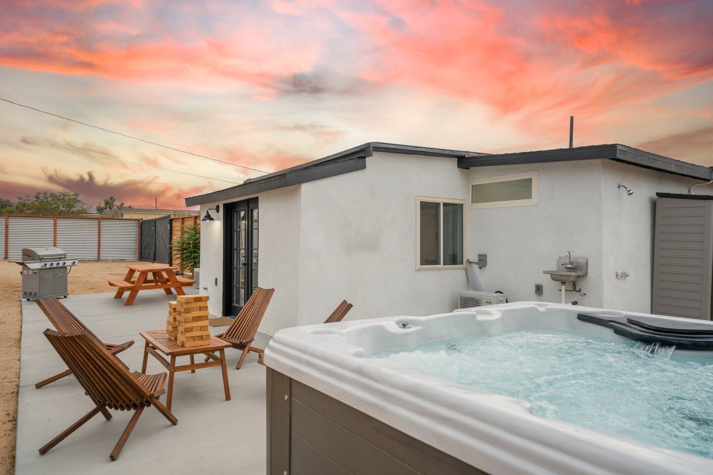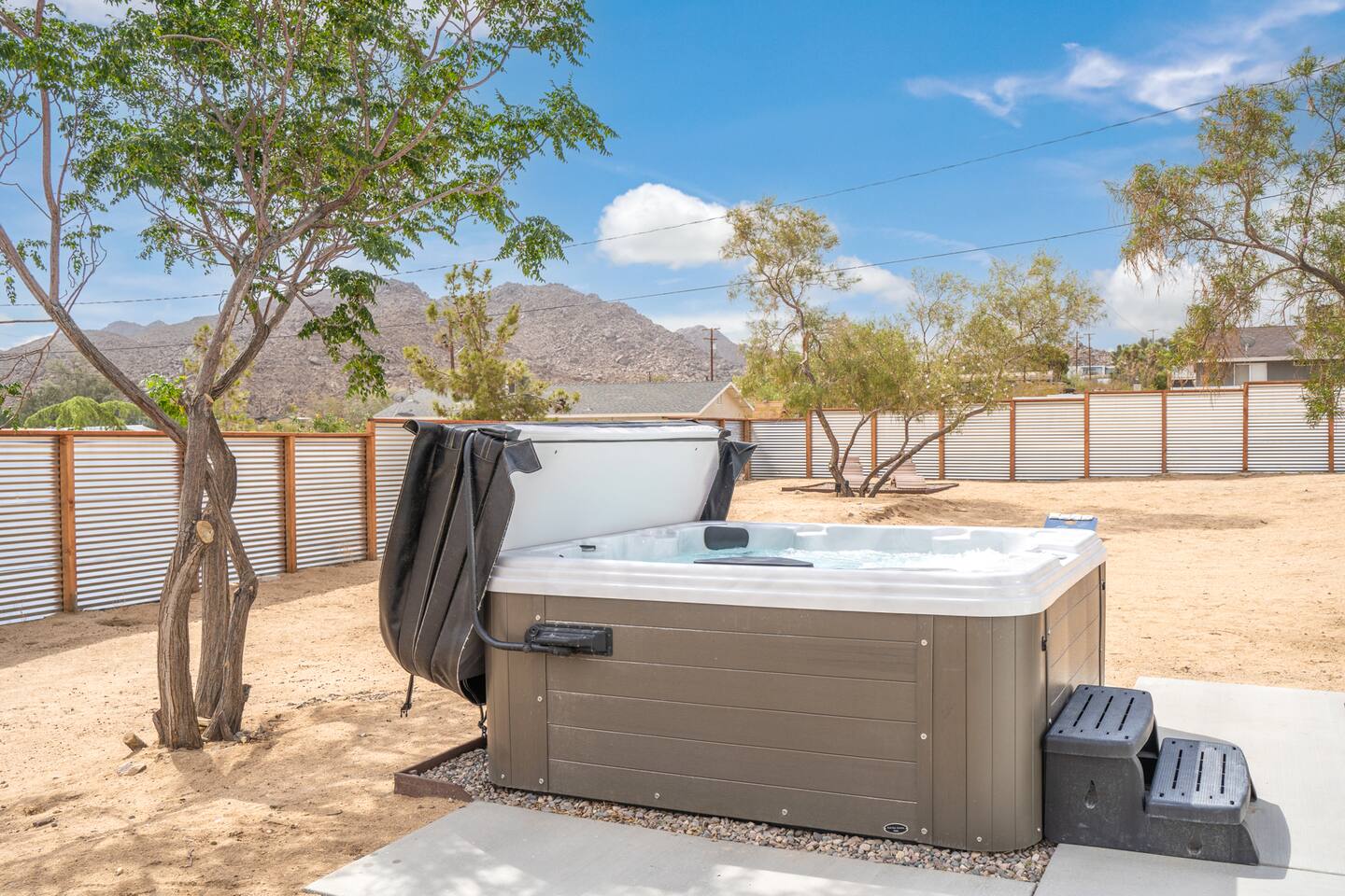 Modern and comfortable home right in the heart of Joshua Tree. Just minutes to the shops of downtown Joshua Tree. 2 bedrooms and 1 bathroom. Full kitchen. Open floor plan. Includes: Hot tub Fire pit Hammocks for 4 BBQ Smart TV Games Great kitchen Recent guest feedback: "Clean modern and great location. This place has everything you need to reset. Backyard is lovely and spent a lot of time outside. Walking distance to restaurants and shops. Go check out hey there projects!" - Jenny "House was beautiful and in a quiet and relaxing part of the town. It was also a straight shot to the national park." - Joseph -- Locally hosted by Jenn, an East Coast transplant, who loves living in the desert and sharing this area with guests. If you need a recommendation or help during your stay, Jenn will be available and happy to help. Some fun things to do while in the area: - Go to a sound bath at Integratron or with one of our local practitioners. - Get an in-home massage by one of our awesome, local massage therapists. - Go on a private, guided hike - a favorite activity for guests! - Have a meal prepared by a local private chef. - Get a private Yoga or Pilates session. - Go on a star gazing tour with Sky Watcher Tours - another favorite! - Go on a private horseback ride and explore canyons, creeks, and desert wildlife. Ready to book? Grab your dates now (before someone else does)! Not ready to decide? Please save our listing ♡ so you can come back when you're ready.