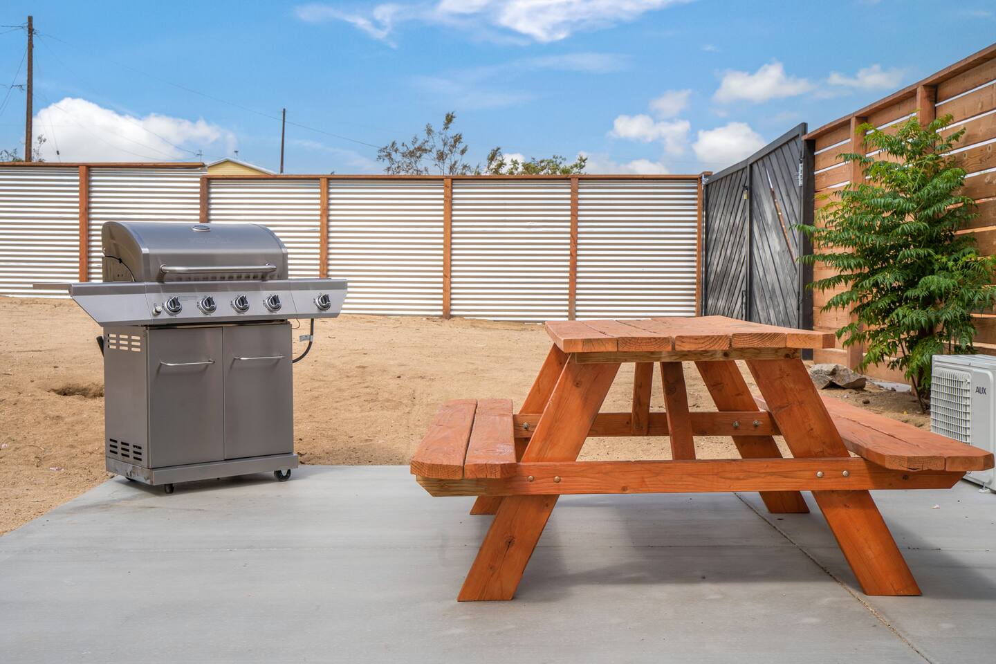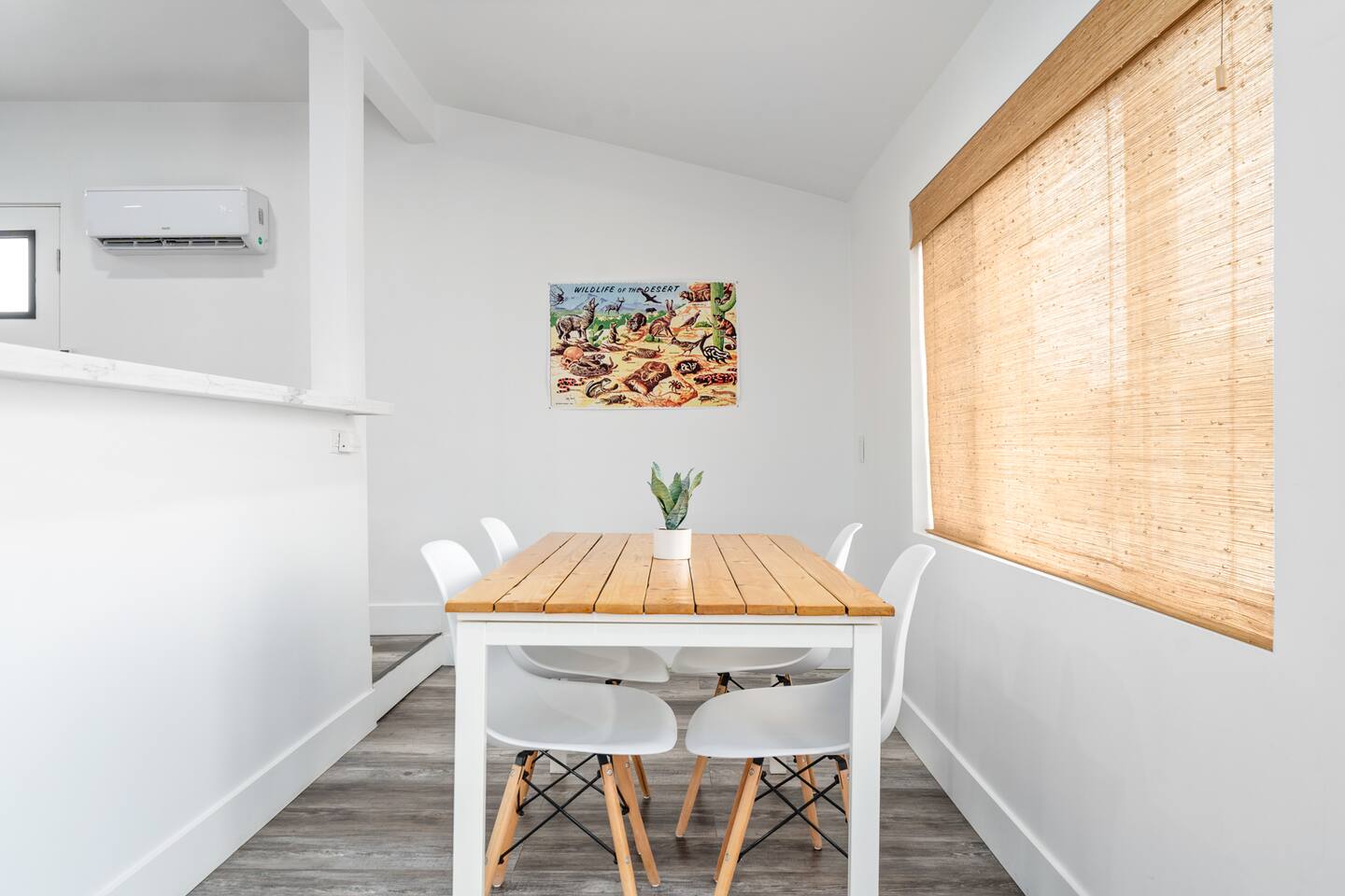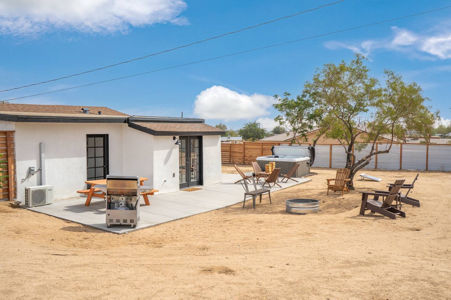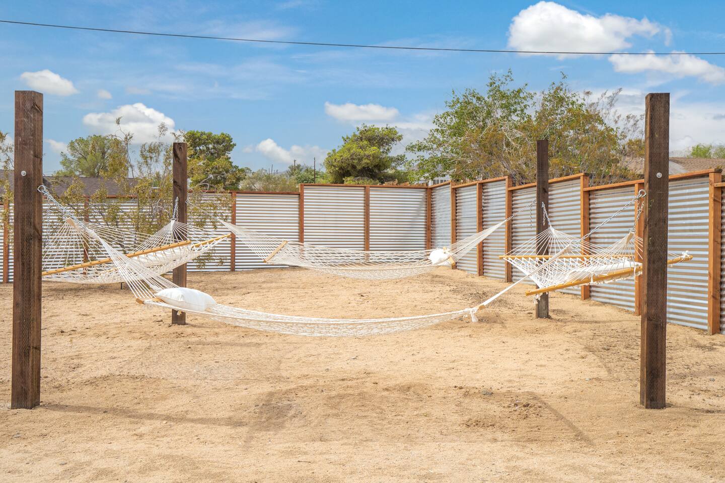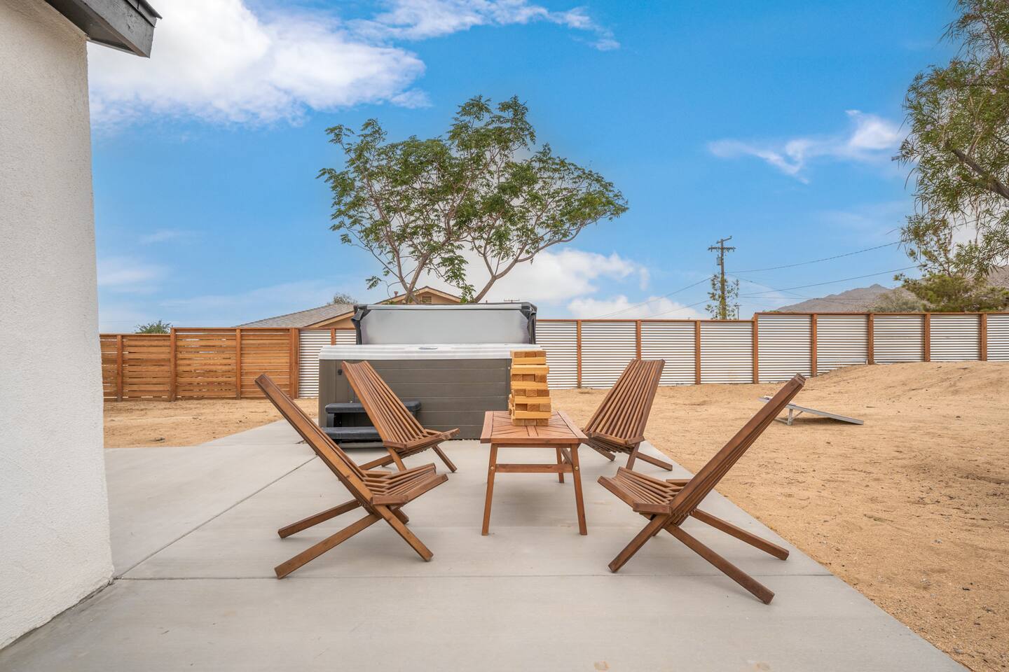 Modern and comfortable home right in the heart of Joshua Tree. Just minutes to the shops of downtown Joshua Tree. 2 bedrooms and 1 bathroom. Full kitchen. Open floor plan. Includes: Hot tub Fire pit Hammocks for 4 BBQ Smart TV Games Great kitchen Recent guest feedback: "Clean modern and great location. This place has everything you need to reset. Backyard is lovely and spent a lot of time outside. Walking distance to restaurants and shops. Go check out hey there projects!" - Jenny "House was beautiful and in a quiet and relaxing part of the town. It was also a straight shot to the national park." - Joseph -- Locally hosted by Jenn, an East Coast transplant, who loves living in the desert and sharing this area with guests. If you need a recommendation or help during your stay, Jenn will be available and happy to help. Some fun things to do while in the area: - Go to a sound bath at Integratron or with one of our local practitioners. - Get an in-home massage by one of our awesome, local massage therapists. - Go on a private, guided hike - a favorite activity for guests! - Have a meal prepared by a local private chef. - Get a private Yoga or Pilates session. - Go on a star gazing tour with Sky Watcher Tours - another favorite! - Go on a private horseback ride and explore canyons, creeks, and desert wildlife. Ready to book? Grab your dates now (before someone else does)! Not ready to decide? Please save our listing ♡ so you can come back when you're ready.