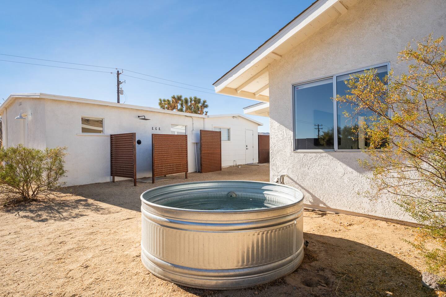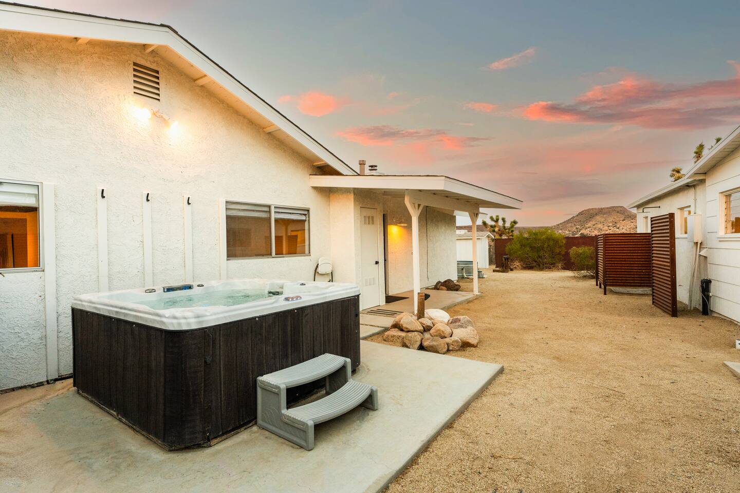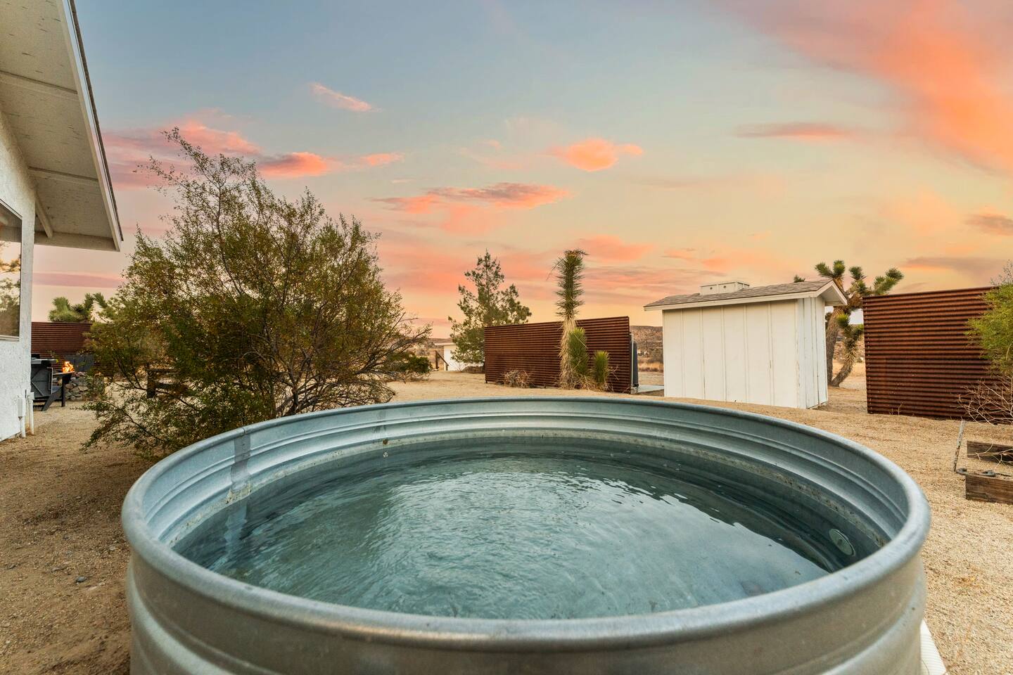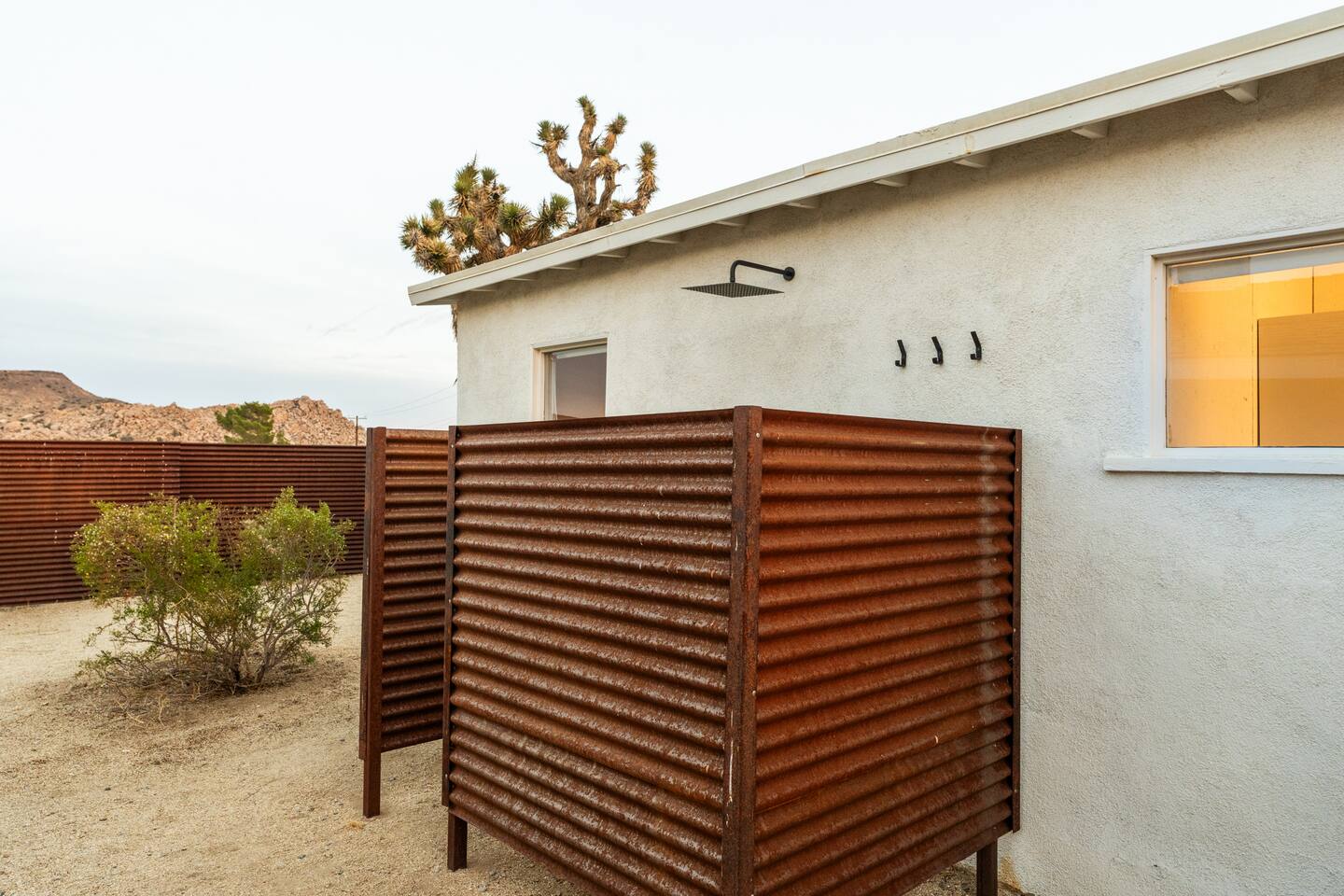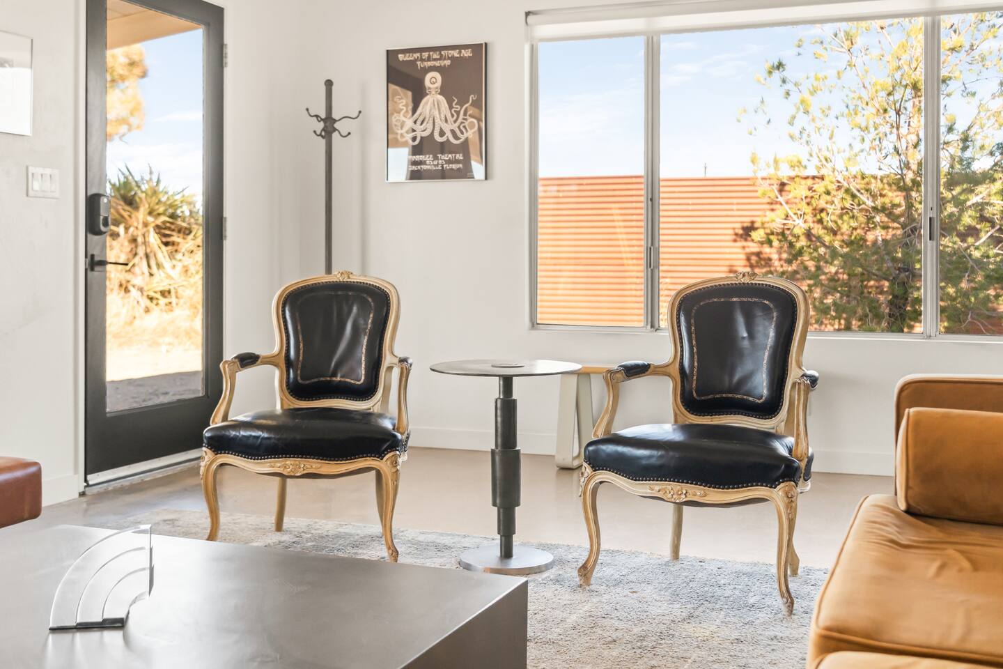 Highlights 2 spacious bedrooms with King beds Additional sleeping space in the living room Indoor electric fireplace Yoga room for movement and meditation 1 full bathroom + half bath + outdoor shower Hot tub Cowboy pool (seasonal) 5 private acres in Pipes Canyon Fully equipped kitchen Washer and dryer in Creative Suite Large living room with Smart TV Sonos speakers Separate workspace Outdoor fire pit, BBQ, and horseshoes Pet friendly High-speed WiFi for remote work or streaming Minutes from Pappy & Harriet’s Great Location 4 mins ➔ Pappy & Harriet’s 10 mins ➔ Integratron 18 mins ➔ Joshua Tree National Park Local Experiences Make the most of your stay with our favorite local experiences. Sound baths at the Integratron or with a local practitioner Massage, bodywork, or energy sessions at the house Guided desert hikes and nature walks Yoga, Pilates, or breathwork under open skies Private chef dinners and in-home dining Stargazing and astronomy tours Horseback rides through desert trails Cold plunges and wellness sessions with local experts We’d love to connect you with our favorite local guides and practitioners.