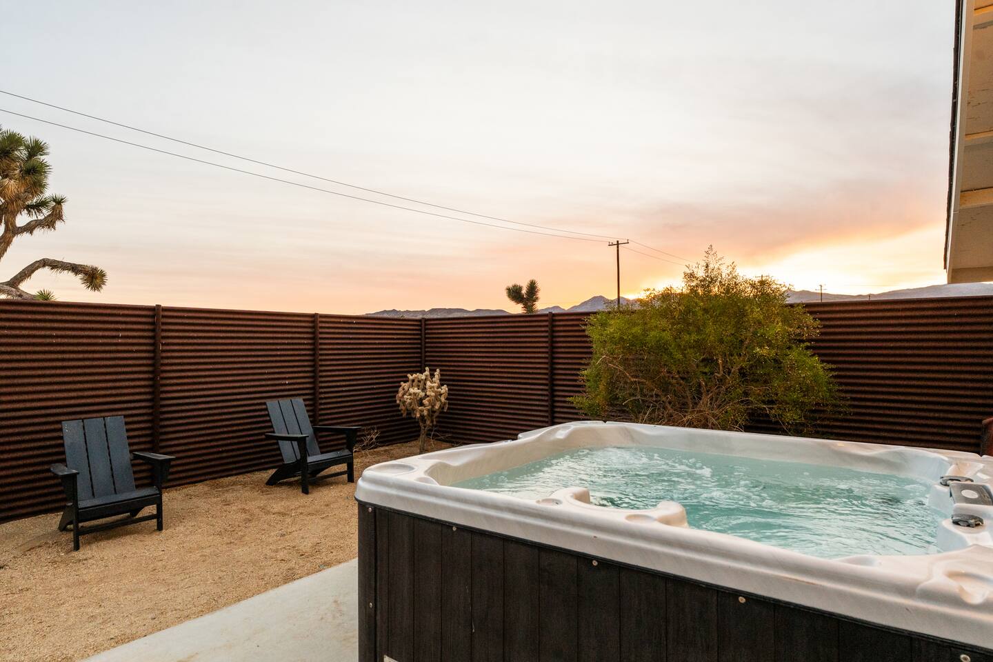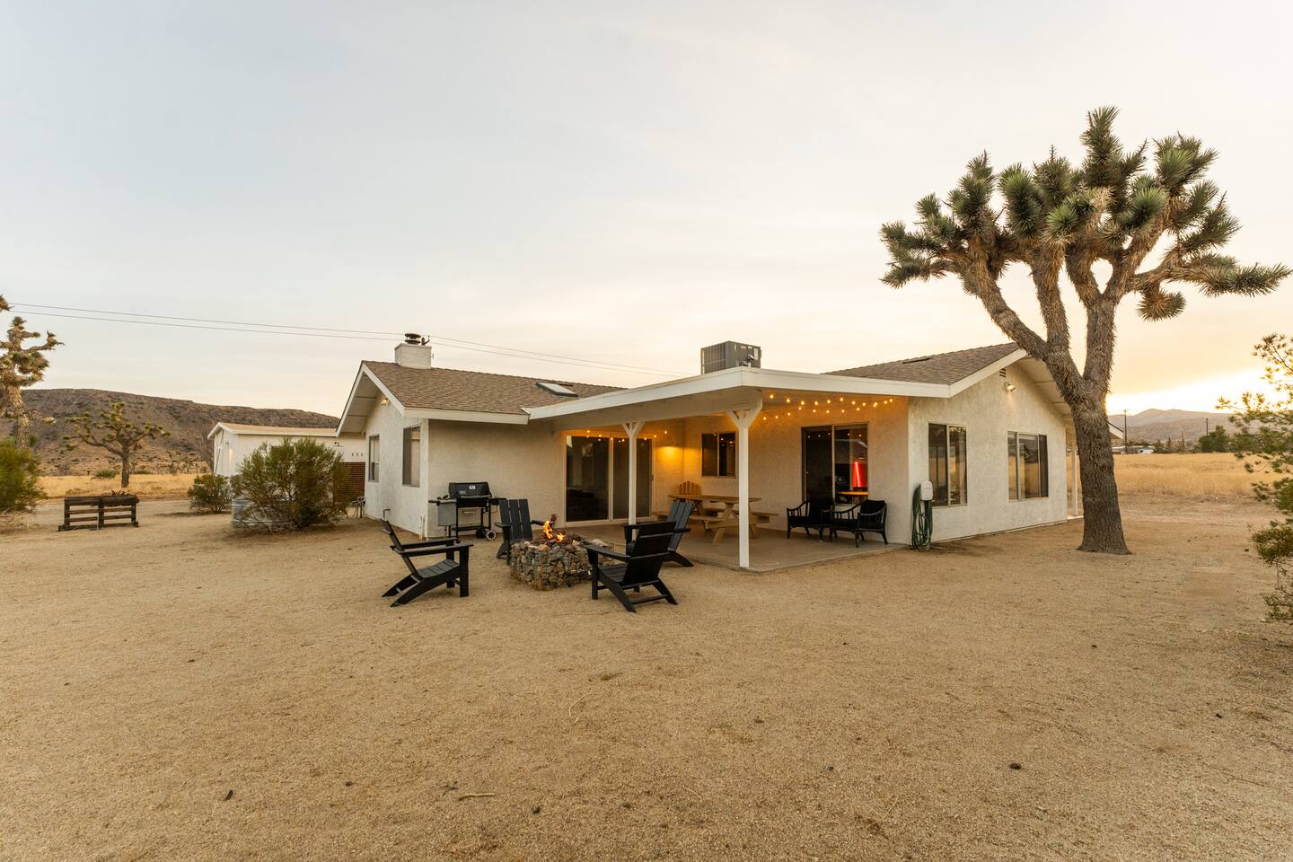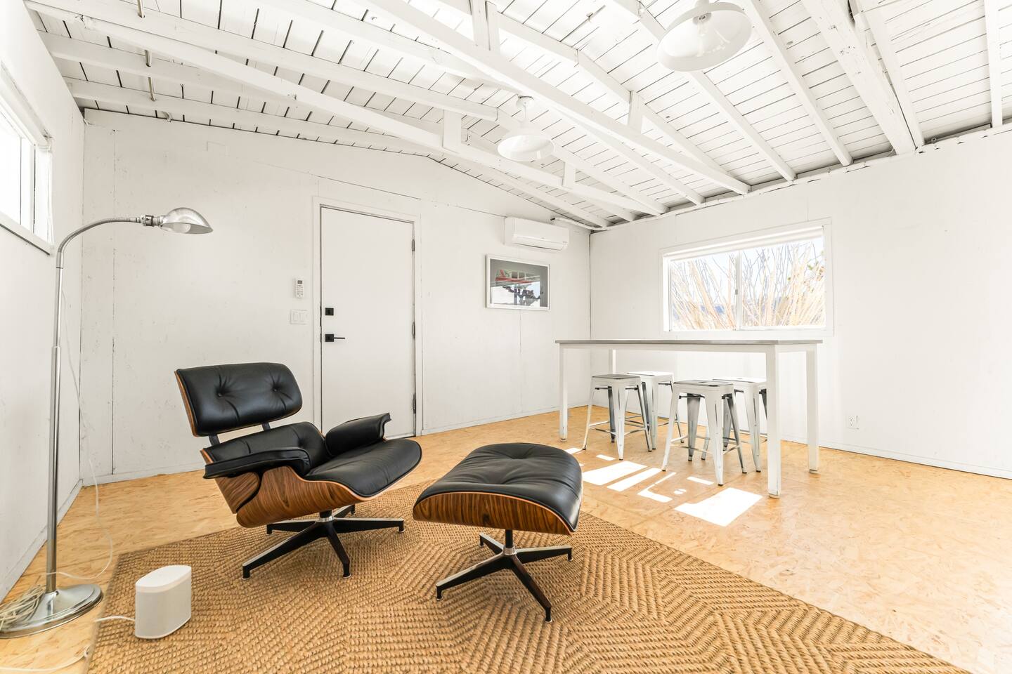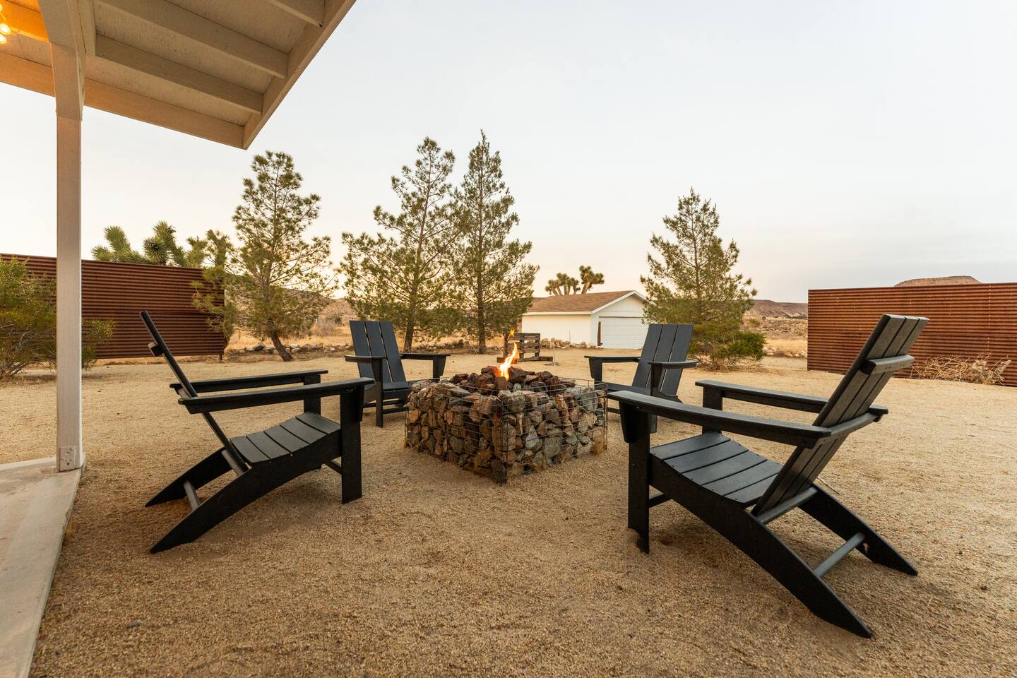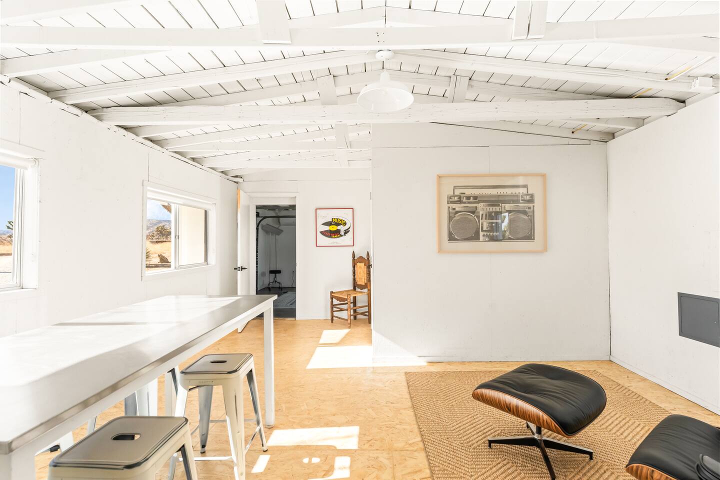 Highlights 2 spacious bedrooms with King beds Additional sleeping space in the living room Indoor electric fireplace Yoga room for movement and meditation 1 full bathroom + half bath + outdoor shower Hot tub Cowboy pool (seasonal) 5 private acres in Pipes Canyon Fully equipped kitchen Washer and dryer in Creative Suite Large living room with Smart TV Sonos speakers Separate workspace Outdoor fire pit, BBQ, and horseshoes Pet friendly High-speed WiFi for remote work or streaming Minutes from Pappy & Harriet’s Great Location 4 mins ➔ Pappy & Harriet’s 10 mins ➔ Integratron 18 mins ➔ Joshua Tree National Park Local Experiences Make the most of your stay with our favorite local experiences. Sound baths at the Integratron or with a local practitioner Massage, bodywork, or energy sessions at the house Guided desert hikes and nature walks Yoga, Pilates, or breathwork under open skies Private chef dinners and in-home dining Stargazing and astronomy tours Horseback rides through desert trails Cold plunges and wellness sessions with local experts We’d love to connect you with our favorite local guides and practitioners.