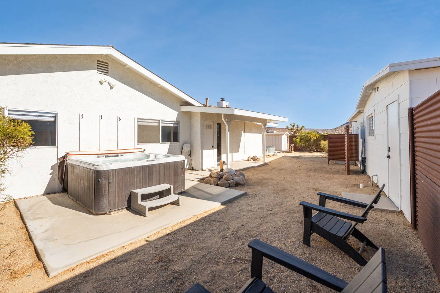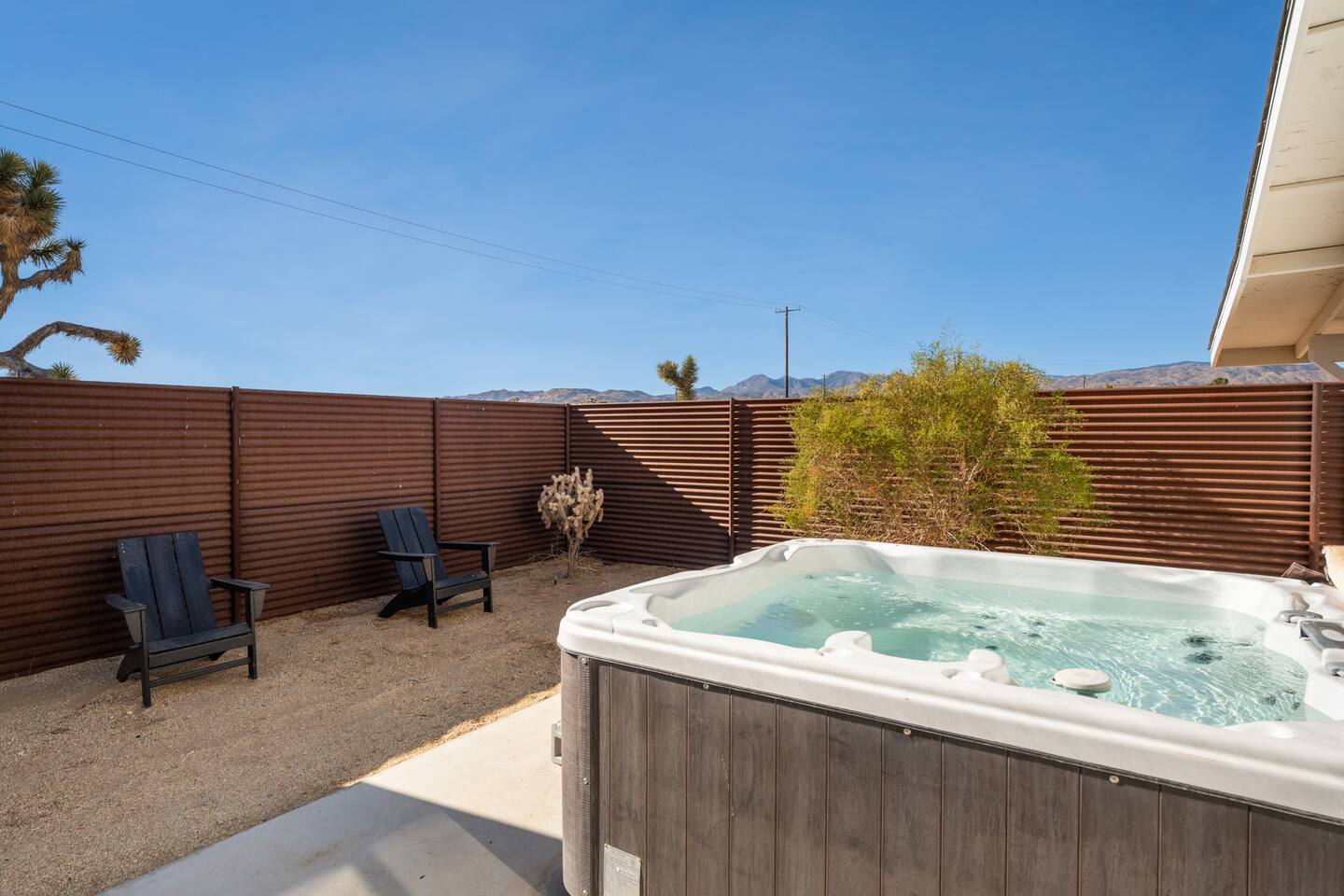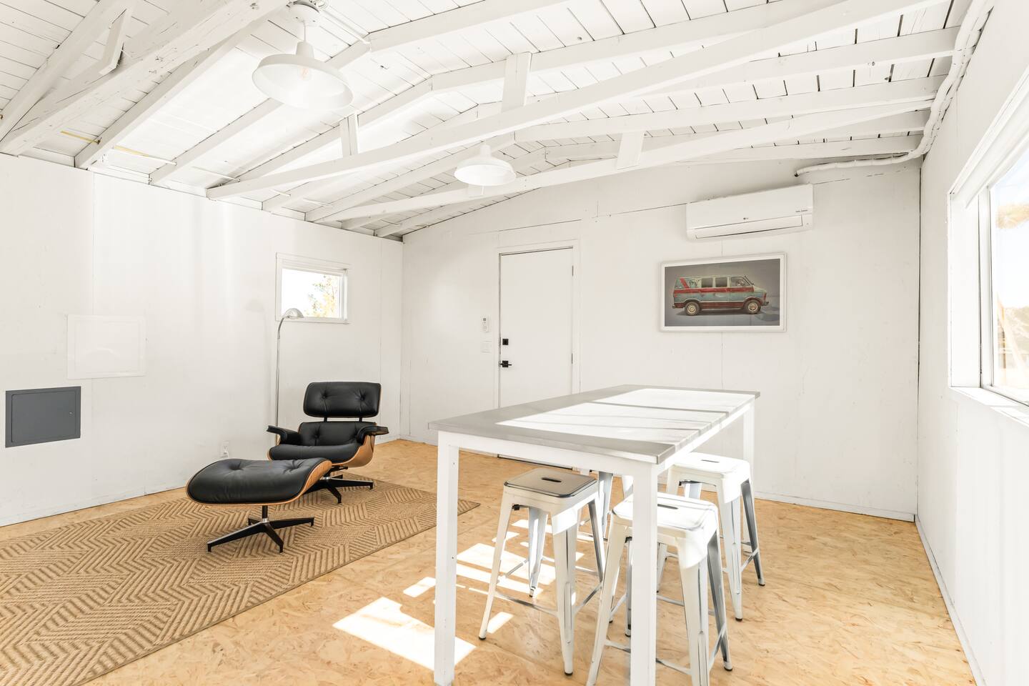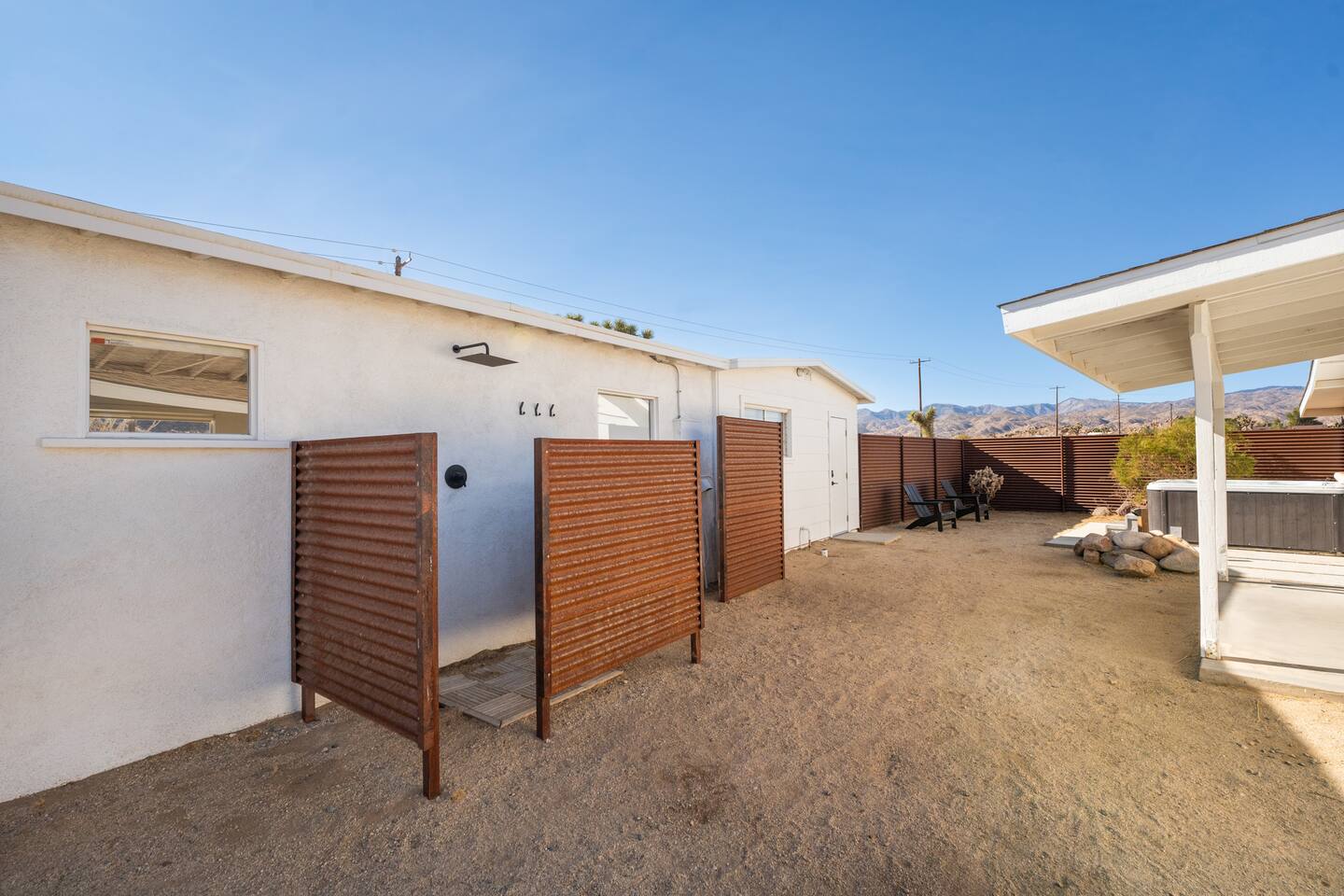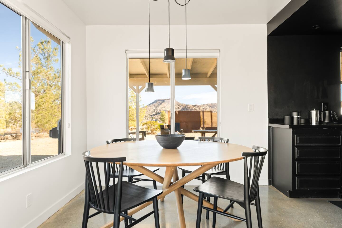 Highlights 2 spacious bedrooms with King beds Additional sleeping space in the living room Indoor electric fireplace Yoga room for movement and meditation 1 full bathroom + half bath + outdoor shower Hot tub Cowboy pool (seasonal) 5 private acres in Pipes Canyon Fully equipped kitchen Washer and dryer in Creative Suite Large living room with Smart TV Sonos speakers Separate workspace Outdoor fire pit, BBQ, and horseshoes Pet friendly High-speed WiFi for remote work or streaming Minutes from Pappy & Harriet’s Great Location 4 mins ➔ Pappy & Harriet’s 10 mins ➔ Integratron 18 mins ➔ Joshua Tree National Park Local Experiences Make the most of your stay with our favorite local experiences. Sound baths at the Integratron or with a local practitioner Massage, bodywork, or energy sessions at the house Guided desert hikes and nature walks Yoga, Pilates, or breathwork under open skies Private chef dinners and in-home dining Stargazing and astronomy tours Horseback rides through desert trails Cold plunges and wellness sessions with local experts We’d love to connect you with our favorite local guides and practitioners.