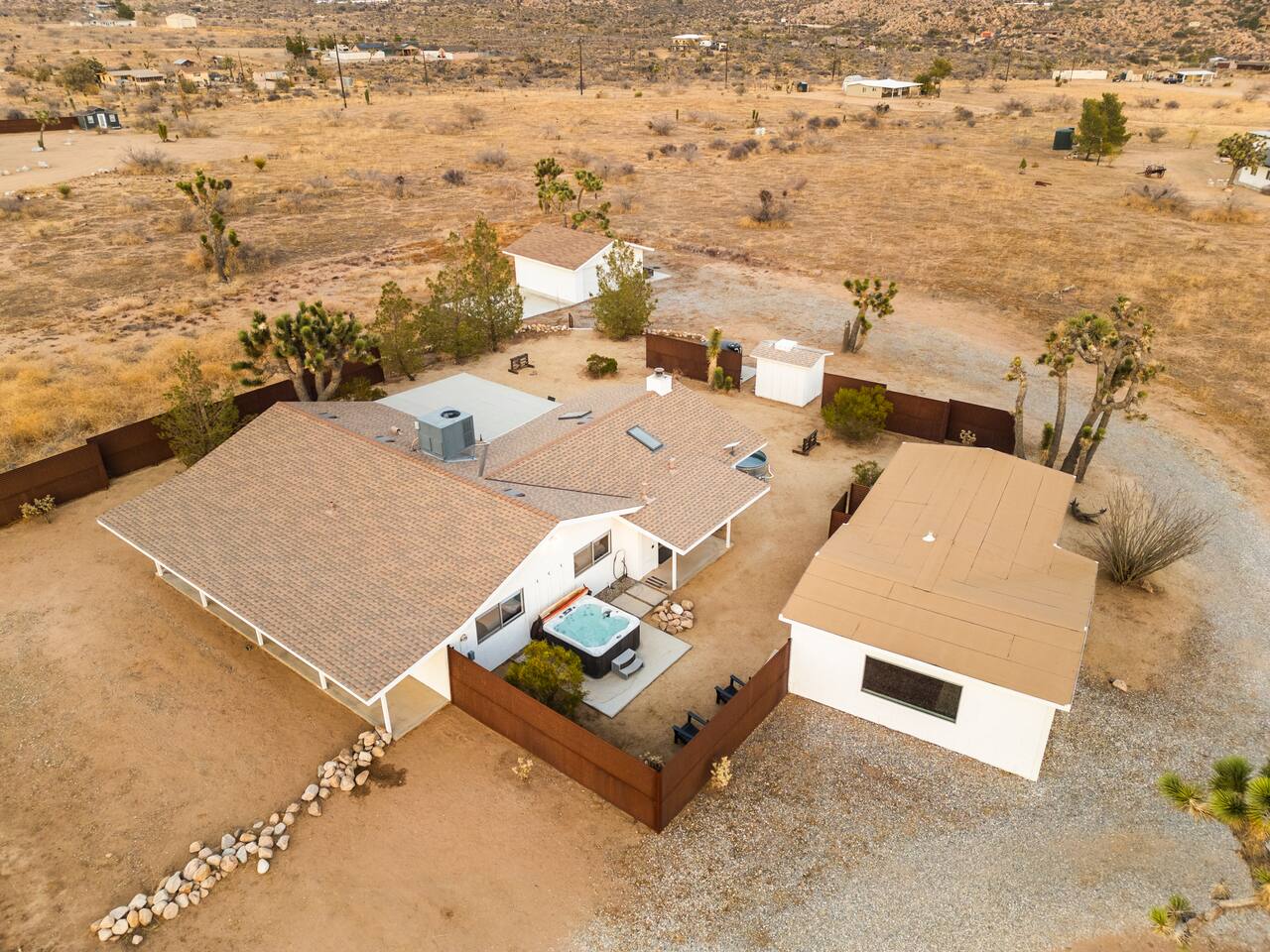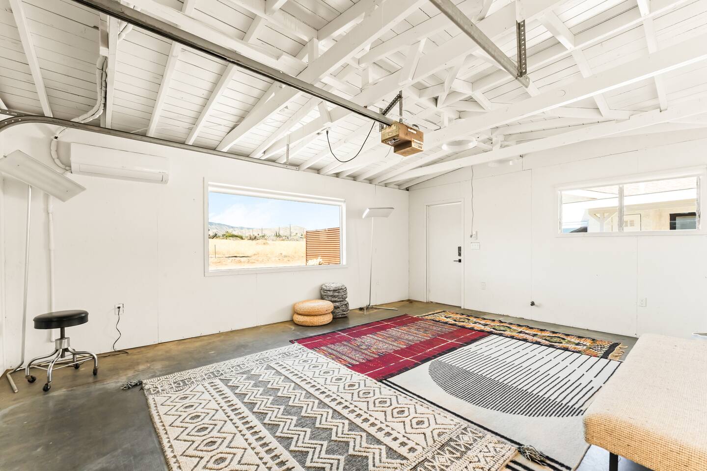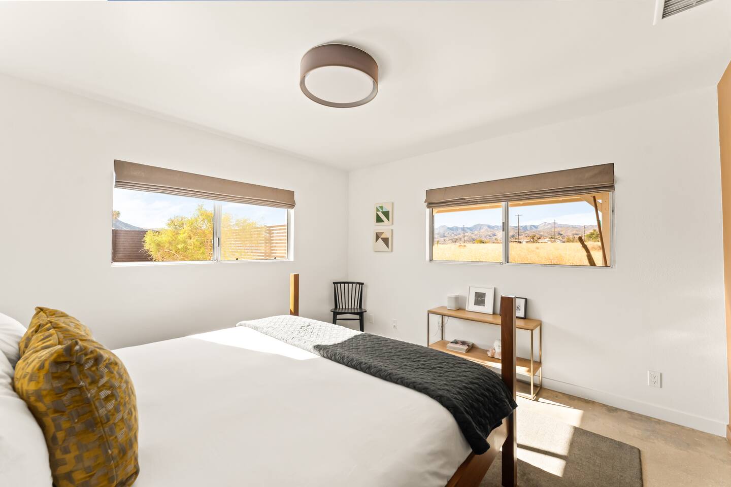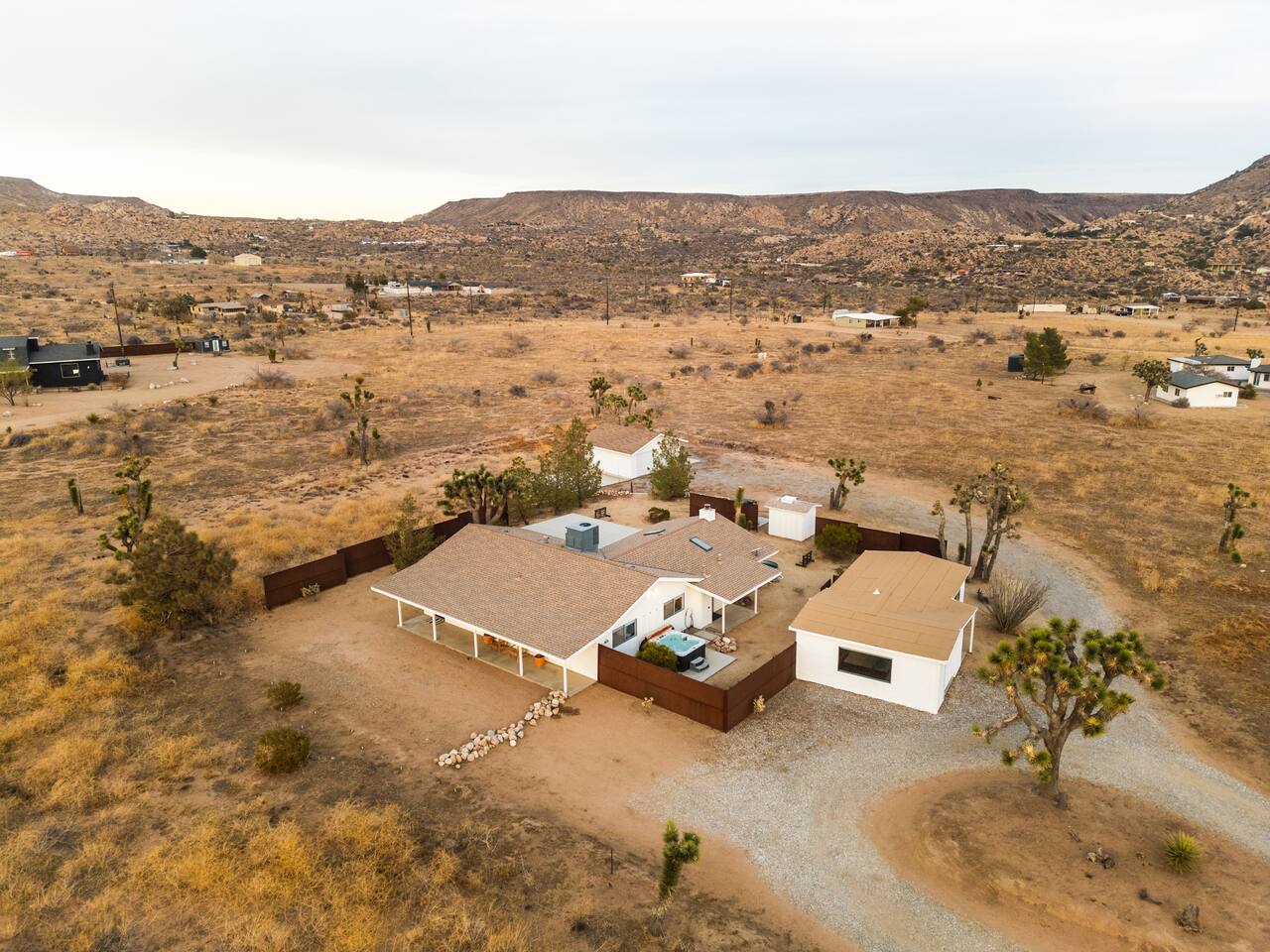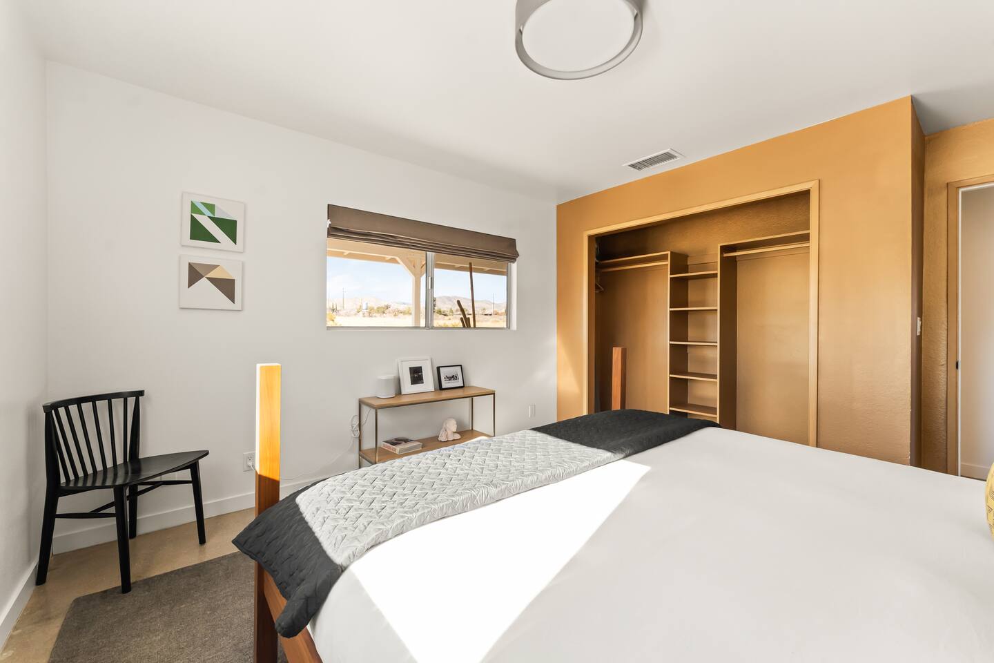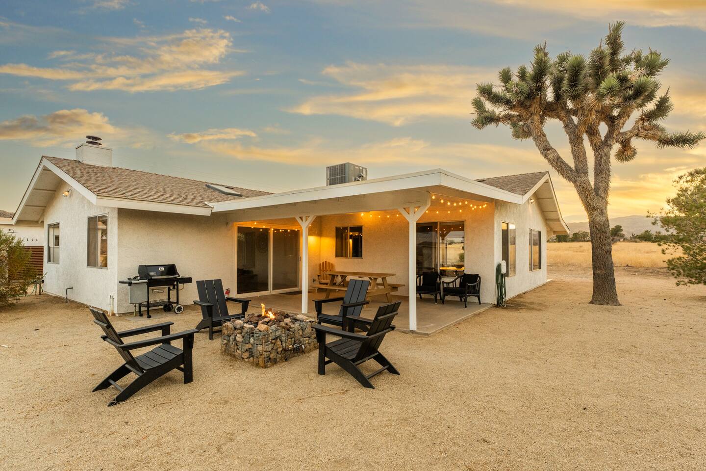 Highlights 2 spacious bedrooms with King beds Additional sleeping space in the living room Indoor electric fireplace Yoga room for movement and meditation 1 full bathroom + half bath + outdoor shower Hot tub Cowboy pool (seasonal) 5 private acres in Pipes Canyon Fully equipped kitchen Washer and dryer in Creative Suite Large living room with Smart TV Sonos speakers Separate workspace Outdoor fire pit, BBQ, and horseshoes Pet friendly High-speed WiFi for remote work or streaming Minutes from Pappy & Harriet’s Great Location 4 mins ➔ Pappy & Harriet’s 10 mins ➔ Integratron 18 mins ➔ Joshua Tree National Park Local Experiences Make the most of your stay with our favorite local experiences. Sound baths at the Integratron or with a local practitioner Massage, bodywork, or energy sessions at the house Guided desert hikes and nature walks Yoga, Pilates, or breathwork under open skies Private chef dinners and in-home dining Stargazing and astronomy tours Horseback rides through desert trails Cold plunges and wellness sessions with local experts We’d love to connect you with our favorite local guides and practitioners.