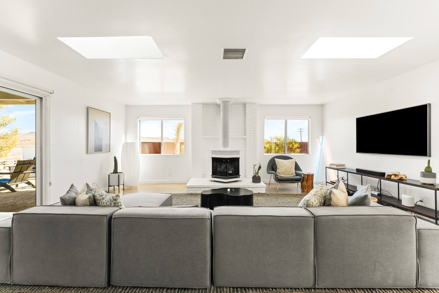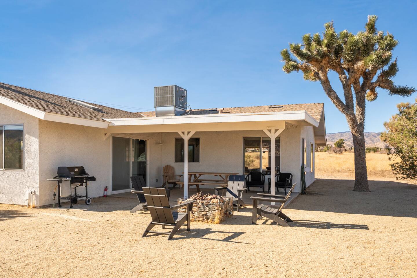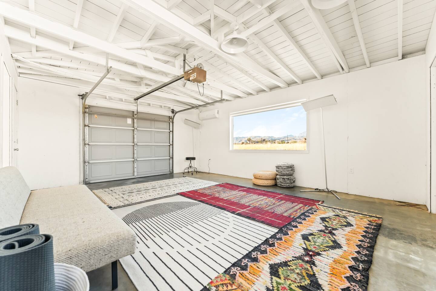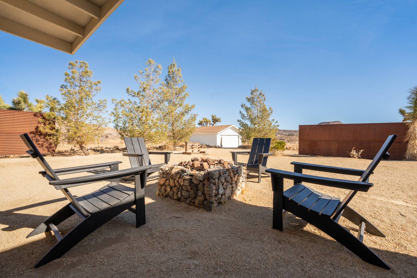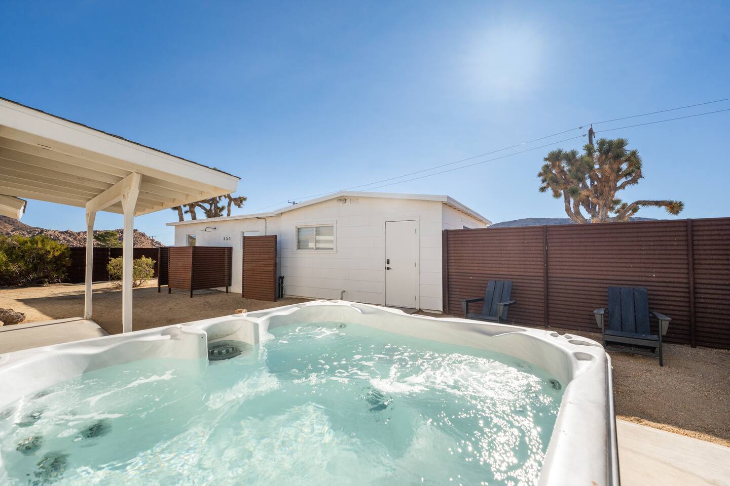 Highlights 2 spacious bedrooms with King beds Additional sleeping space in the living room Indoor electric fireplace Yoga room for movement and meditation 1 full bathroom + half bath + outdoor shower Hot tub Cowboy pool (seasonal) 5 private acres in Pipes Canyon Fully equipped kitchen Washer and dryer in Creative Suite Large living room with Smart TV Sonos speakers Separate workspace Outdoor fire pit, BBQ, and horseshoes Pet friendly High-speed WiFi for remote work or streaming Minutes from Pappy & Harriet’s Great Location 4 mins ➔ Pappy & Harriet’s 10 mins ➔ Integratron 18 mins ➔ Joshua Tree National Park Local Experiences Make the most of your stay with our favorite local experiences. Sound baths at the Integratron or with a local practitioner Massage, bodywork, or energy sessions at the house Guided desert hikes and nature walks Yoga, Pilates, or breathwork under open skies Private chef dinners and in-home dining Stargazing and astronomy tours Horseback rides through desert trails Cold plunges and wellness sessions with local experts We’d love to connect you with our favorite local guides and practitioners.