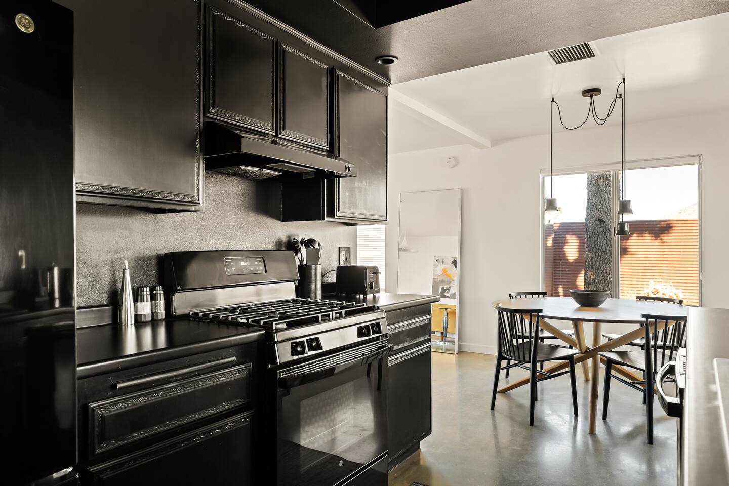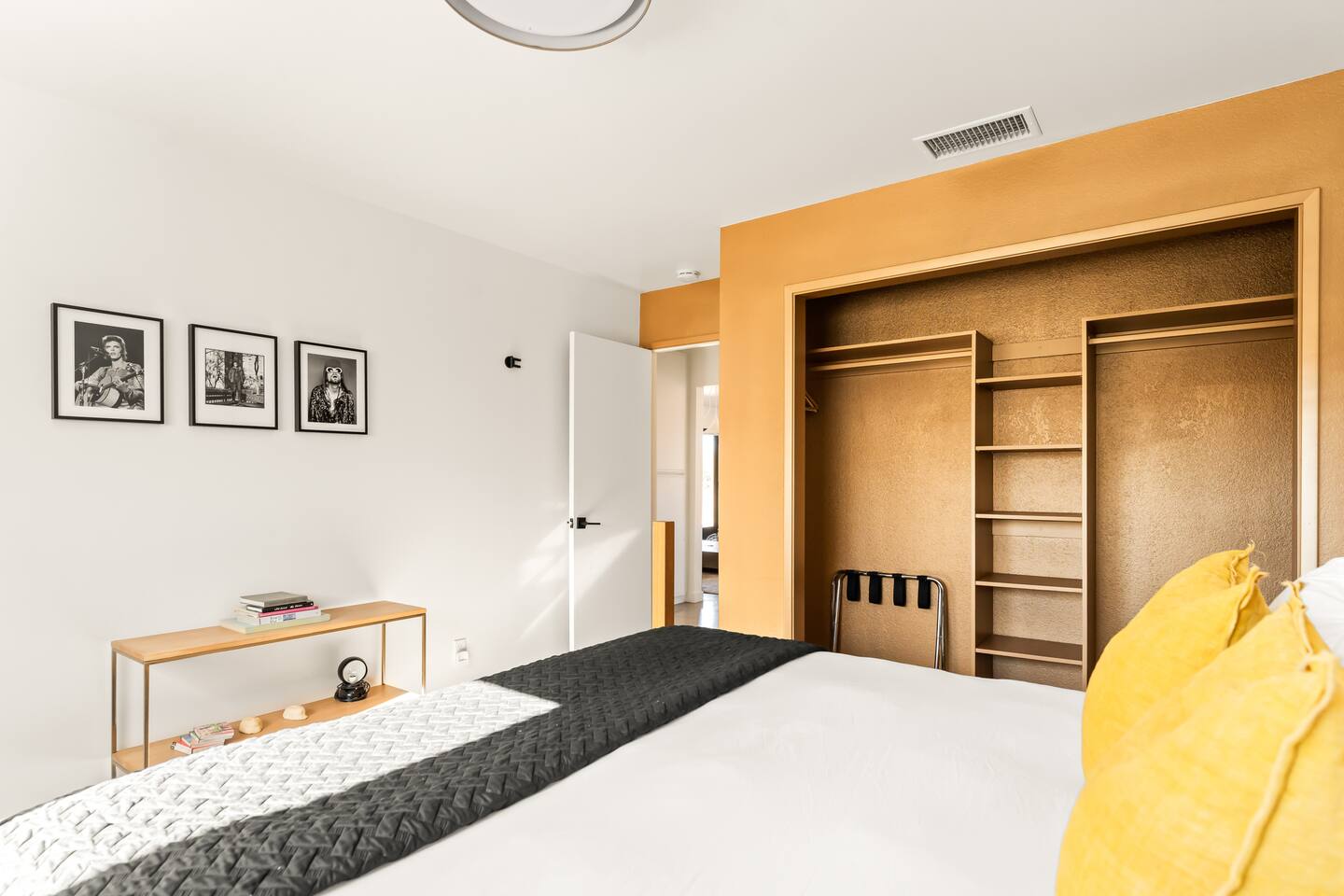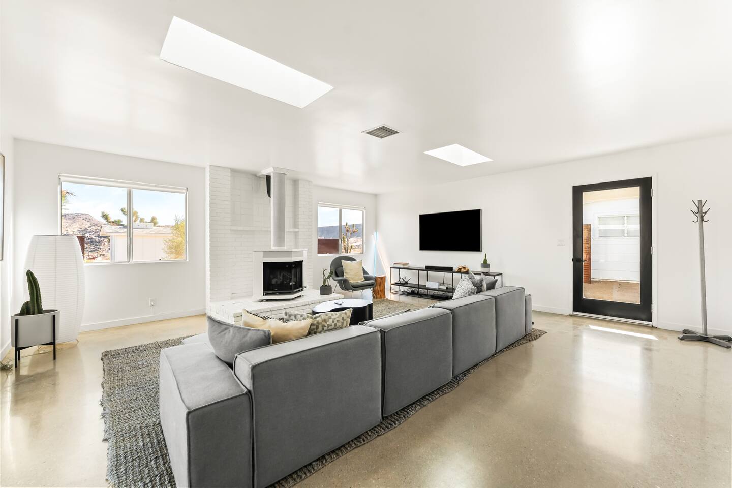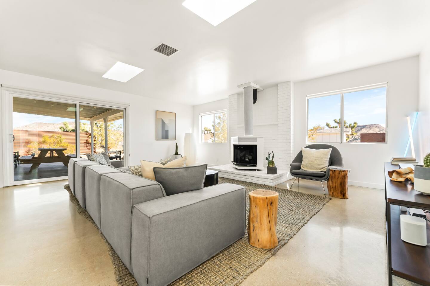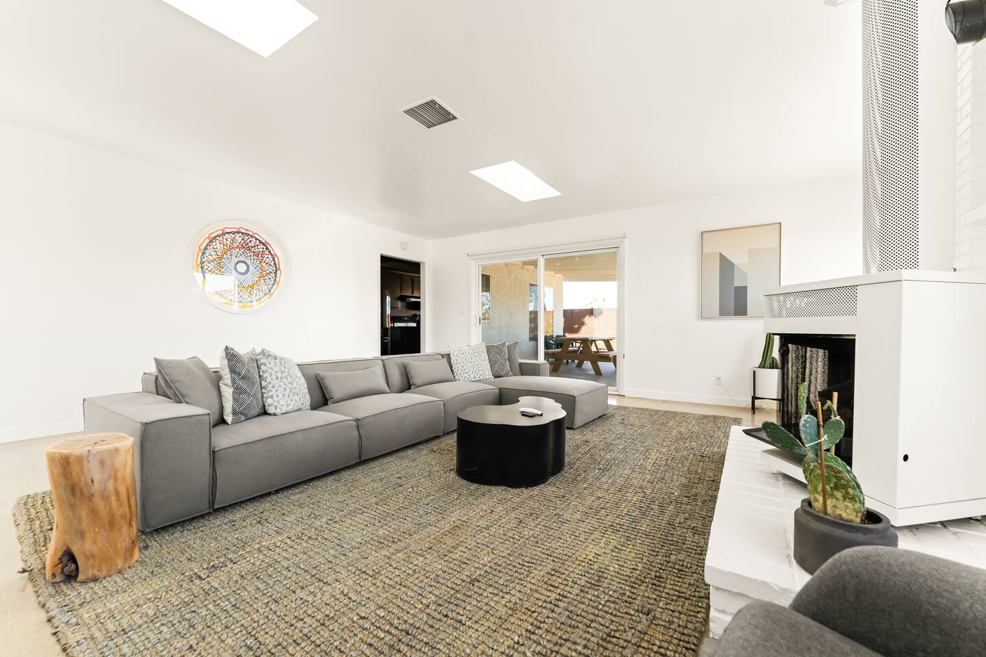 Highlights 2 spacious bedrooms with King beds Additional sleeping space in the living room Indoor electric fireplace Yoga room for movement and meditation 1 full bathroom + half bath + outdoor shower Hot tub Cowboy pool (seasonal) 5 private acres in Pipes Canyon Fully equipped kitchen Washer and dryer in Creative Suite Large living room with Smart TV Sonos speakers Separate workspace Outdoor fire pit, BBQ, and horseshoes Pet friendly High-speed WiFi for remote work or streaming Minutes from Pappy & Harriet’s Great Location 4 mins ➔ Pappy & Harriet’s 10 mins ➔ Integratron 18 mins ➔ Joshua Tree National Park Local Experiences Make the most of your stay with our favorite local experiences. Sound baths at the Integratron or with a local practitioner Massage, bodywork, or energy sessions at the house Guided desert hikes and nature walks Yoga, Pilates, or breathwork under open skies Private chef dinners and in-home dining Stargazing and astronomy tours Horseback rides through desert trails Cold plunges and wellness sessions with local experts We’d love to connect you with our favorite local guides and practitioners.