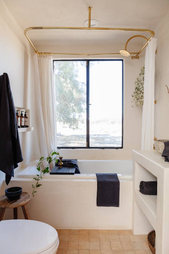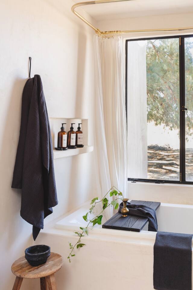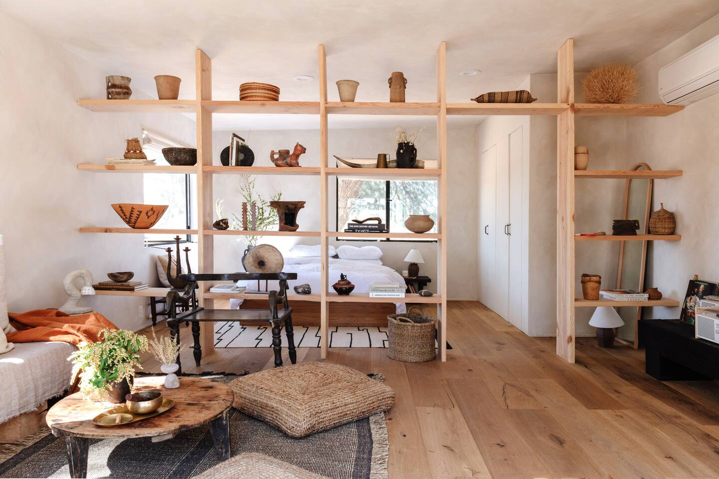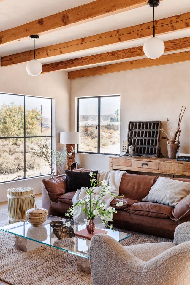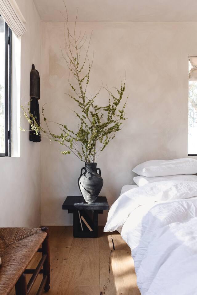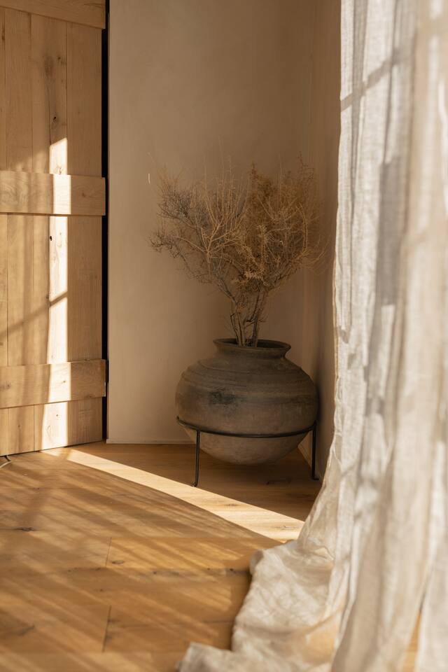 Nestled in the vast dunes of 29 Palms, is a secluded and tranquil desert retreat called Arro Dunes with 360 mountain views that sits on 10 unfenced acres once home to the Chemehuevi tribe. Designed with a strong focus on organic materials and fusing inspiration from Japanese wabi-sabi aesthetics (the acceptance of imperfections) and minimalist primitive decor, the home brings a beautiful balance of thoughtfully sourced one-of-a-kind antiques alongside modern luxuries.