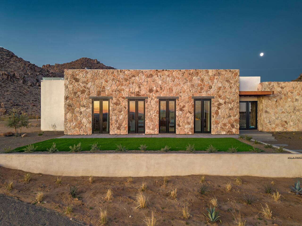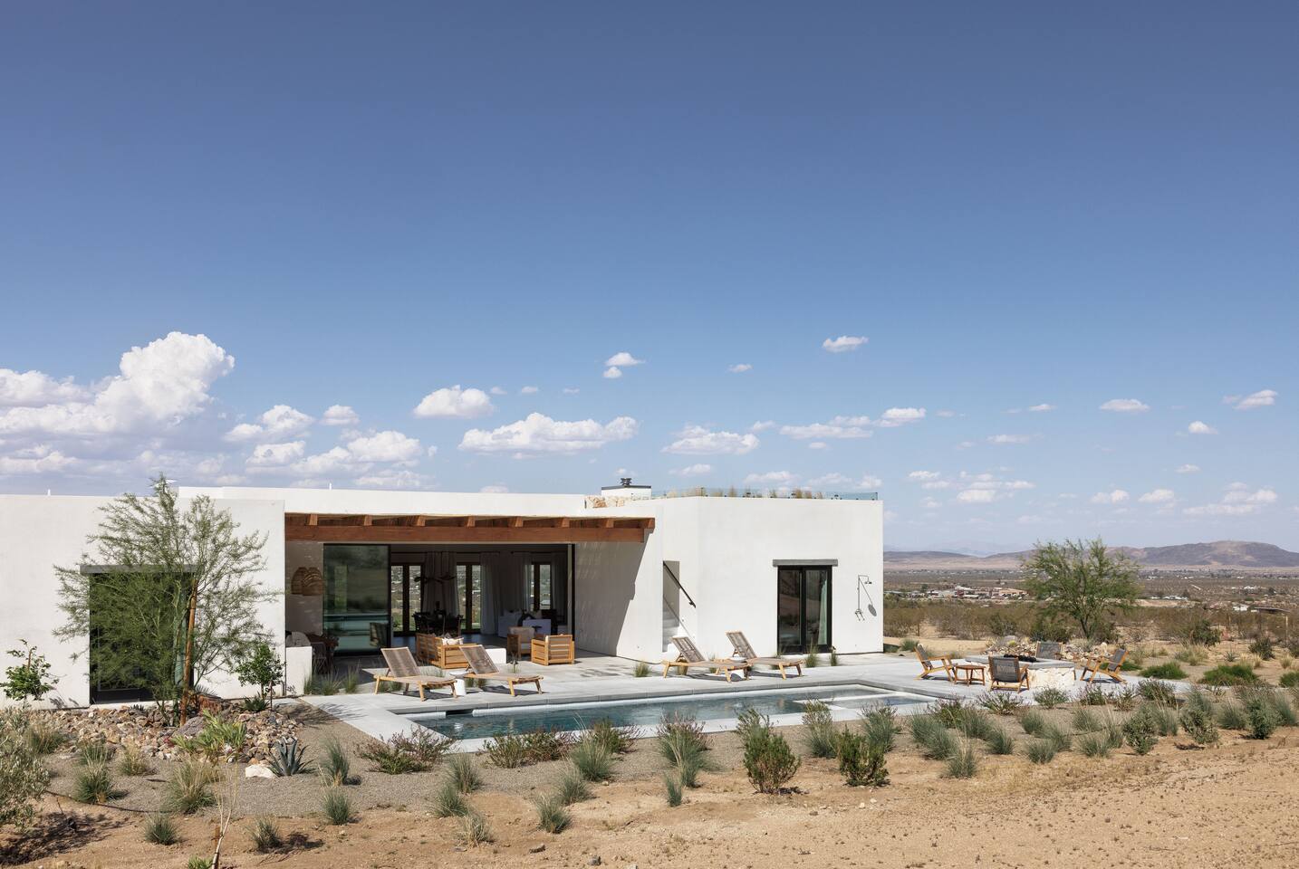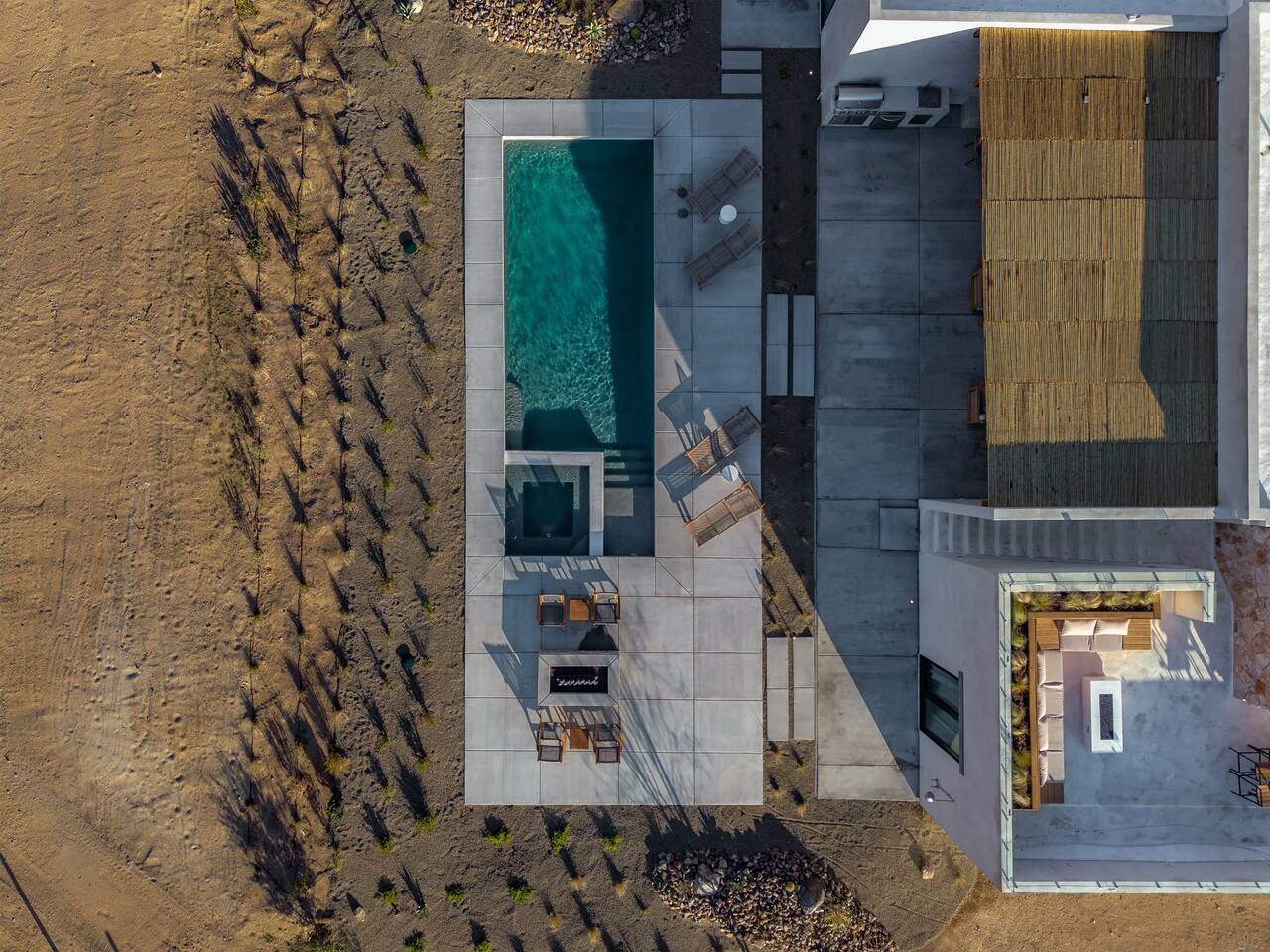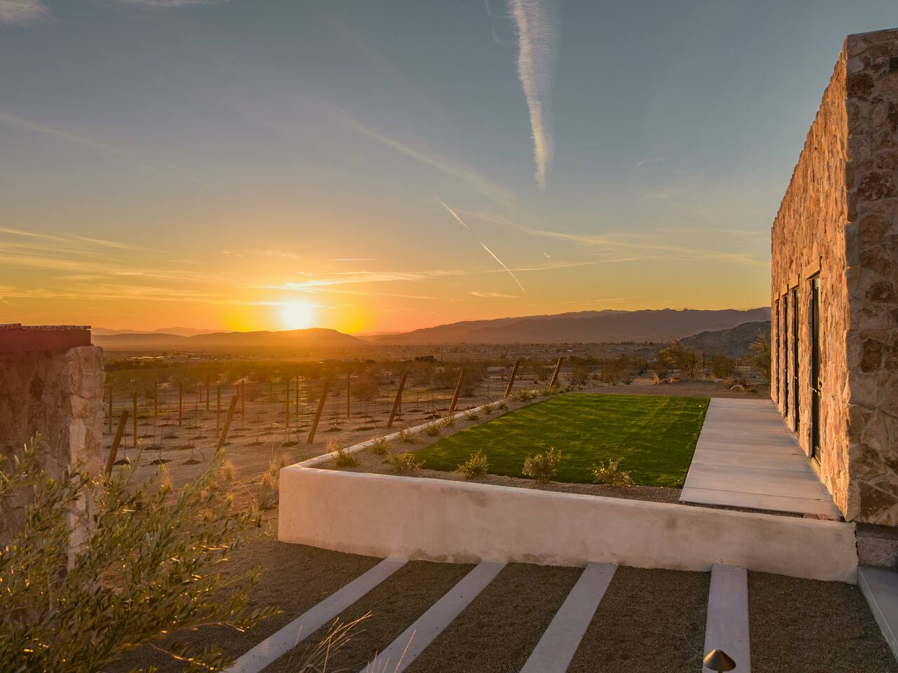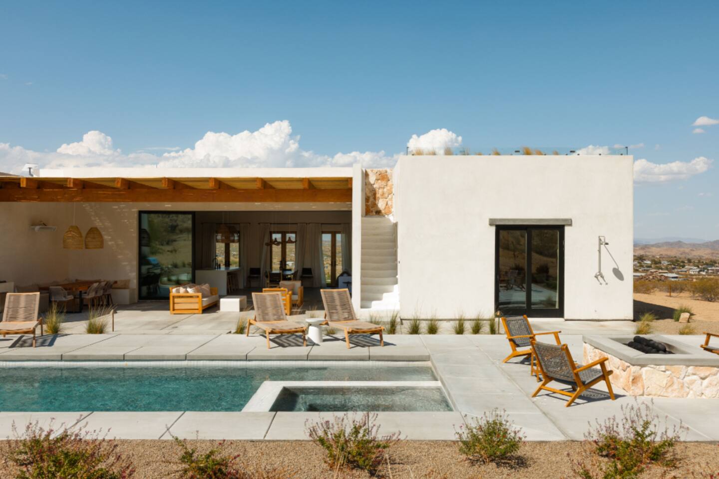 Villa Paros is your private 3-acre escape where Mediterranean ease meets high desert beauty. This thoughtfully designed 3-bedroom villa is rooted in the landscape, surrounded by native flora, sculpted with architectural simplicity, and infused with indoor-outdoor flow. Step into the calm: • Heated pool and spa framed by mountain views • Yoga lawn overlooking our private vineyard • Rooftop and poolside fire pits for golden hour rituals • Working vineyard with four Mediterranean varietals, harvested each September for wine • Direct access to scenic Bartlett Mountains hiking trails just behind the property • Outdoor dining, gas grill, and star-studded nights • EV charger Each bedroom is tailored for rest, with plush bedding, TVs, and high-speed WiFi. The entire property is gated and fully fenced for peace of mind and total privacy. Whether you're lounging poolside, exploring nearby trails, or gathering around the fire, Villa Paros offers a stay that’s both grounding and elevated. Experiences: Rooted in the community, we know the desert well and enjoy sharing it with our guests. Here are some unforgettable ways to experience the area. - Immerse yourself in a sound bath at the Integratron or with a local practitioner. - Book an in-home massage with a trusted desert therapist. - Set out on a private guided hike. - Enjoy a custom meal prepared in-home by a private chef. - Move and reset with a personal Yoga or Pilates session. - Discover the night sky on a private stargazing tour under some of California’s darkest skies. - Explore canyons and creeks on a private horseback ride. - Cold plunges and wellness sessions with local experts. We’d love to connect you with our favorite local guides and practitioners.