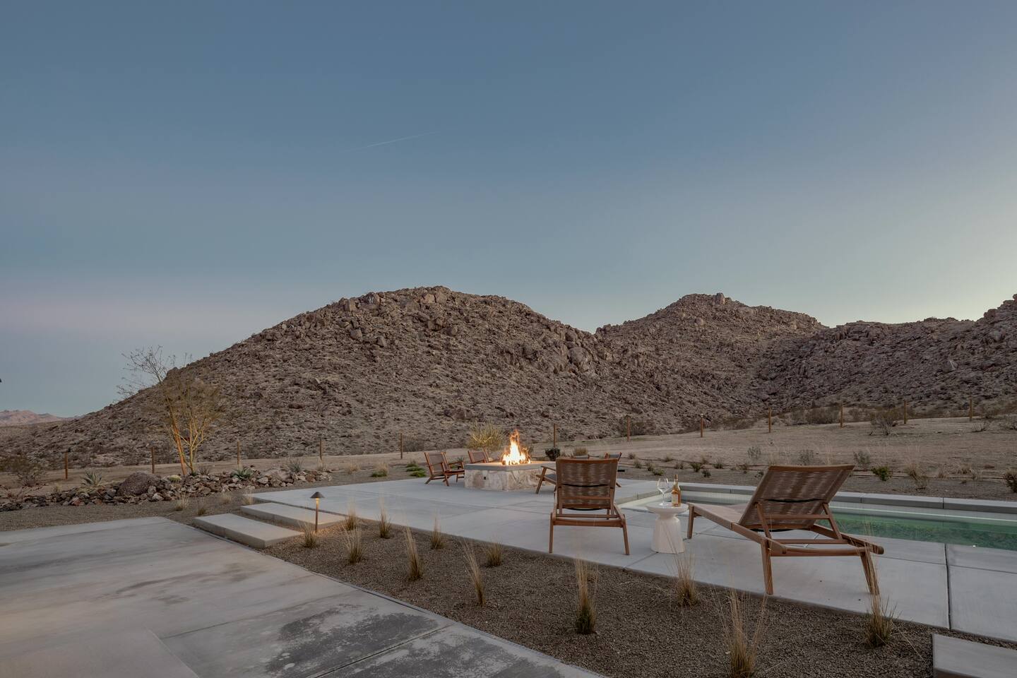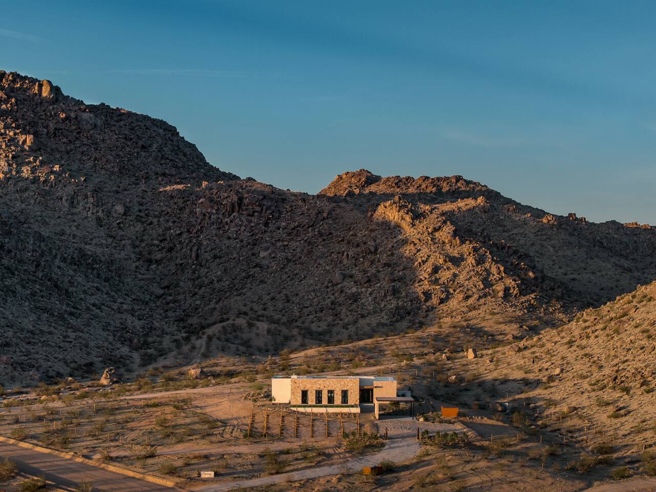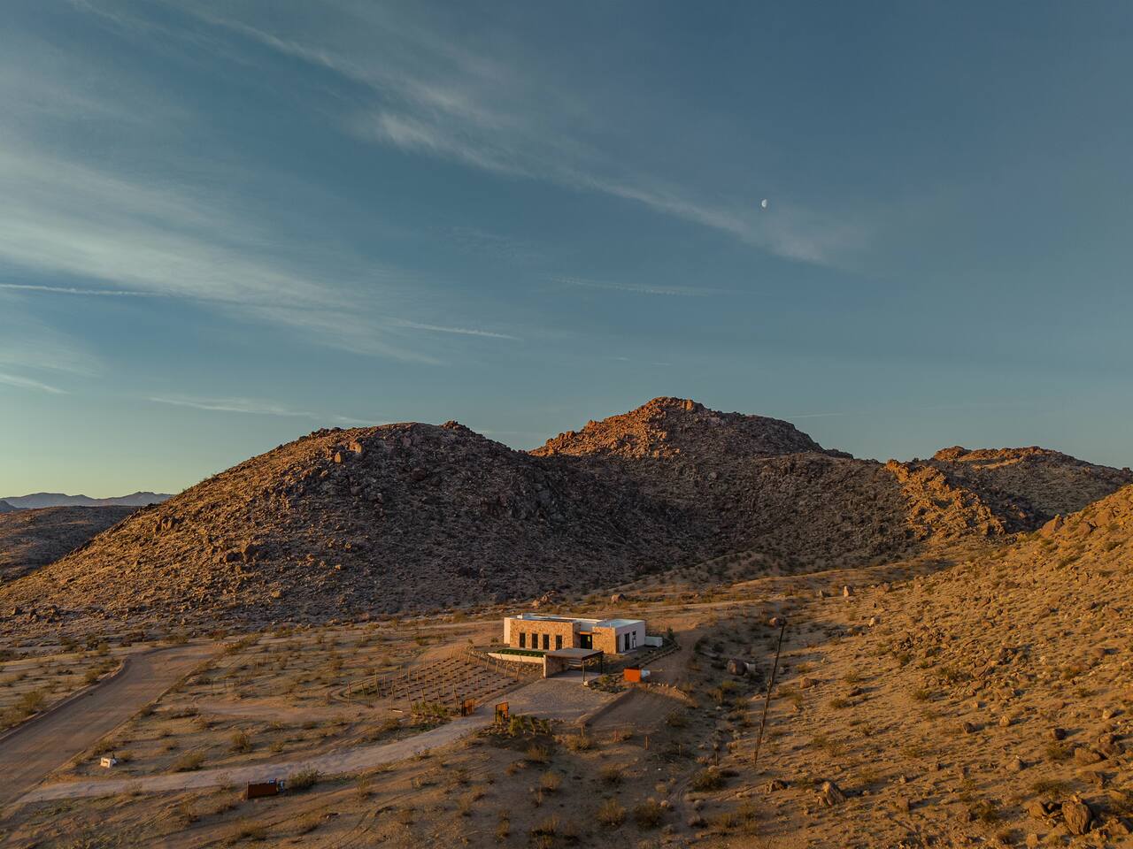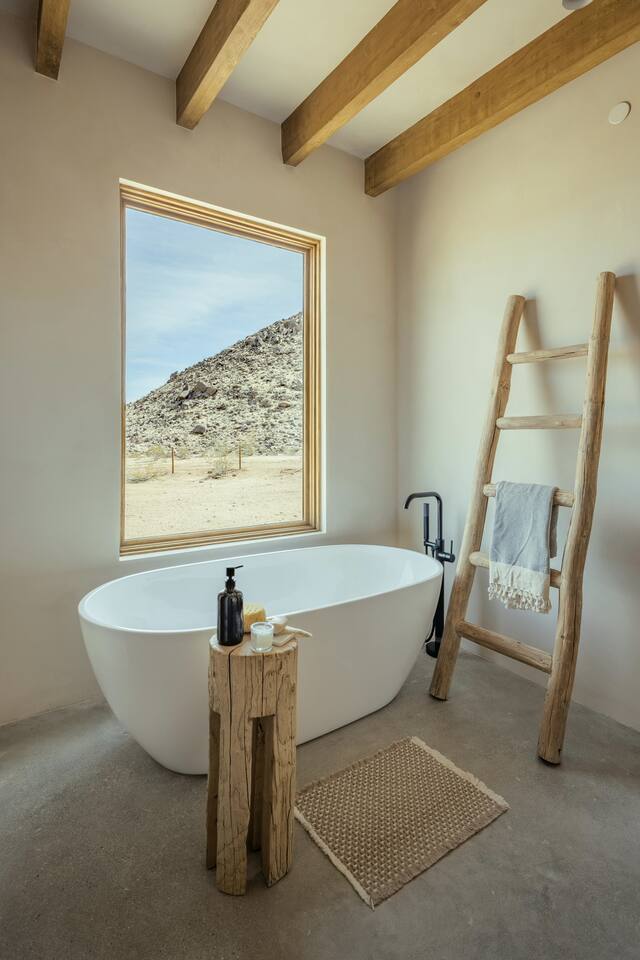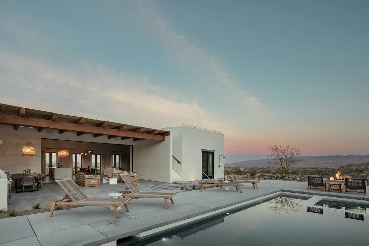 Villa Paros is your private 3-acre escape where Mediterranean ease meets high desert beauty. This thoughtfully designed 3-bedroom villa is rooted in the landscape, surrounded by native flora, sculpted with architectural simplicity, and infused with indoor-outdoor flow. Step into the calm: • Heated pool and spa framed by mountain views • Yoga lawn overlooking our private vineyard • Rooftop and poolside fire pits for golden hour rituals • Working vineyard with four Mediterranean varietals, harvested each September for wine • Direct access to scenic Bartlett Mountains hiking trails just behind the property • Outdoor dining, gas grill, and star-studded nights • EV charger Each bedroom is tailored for rest, with plush bedding, TVs, and high-speed WiFi. The entire property is gated and fully fenced for peace of mind and total privacy. Whether you're lounging poolside, exploring nearby trails, or gathering around the fire, Villa Paros offers a stay that’s both grounding and elevated. Experiences: Rooted in the community, we know the desert well and enjoy sharing it with our guests. Here are some unforgettable ways to experience the area. - Immerse yourself in a sound bath at the Integratron or with a local practitioner. - Book an in-home massage with a trusted desert therapist. - Set out on a private guided hike. - Enjoy a custom meal prepared in-home by a private chef. - Move and reset with a personal Yoga or Pilates session. - Discover the night sky on a private stargazing tour under some of California’s darkest skies. - Explore canyons and creeks on a private horseback ride. - Cold plunges and wellness sessions with local experts. We’d love to connect you with our favorite local guides and practitioners.