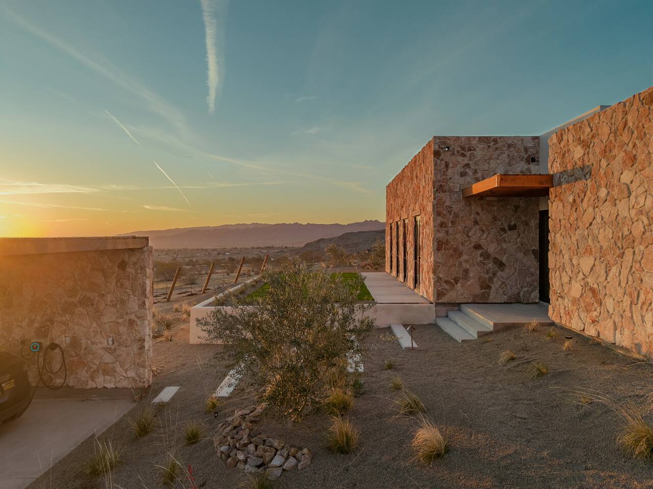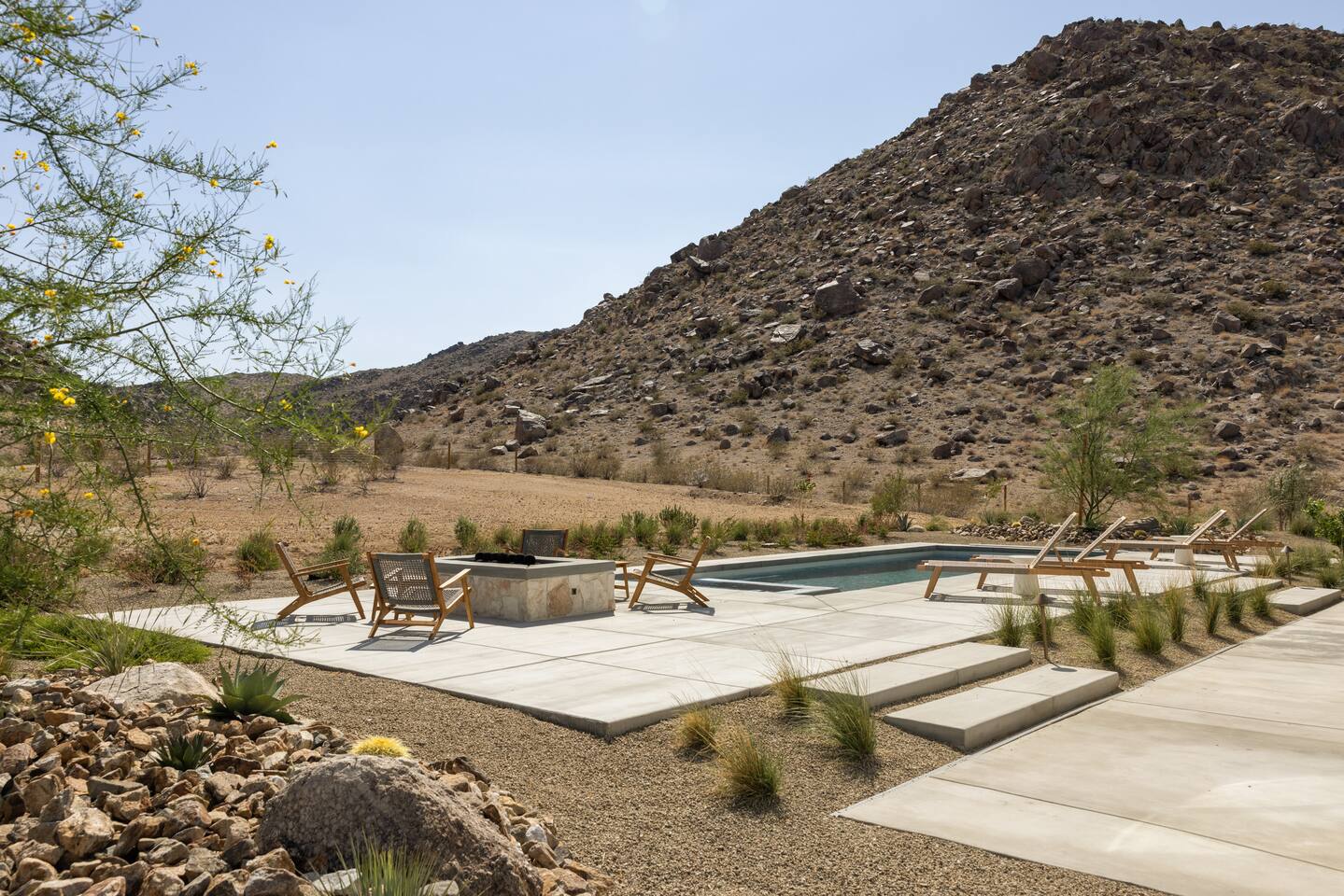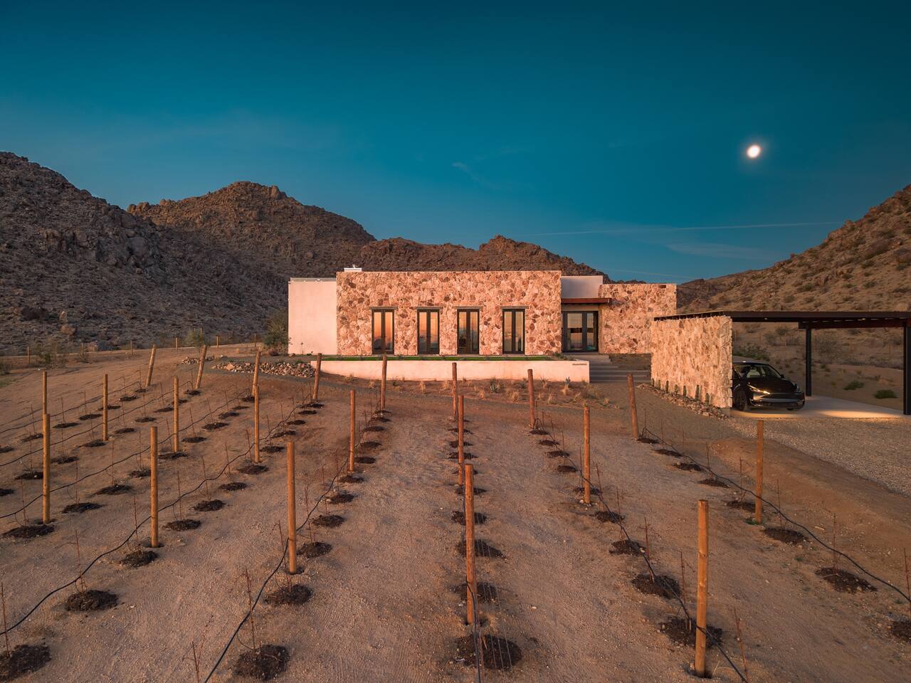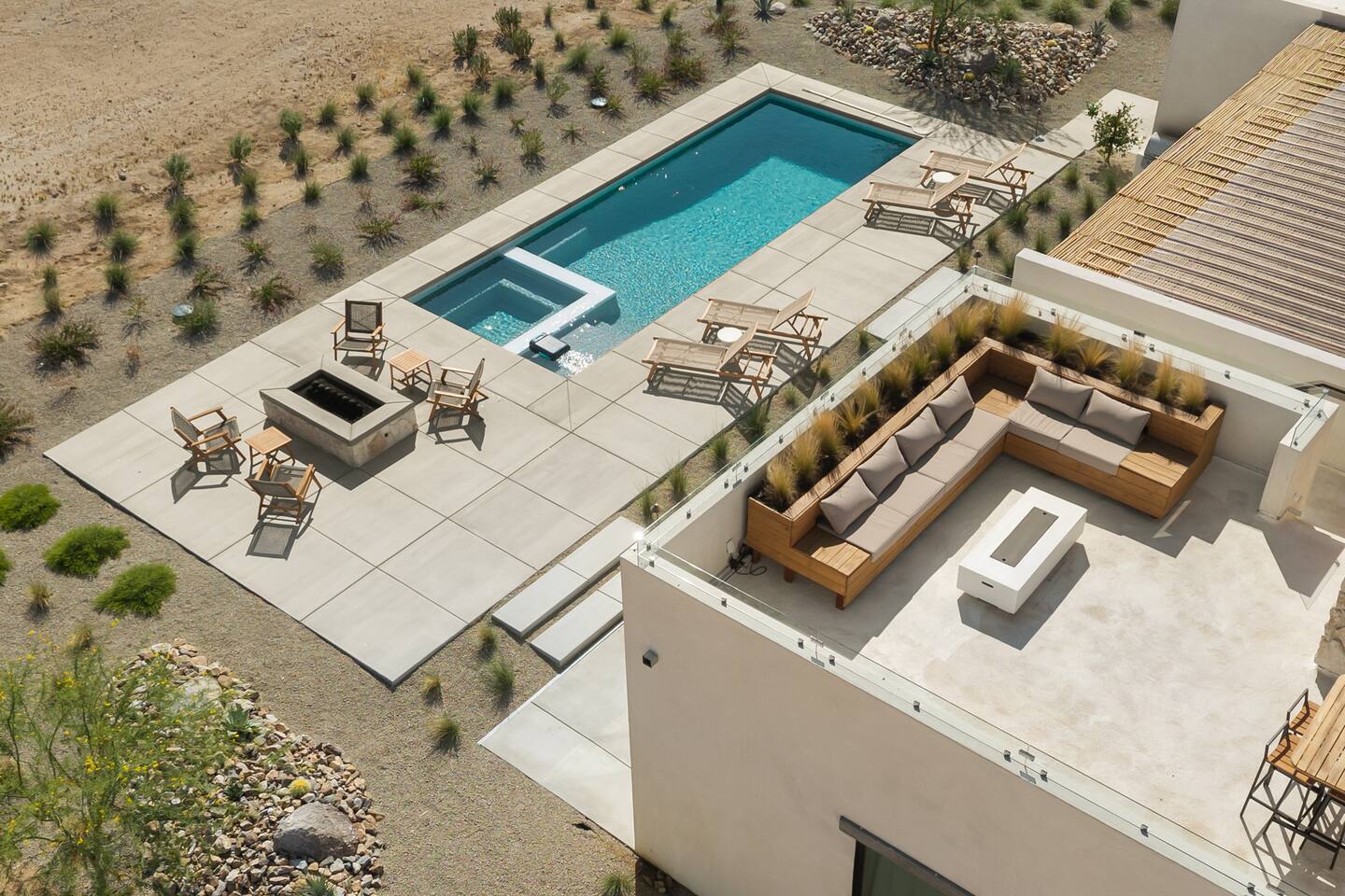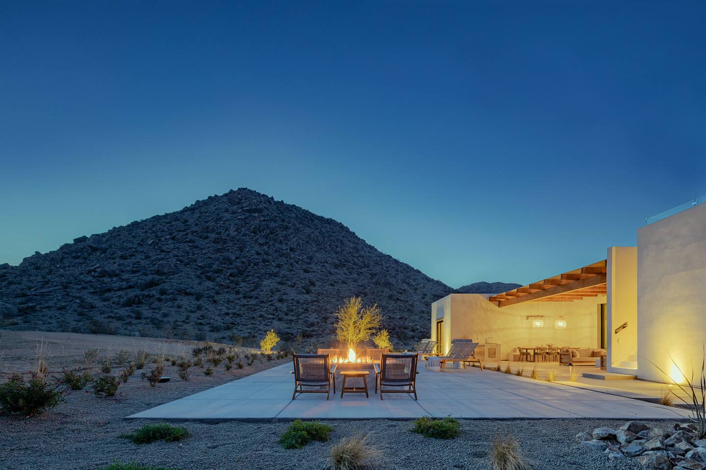 Villa Paros is your private 3-acre escape where Mediterranean ease meets high desert beauty. This thoughtfully designed 3-bedroom villa is rooted in the landscape, surrounded by native flora, sculpted with architectural simplicity, and infused with indoor-outdoor flow. Step into the calm: • Heated pool and spa framed by mountain views • Yoga lawn overlooking our private vineyard • Rooftop and poolside fire pits for golden hour rituals • Working vineyard with four Mediterranean varietals, harvested each September for wine • Direct access to scenic Bartlett Mountains hiking trails just behind the property • Outdoor dining, gas grill, and star-studded nights • EV charger Each bedroom is tailored for rest, with plush bedding, TVs, and high-speed WiFi. The entire property is gated and fully fenced for peace of mind and total privacy. Whether you're lounging poolside, exploring nearby trails, or gathering around the fire, Villa Paros offers a stay that’s both grounding and elevated. Experiences: Rooted in the community, we know the desert well and enjoy sharing it with our guests. Here are some unforgettable ways to experience the area. - Immerse yourself in a sound bath at the Integratron or with a local practitioner. - Book an in-home massage with a trusted desert therapist. - Set out on a private guided hike. - Enjoy a custom meal prepared in-home by a private chef. - Move and reset with a personal Yoga or Pilates session. - Discover the night sky on a private stargazing tour under some of California’s darkest skies. - Explore canyons and creeks on a private horseback ride. - Cold plunges and wellness sessions with local experts. We’d love to connect you with our favorite local guides and practitioners.