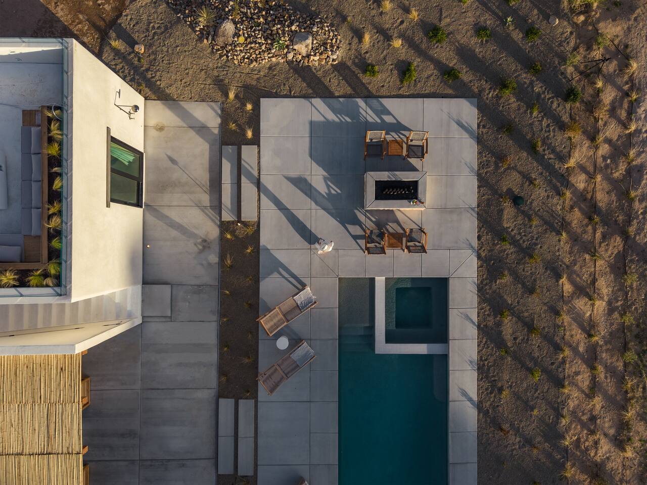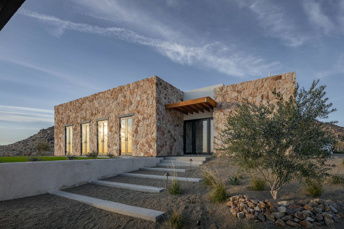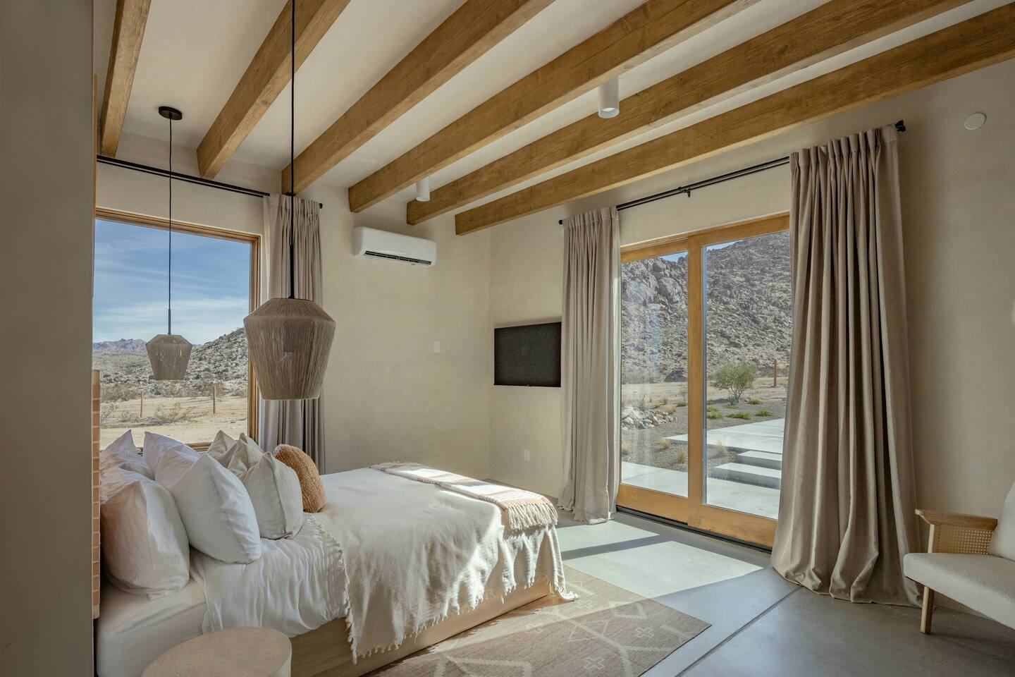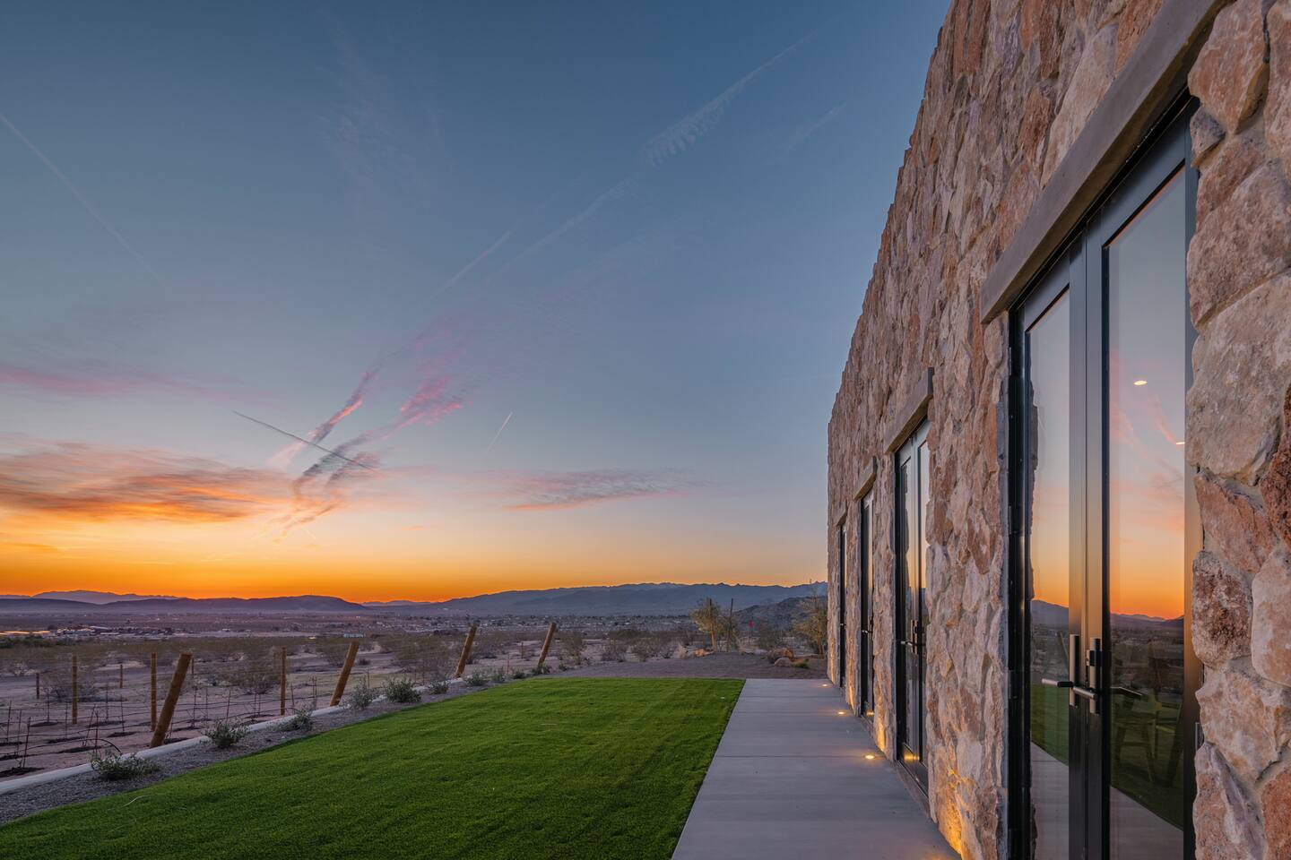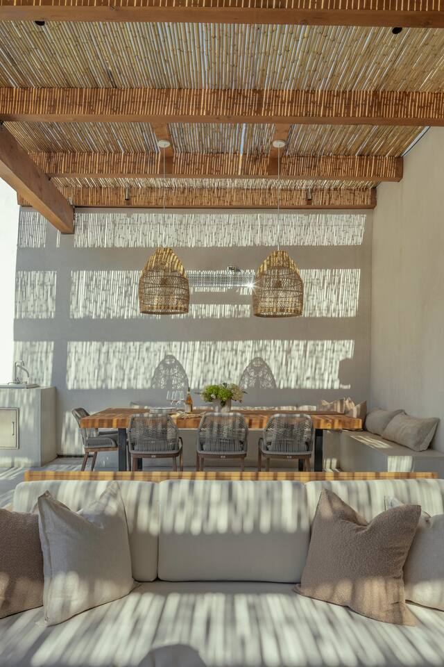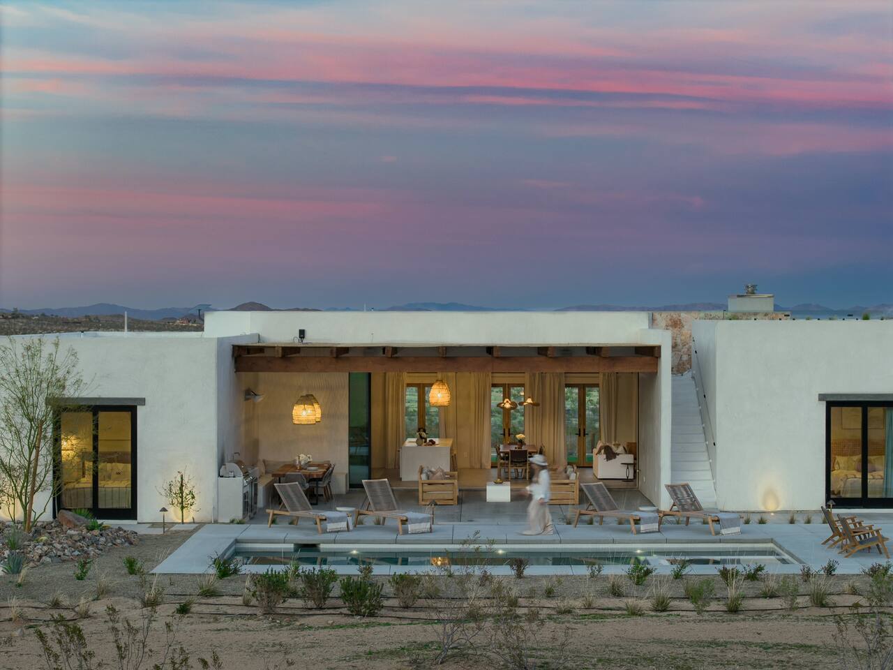 Villa Paros is your private 3-acre escape where Mediterranean ease meets high desert beauty. This thoughtfully designed 3-bedroom villa is rooted in the landscape, surrounded by native flora, sculpted with architectural simplicity, and infused with indoor-outdoor flow. Step into the calm: • Heated pool and spa framed by mountain views • Yoga lawn overlooking our private vineyard • Rooftop and poolside fire pits for golden hour rituals • Working vineyard with four Mediterranean varietals, harvested each September for wine • Direct access to scenic Bartlett Mountains hiking trails just behind the property • Outdoor dining, gas grill, and star-studded nights • EV charger Each bedroom is tailored for rest, with plush bedding, TVs, and high-speed WiFi. The entire property is gated and fully fenced for peace of mind and total privacy. Whether you're lounging poolside, exploring nearby trails, or gathering around the fire, Villa Paros offers a stay that’s both grounding and elevated. Experiences: Rooted in the community, we know the desert well and enjoy sharing it with our guests. Here are some unforgettable ways to experience the area. - Immerse yourself in a sound bath at the Integratron or with a local practitioner. - Book an in-home massage with a trusted desert therapist. - Set out on a private guided hike. - Enjoy a custom meal prepared in-home by a private chef. - Move and reset with a personal Yoga or Pilates session. - Discover the night sky on a private stargazing tour under some of California’s darkest skies. - Explore canyons and creeks on a private horseback ride. - Cold plunges and wellness sessions with local experts. We’d love to connect you with our favorite local guides and practitioners.