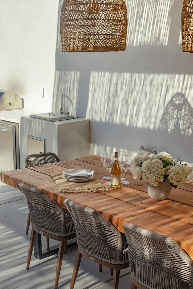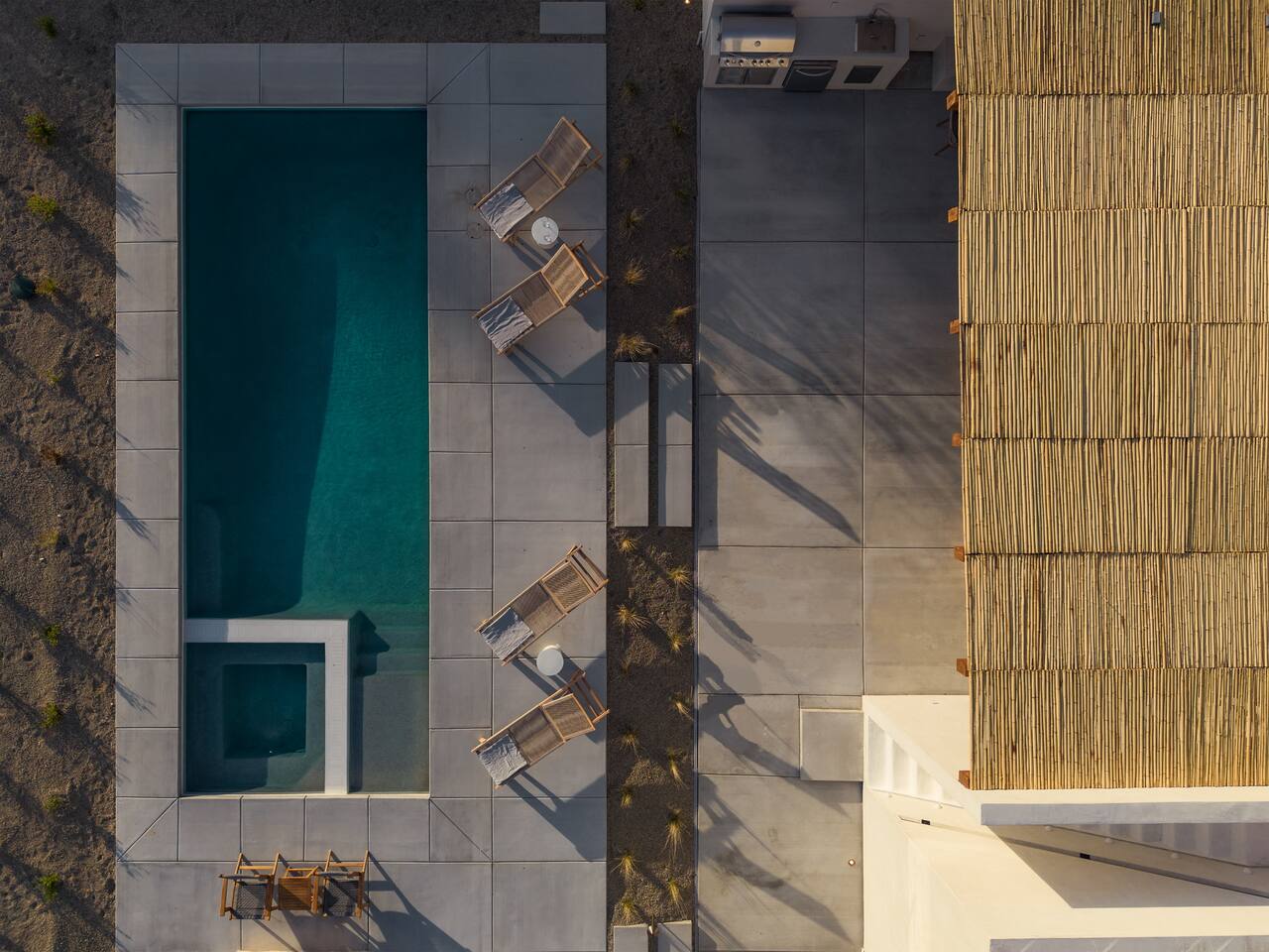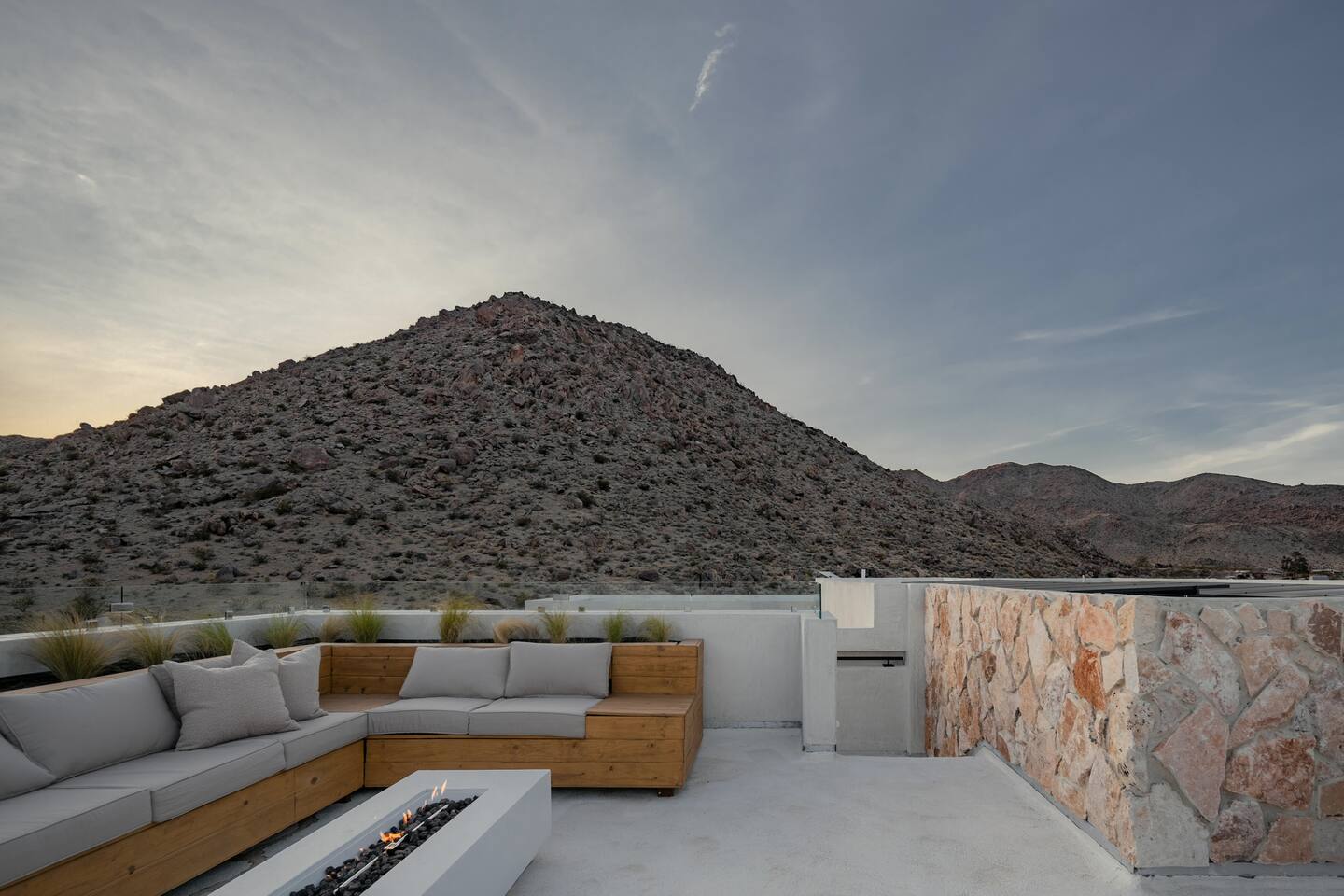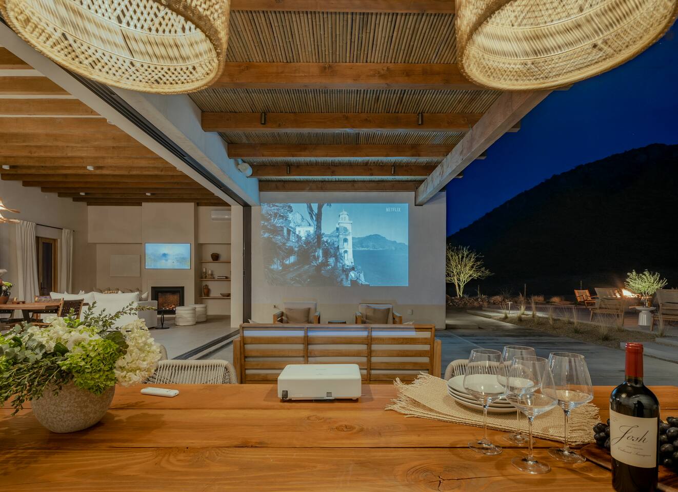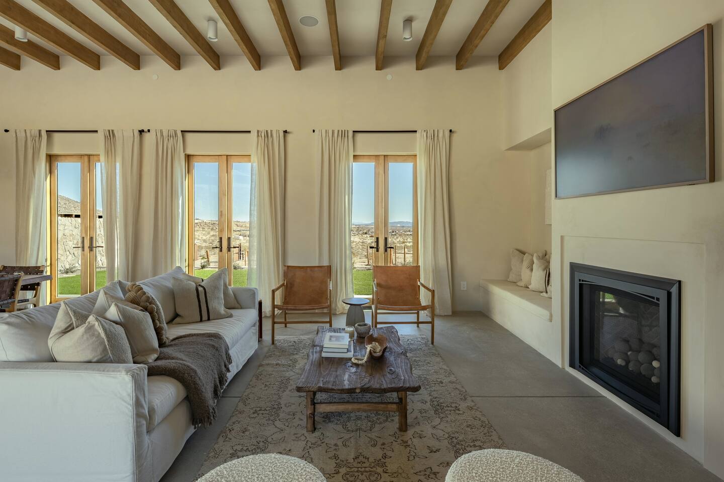Villa Paros is your private 3-acre escape where Mediterranean ease meets high desert beauty. This thoughtfully designed 3-bedroom villa is rooted in the landscape, surrounded by native flora, sculpted with architectural simplicity, and infused with indoor-outdoor flow. Step into the calm: • Heated pool and spa framed by mountain views • Yoga lawn overlooking our private vineyard • Rooftop and poolside fire pits for golden hour rituals • Working vineyard with four Mediterranean varietals, harvested each September for wine • Direct access to scenic Bartlett Mountains hiking trails just behind the property • Outdoor dining, gas grill, and star-studded nights • EV charger Each bedroom is tailored for rest, with plush bedding, TVs, and high-speed WiFi. The entire property is gated and fully fenced for peace of mind and total privacy. Whether you're lounging poolside, exploring nearby trails, or gathering around the fire, Villa Paros offers a stay that’s both grounding and elevated. Experiences: Rooted in the community, we know the desert well and enjoy sharing it with our guests. Here are some unforgettable ways to experience the area. - Immerse yourself in a sound bath at the Integratron or with a local practitioner. - Book an in-home massage with a trusted desert therapist. - Set out on a private guided hike. - Enjoy a custom meal prepared in-home by a private chef. - Move and reset with a personal Yoga or Pilates session. - Discover the night sky on a private stargazing tour under some of California’s darkest skies. - Explore canyons and creeks on a private horseback ride. - Cold plunges and wellness sessions with local experts. We’d love to connect you with our favorite local guides and practitioners.
