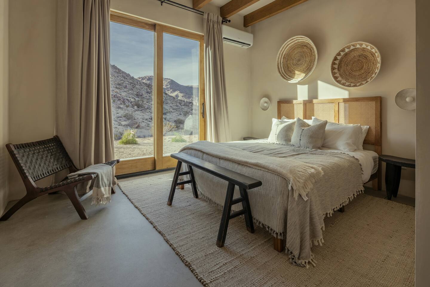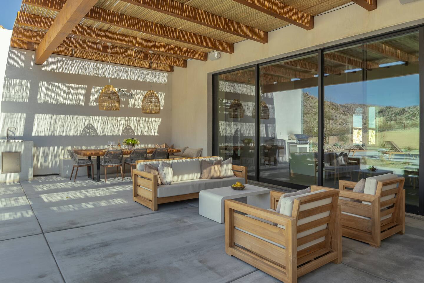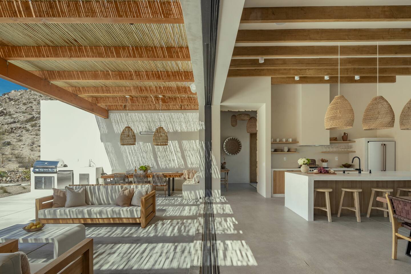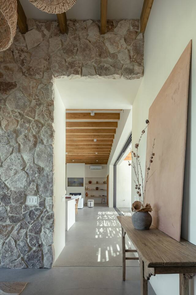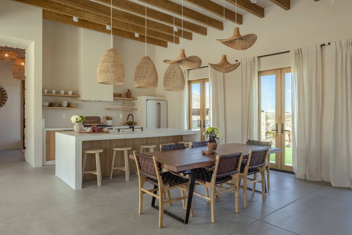 Villa Paros is your private 3-acre escape where Mediterranean ease meets high desert beauty. This thoughtfully designed 3-bedroom villa is rooted in the landscape, surrounded by native flora, sculpted with architectural simplicity, and infused with indoor-outdoor flow. Step into the calm: • Heated pool and spa framed by mountain views • Yoga lawn overlooking our private vineyard • Rooftop and poolside fire pits for golden hour rituals • Working vineyard with four Mediterranean varietals, harvested each September for wine • Direct access to scenic Bartlett Mountains hiking trails just behind the property • Outdoor dining, gas grill, and star-studded nights • EV charger Each bedroom is tailored for rest, with plush bedding, TVs, and high-speed WiFi. The entire property is gated and fully fenced for peace of mind and total privacy. Whether you're lounging poolside, exploring nearby trails, or gathering around the fire, Villa Paros offers a stay that’s both grounding and elevated. Experiences: Rooted in the community, we know the desert well and enjoy sharing it with our guests. Here are some unforgettable ways to experience the area. - Immerse yourself in a sound bath at the Integratron or with a local practitioner. - Book an in-home massage with a trusted desert therapist. - Set out on a private guided hike. - Enjoy a custom meal prepared in-home by a private chef. - Move and reset with a personal Yoga or Pilates session. - Discover the night sky on a private stargazing tour under some of California’s darkest skies. - Explore canyons and creeks on a private horseback ride. - Cold plunges and wellness sessions with local experts. We’d love to connect you with our favorite local guides and practitioners.