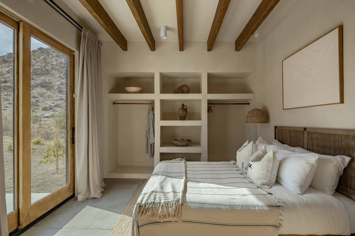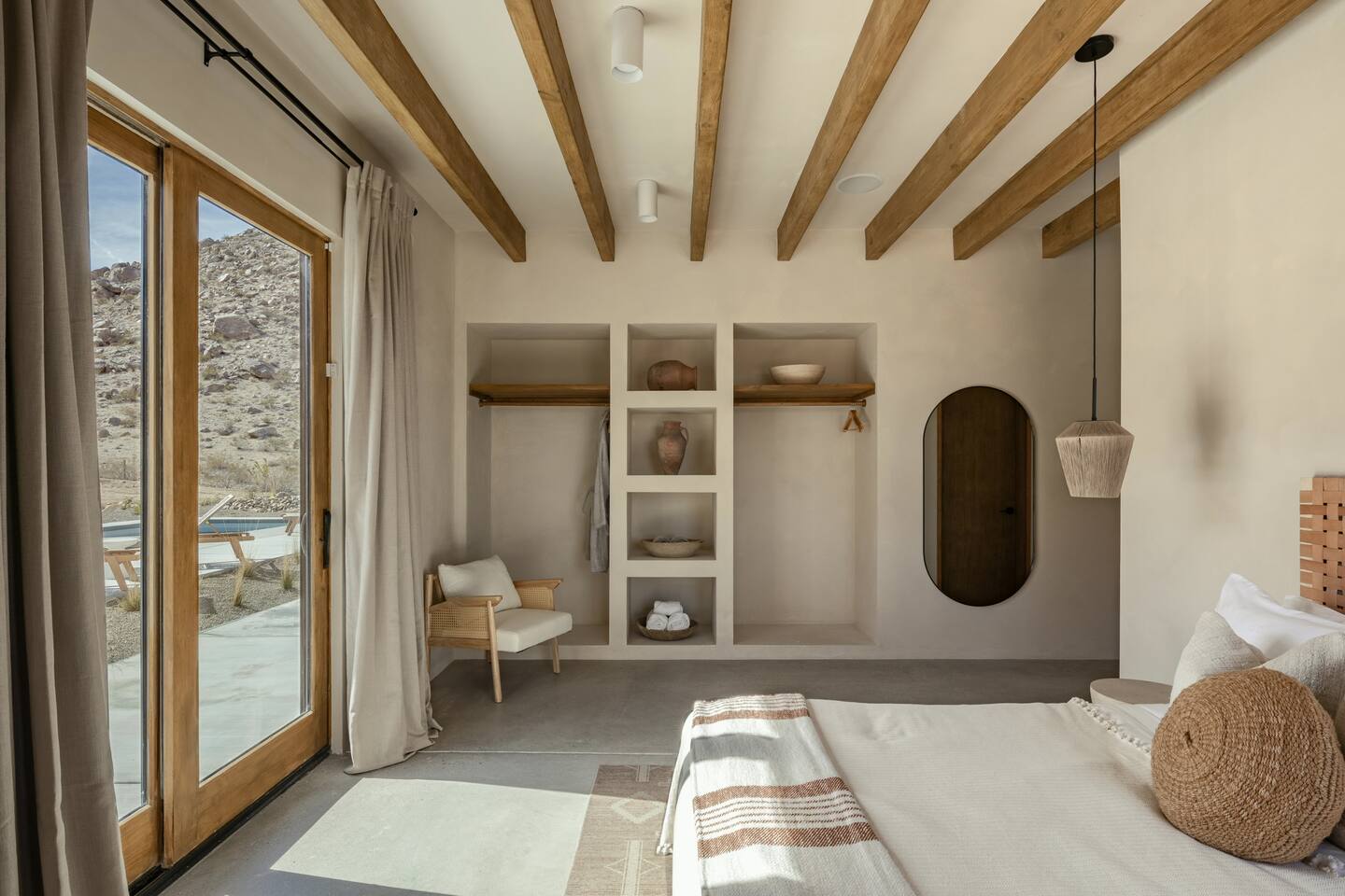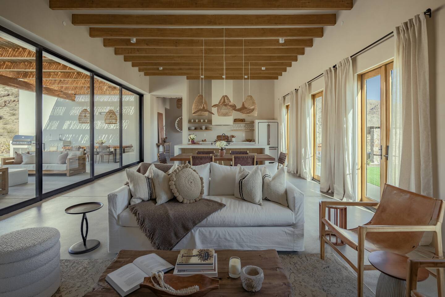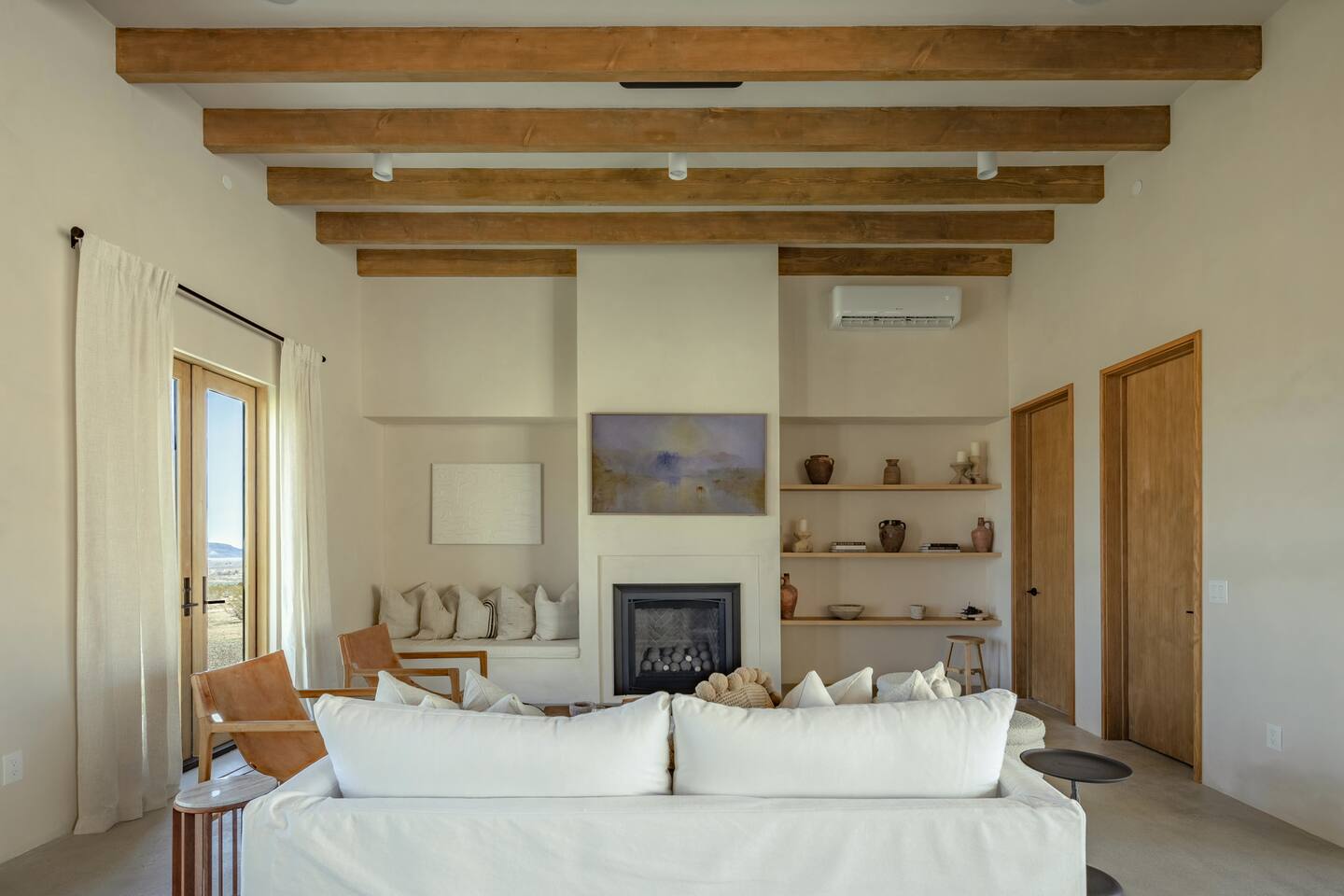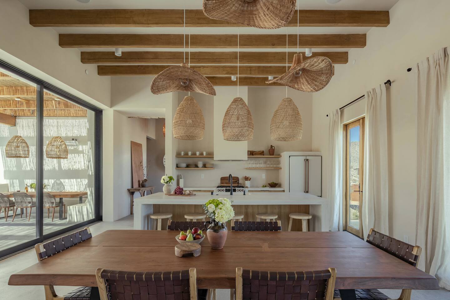 Villa Paros is your private 3-acre escape where Mediterranean ease meets high desert beauty. This thoughtfully designed 3-bedroom villa is rooted in the landscape, surrounded by native flora, sculpted with architectural simplicity, and infused with indoor-outdoor flow. Step into the calm: • Heated pool and spa framed by mountain views • Yoga lawn overlooking our private vineyard • Rooftop and poolside fire pits for golden hour rituals • Working vineyard with four Mediterranean varietals, harvested each September for wine • Direct access to scenic Bartlett Mountains hiking trails just behind the property • Outdoor dining, gas grill, and star-studded nights • EV charger Each bedroom is tailored for rest, with plush bedding, TVs, and high-speed WiFi. The entire property is gated and fully fenced for peace of mind and total privacy. Whether you're lounging poolside, exploring nearby trails, or gathering around the fire, Villa Paros offers a stay that’s both grounding and elevated. Experiences: Rooted in the community, we know the desert well and enjoy sharing it with our guests. Here are some unforgettable ways to experience the area. - Immerse yourself in a sound bath at the Integratron or with a local practitioner. - Book an in-home massage with a trusted desert therapist. - Set out on a private guided hike. - Enjoy a custom meal prepared in-home by a private chef. - Move and reset with a personal Yoga or Pilates session. - Discover the night sky on a private stargazing tour under some of California’s darkest skies. - Explore canyons and creeks on a private horseback ride. - Cold plunges and wellness sessions with local experts. We’d love to connect you with our favorite local guides and practitioners.