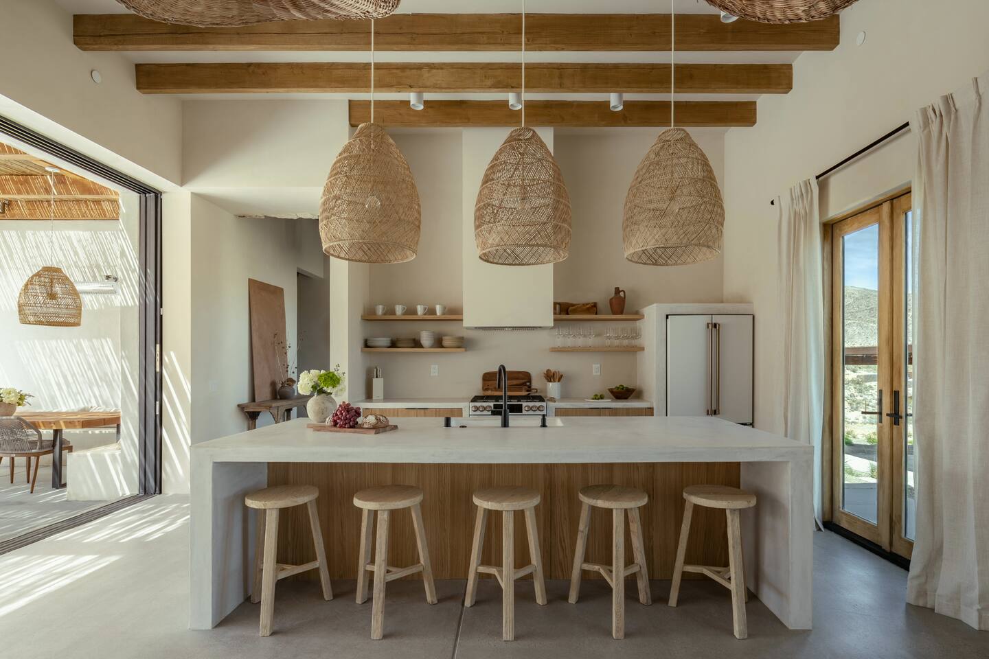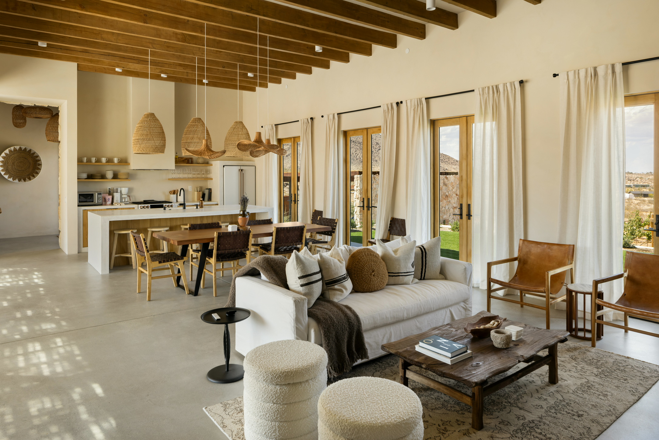 Welcome to Villa Paros, a Mediterranean-inspired escape set on 3 private acres in Joshua Tree. Featured in Architectural Digest, this design-forward 3-bedroom villa offers a private vineyard, saltwater pool and spa, rooftop and poolside fire pits, yoga lawn, EV charger, high-speed Wi-Fi, and access to scenic desert trails. Enjoy sweeping mountain views, open skies, and a thoughtful balance of privacy, nature, and modern comfort.