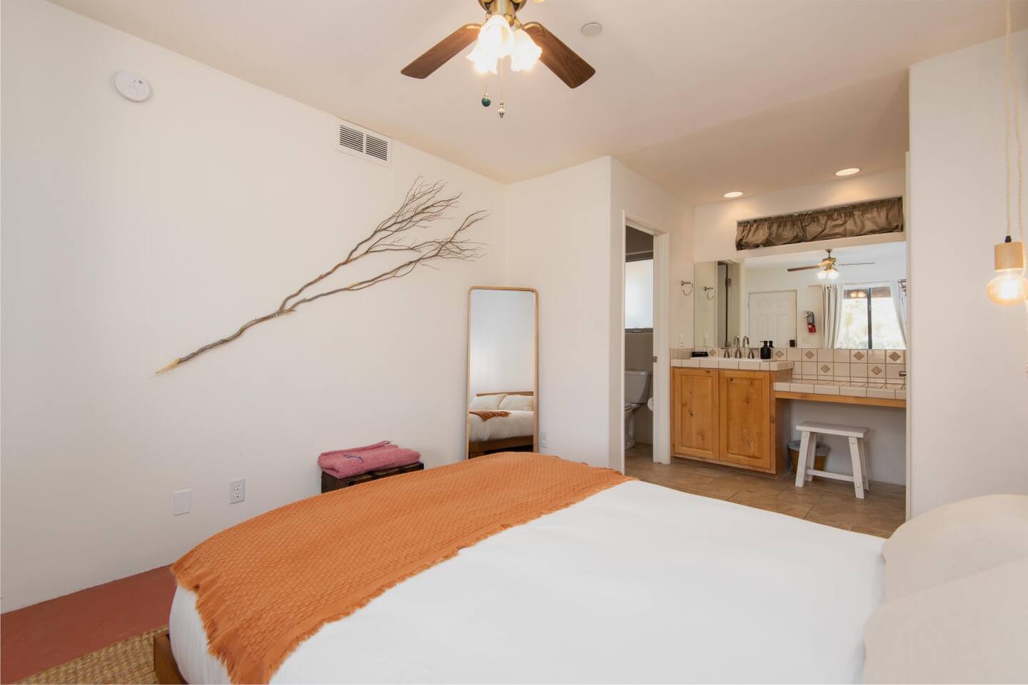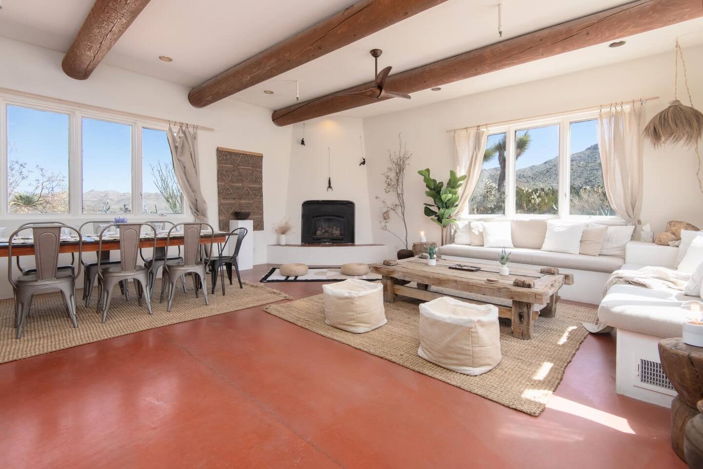 The Desert Lily is a rustic, well-loved retreat set on five acres of open desert in north Joshua Tree. It’s a peaceful, welcoming space where guests can slow down, reconnect, and experience the stillness of the high desert. Room 1 features a private entrance, a queen bed, and its own en-suite bathroom. The space is cozy and bright, designed for travelers who appreciate simple comforts and quiet surroundings. Guests also have shared access to the fully equipped kitchen, dining area, great room with fireplace, outdoor patios, firepit, and pool. Spend your mornings with coffee and desert views, and your evenings stargazing under wide-open skies. Highlights Include: Private entrance with queen bed and bathroom Shared kitchen, dining room, and fireplace Shared pool and firepit Free parking and EV charging (bring adapter if not Tesla) 8 minutes to Joshua Tree National Park entrance 8 minutes to Joshua Tree Village for coffee, shops, and restaurants Rustic, simple, and full of desert warmth. Local Experiences: Make the most of your time here with our favorite local experiences. Sound baths at the Integratron or with a local practitioner Massage, bodywork, or energy sessions at the house Guided desert hikes and nature walks Yoga, Pilates, or breathwork under open skies Private chef dinners and in-home dining Stargazing and astronomy tours Horseback rides through desert trails Cold plunges and wellness sessions with local experts We’d love to connect you with our favorite local guides and practitioners.