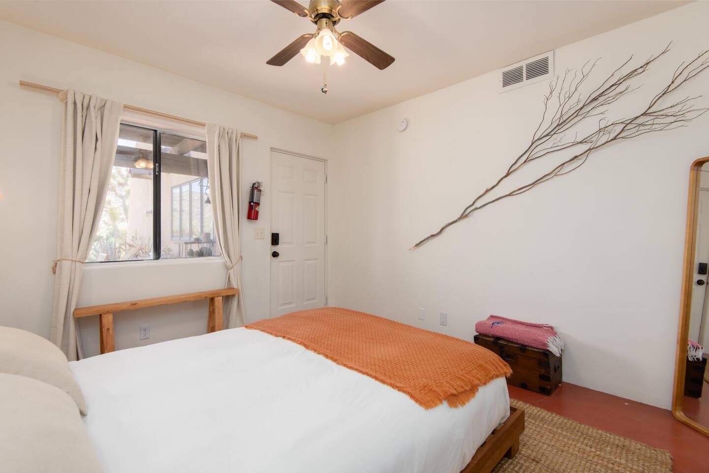 Quiet, rustic, and surrounded by open desert. Room 1 at The Desert Lily is a private guest room in a shared home on five acres, with simple comforts and access to the pool, firepit, and kitchen. With a queen bed, private bathroom, and peaceful setting just 8 minutes from Joshua Tree National Park and the village, it’s an easy, relaxed place to rest and take in the beauty of the high desert.