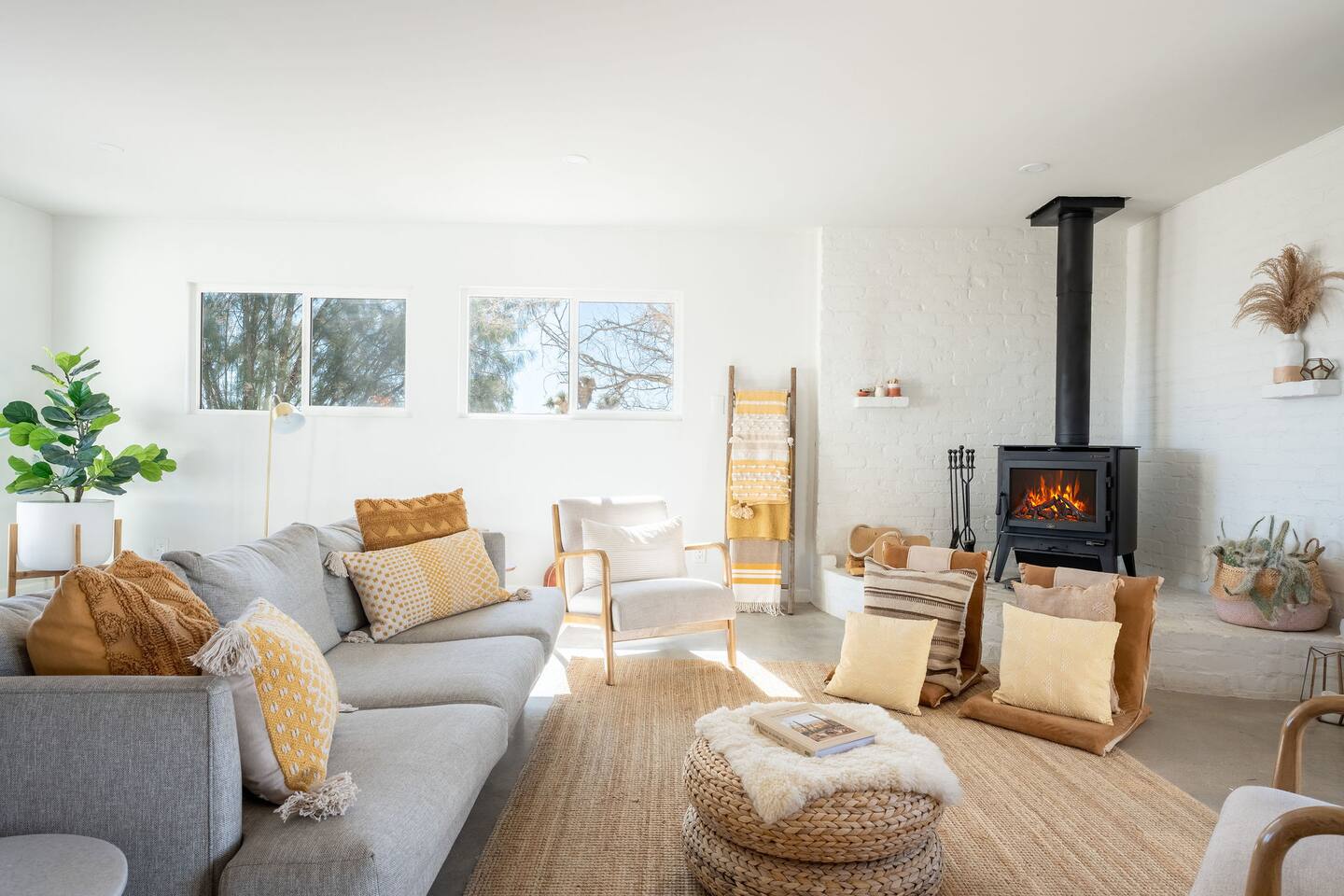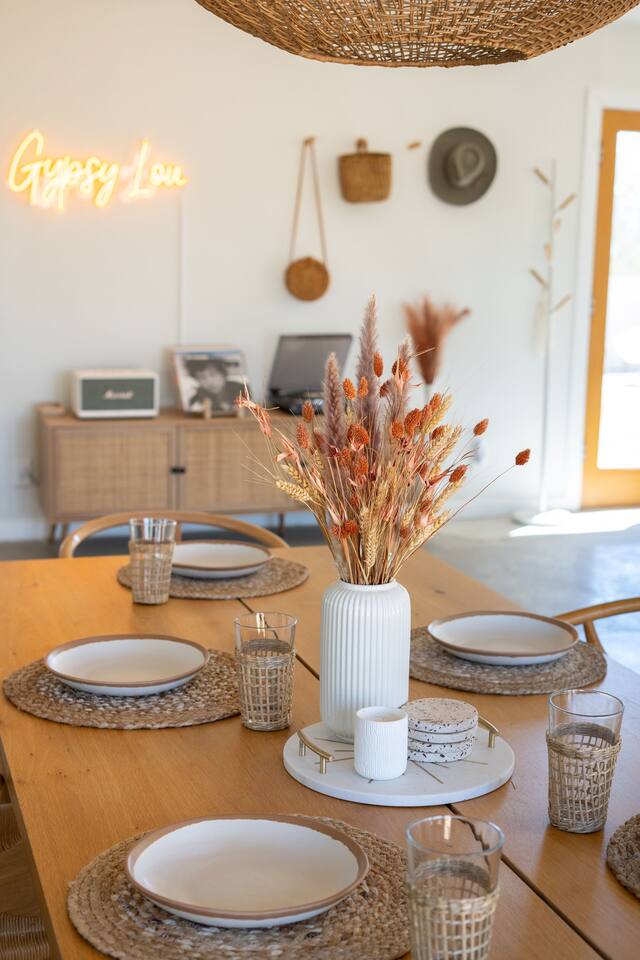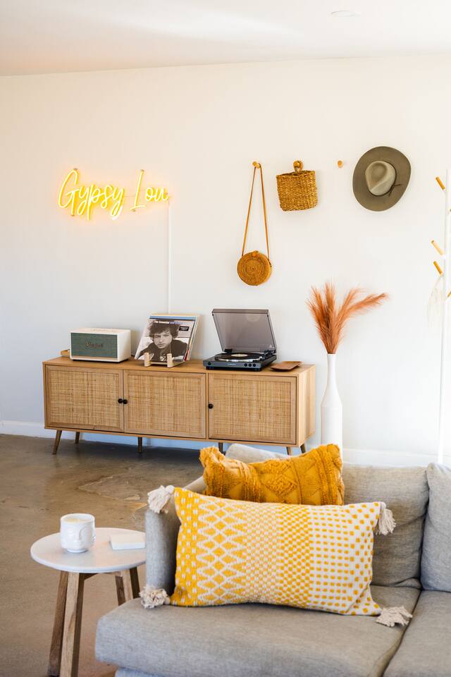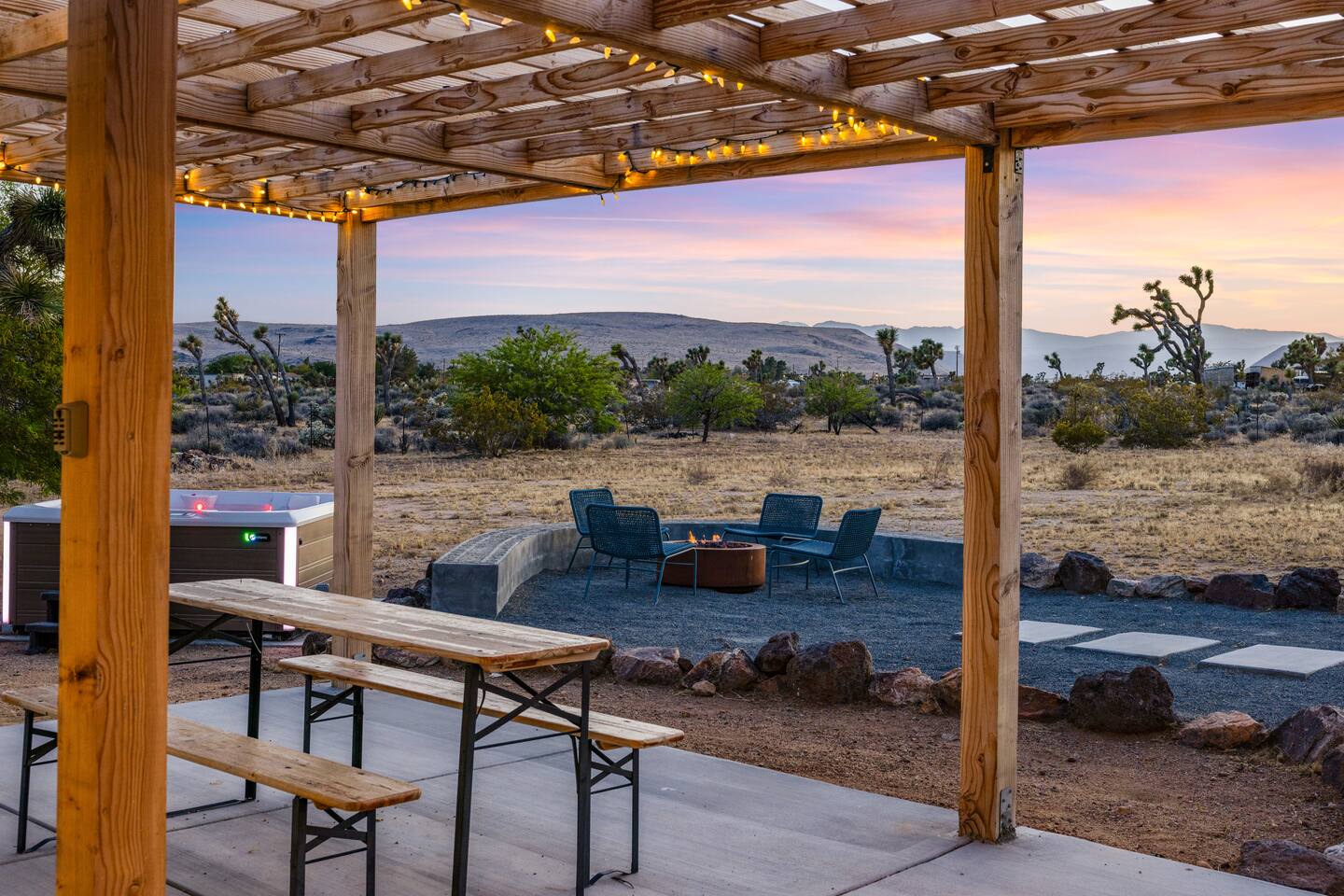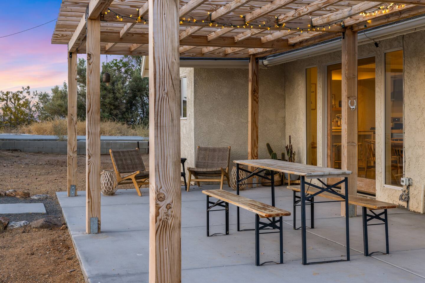 Welcome to Gypsy Lou! Enjoy a cozy indoor fireplace, 3 bedrooms, 2 bathrooms with outdoor lounging chairs, cowboy pool and hot tub! Each room has been thoughtfully decorated with small details that add to the overall charm & character of the space. Relax in the luxurious indoor tub soaking in the warm water, overlooking the stunning desert views outside, and feeling completely relaxed & rejuvenated, whether you're looking to barbecue with friends or simply relax in the hot tub under the stars.