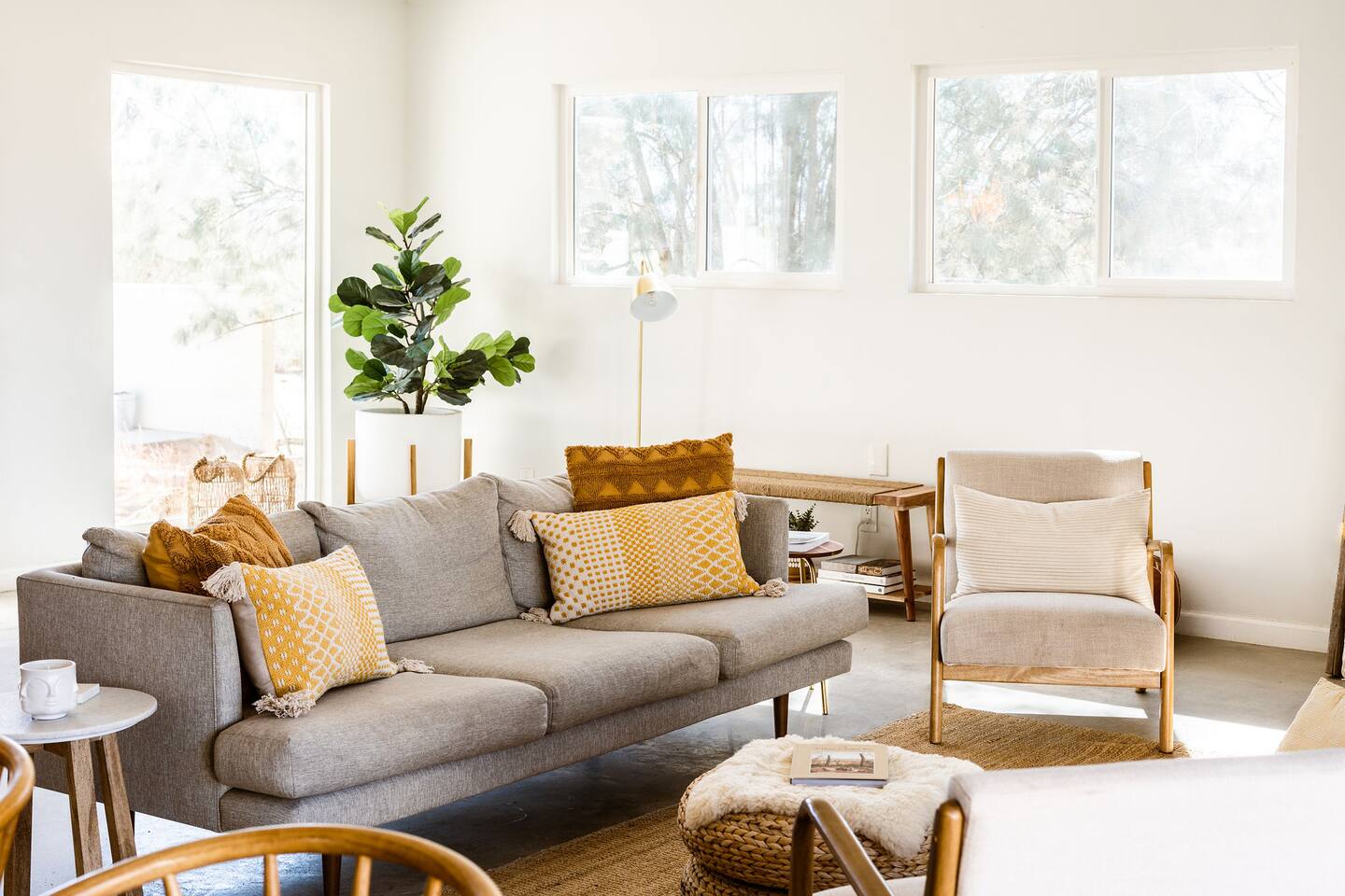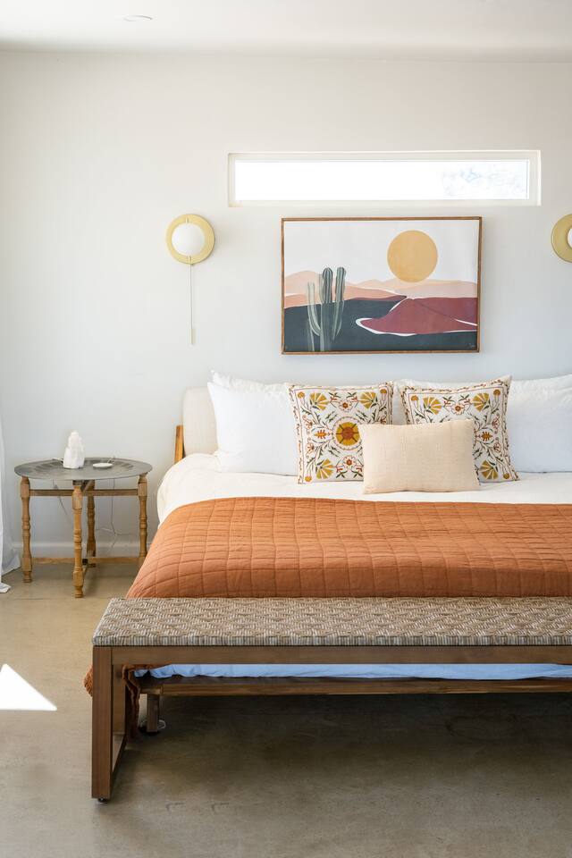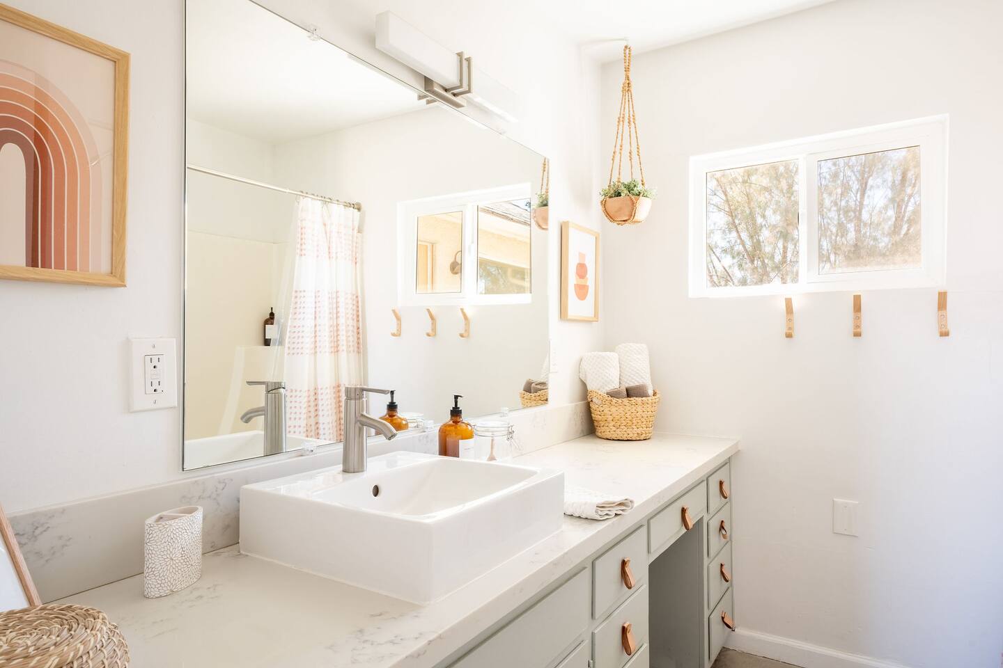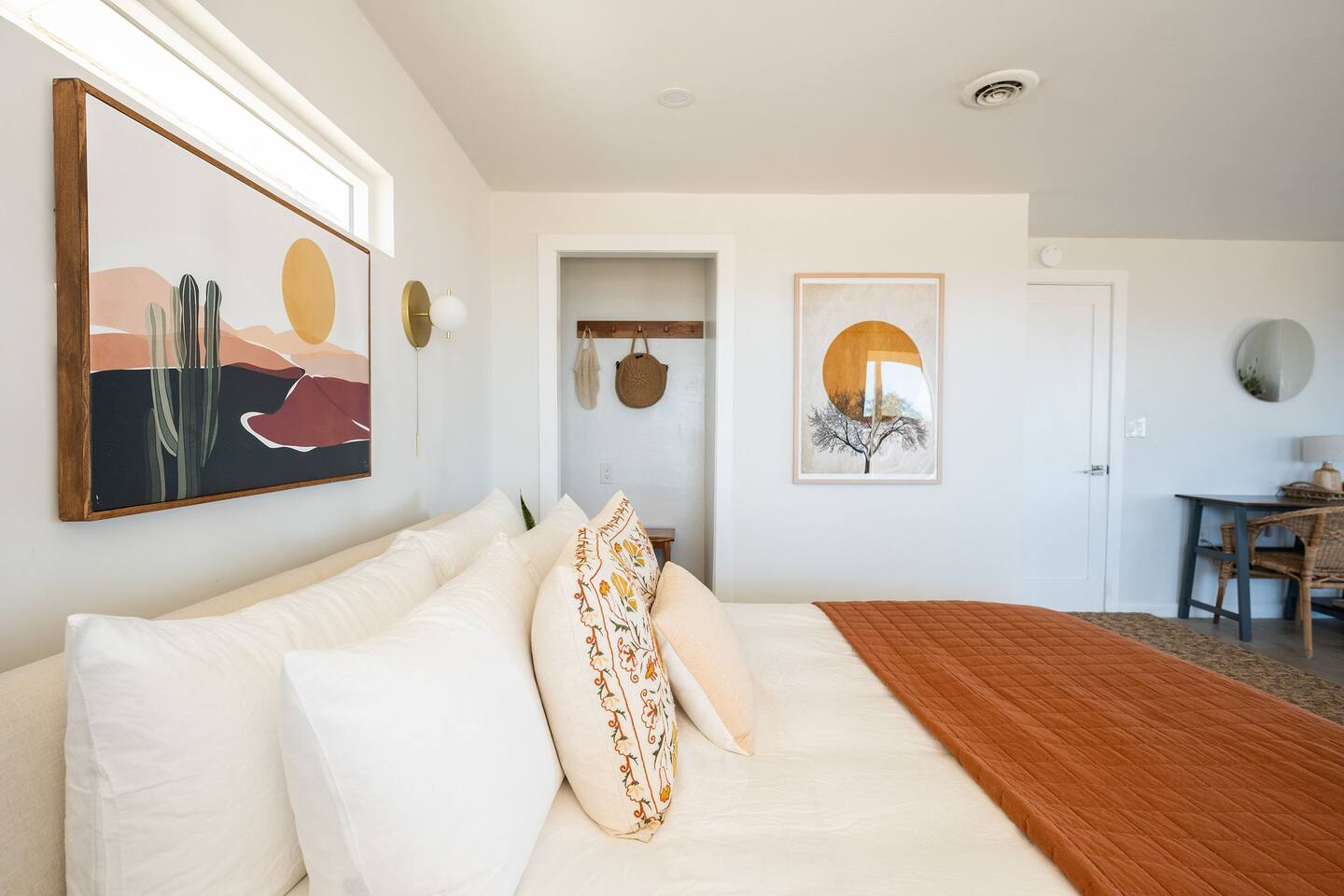 Welcome to Gypsy Lou! Enjoy a cozy indoor fireplace, 3 bedrooms, 2 bathrooms with outdoor lounging chairs, cowboy pool and hot tub! Each room has been thoughtfully decorated with small details that add to the overall charm & character of the space. Relax in the luxurious indoor tub soaking in the warm water, overlooking the stunning desert views outside, and feeling completely relaxed & rejuvenated, whether you're looking to barbecue with friends or simply relax in the hot tub under the stars.