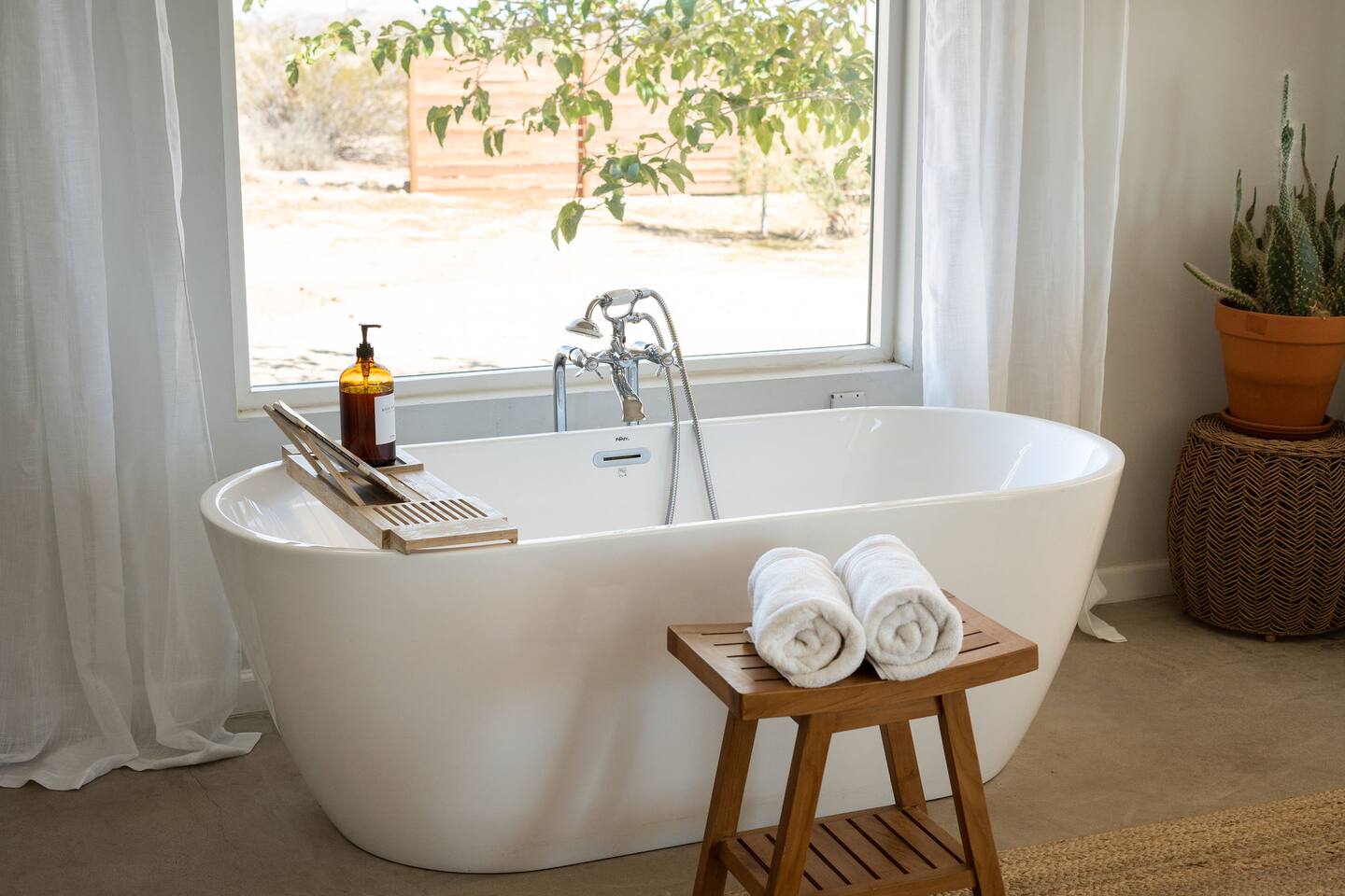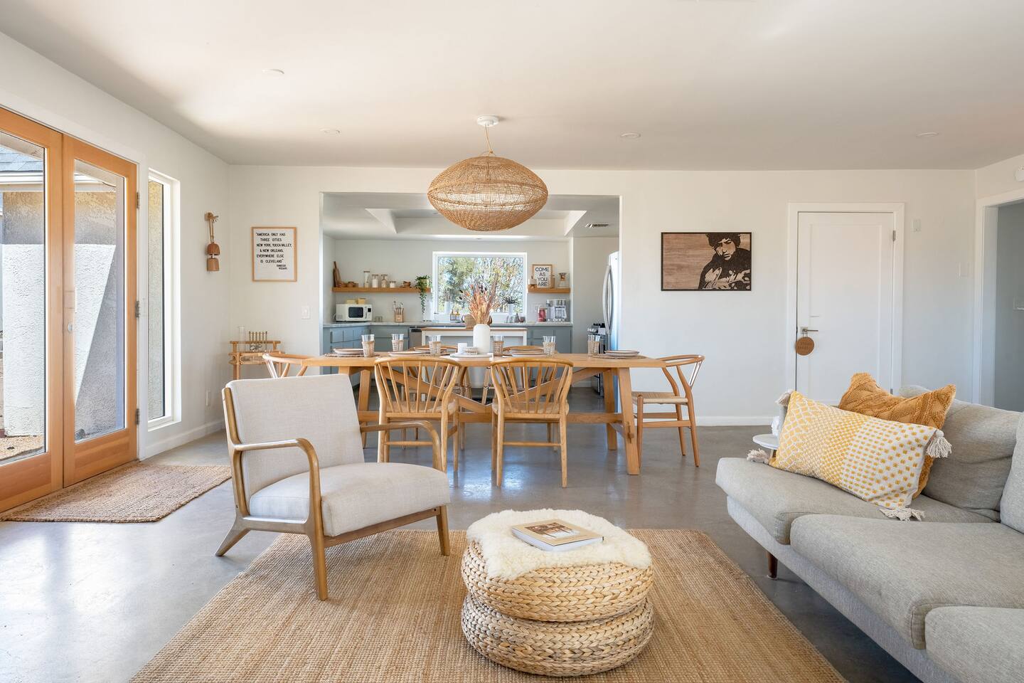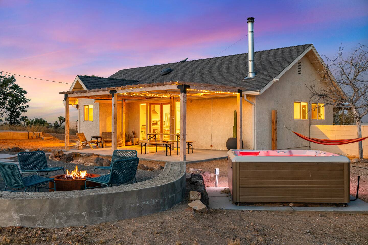Highlights include: ★ Luxurious Soaking Tub With Endless Outdoor Desert Views ★ Large Backyard With Patio Area, BBQ, and Outdoor Dining Area ★ Cowboy pool (open year round) ★ Hot tub for soaking under the stars ★ Well-designed Interiors With Many Thoughtful Details ★ Spacious Three Bedrooms and Two Bathrooms House ★ Cozy Indoor Fireplace ★ Fully-equipped Kitchen With Modern Appliances ★ Bedroom Swinging Chair ★ High-Speed Wi-Fi ★ Smart TV with Online Streaming Services Great Location: 6 mins to the Giant Rock Meeting Room 7 mins to La Copine 14 mins to Joshua Tree National Park Visitors Center 14 mins to The Integratron 16 mins to Pappy & Harriet's 16 mins to Pioneertown Mountains Preserve 50 mins to Palm Springs airport Escape to this charming 3-bedroom house in Yucca Valley, the perfect retreat for friends, families, and couples. Relax and unwind in the luxurious soaking tub with a view, taking in the breathtaking surroundings. The large backyard is perfect for gatherings, with a BBQ and cowboy pool for endless fun in the sun. After a day of adventuring, soothe your muscles in the hot tub or cozy up by the indoor fireplace for a cozy evening. The fully-equipped kitchen allows you to prepare delicious meals, and the bedroom swinging chair adds a touch of whimsy. Stay connected with high-speed Wi-Fi and enjoy your favorite shows on the smart TV. This house has everything you need for a memorable and enjoyable stay. AREA ACTIVITIES: Locally hosted by Jenn, an East Coast transplant, who loves living in the desert and sharing this area with guests. If you need a recommendation or help during your stay, Jenn will be available and happy to help. - Go to a sound bath at Integratron or with one of our local practitioners. - Get an in-home massage by one of our awesome, local massage therapists. - Go on a private, guided hike - a favorite activity for guests! - Get a private Yoga or Pilates session. - Go on a star gazing tour - another favorite! - Go on a private horseback ride and explore canyons, creeks, and desert wildlife. Ready to book? Grab your dates now (before someone else does)! Not ready to decide? Please save our listing ♡ so you can come back when you're ready.