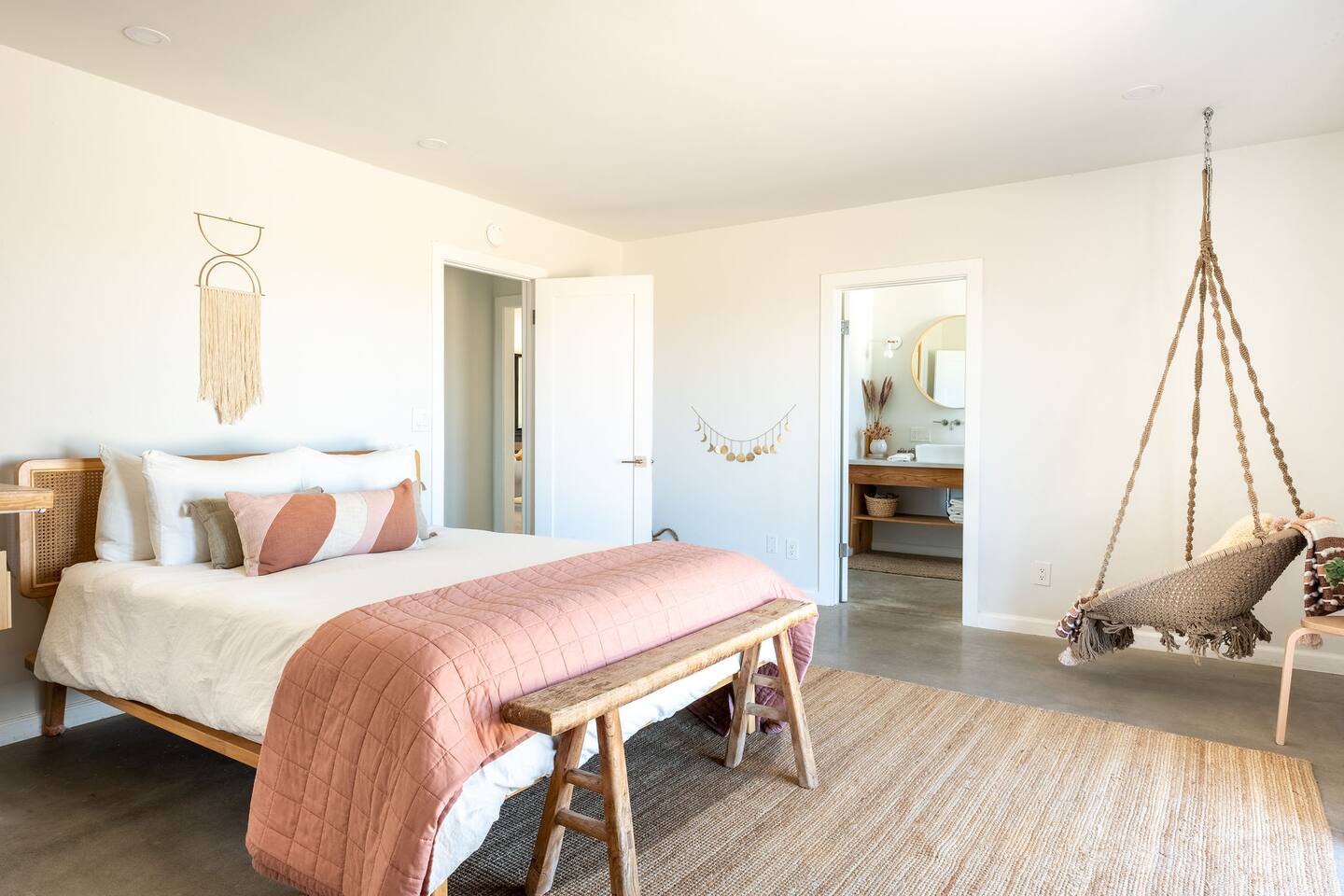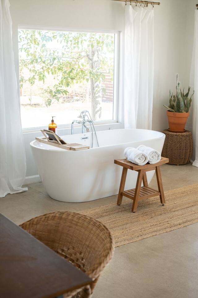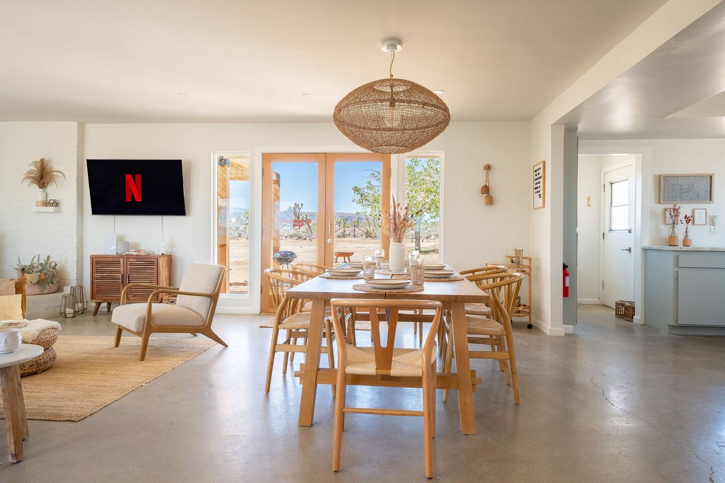 Highlights include: ★ Luxurious Soaking Tub With Endless Outdoor Desert Views ★ Large Backyard With Patio Area, BBQ, and Outdoor Dining Area ★ Cowboy pool (open year round) ★ Hot tub for soaking under the stars ★ Well-designed Interiors With Many Thoughtful Details ★ Spacious Three Bedrooms and Two Bathrooms House ★ Cozy Indoor Fireplace ★ Fully-equipped Kitchen With Modern Appliances ★ Bedroom Swinging Chair ★ High-Speed Wi-Fi ★ Smart TV with Online Streaming Services Great Location: 6 mins to the Giant Rock Meeting Room 7 mins to La Copine 14 mins to Joshua Tree National Park Visitors Center 14 mins to The Integratron 16 mins to Pappy & Harriet's 16 mins to Pioneertown Mountains Preserve 50 mins to Palm Springs airport Escape to this charming 3-bedroom house in Yucca Valley, the perfect retreat for friends, families, and couples. Relax and unwind in the luxurious soaking tub with a view, taking in the breathtaking surroundings. The large backyard is perfect for gatherings, with a BBQ and cowboy pool for endless fun in the sun. After a day of adventuring, soothe your muscles in the hot tub or cozy up by the indoor fireplace for a cozy evening. The fully-equipped kitchen allows you to prepare delicious meals, and the bedroom swinging chair adds a touch of whimsy. Stay connected with high-speed Wi-Fi and enjoy your favorite shows on the smart TV. This house has everything you need for a memorable and enjoyable stay. AREA ACTIVITIES: Locally hosted by Jenn, an East Coast transplant, who loves living in the desert and sharing this area with guests. If you need a recommendation or help during your stay, Jenn will be available and happy to help. - Go to a sound bath at Integratron or with one of our local practitioners. - Get an in-home massage by one of our awesome, local massage therapists. - Go on a private, guided hike - a favorite activity for guests! - Get a private Yoga or Pilates session. - Go on a star gazing tour - another favorite! - Go on a private horseback ride and explore canyons, creeks, and desert wildlife. Ready to book? Grab your dates now (before someone else does)! Not ready to decide? Please save our listing ♡ so you can come back when you're ready.