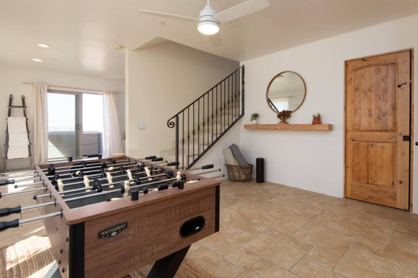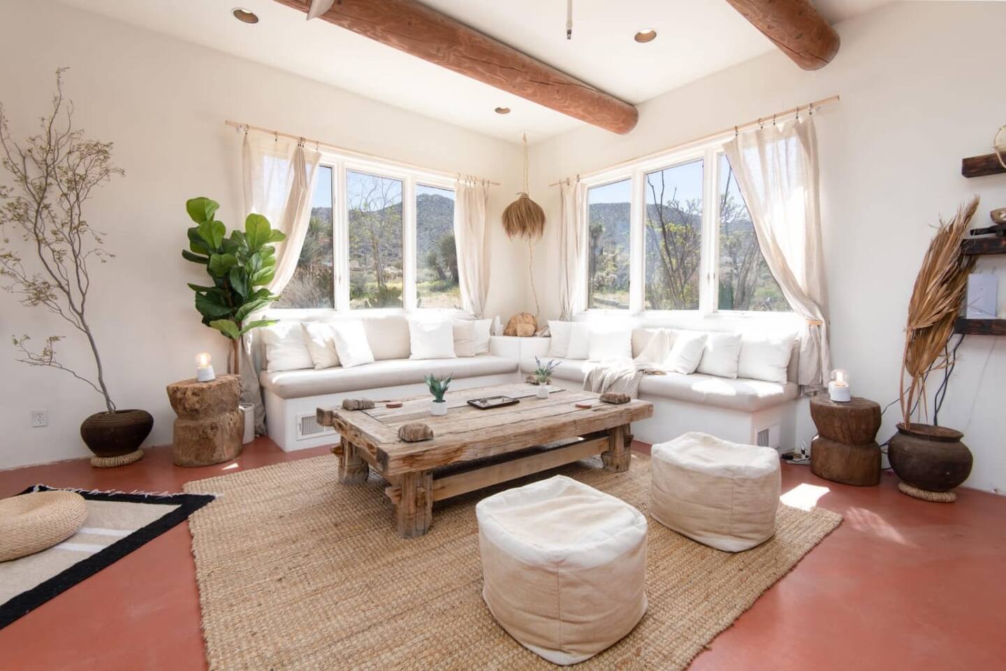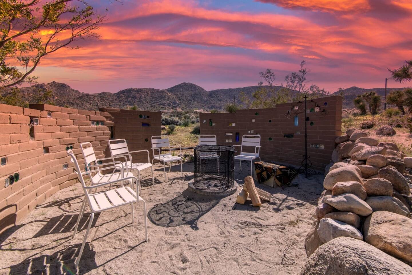 Experience the quiet magic of the high desert at The Desert Lily. Surrounded by a handcrafted adobe and bottle wall, this property blends organic charm with soulful simplicity. Whether you’re watching the sunrise from a hammock, soaking under the stars, or gathering in the Great Room for a shared meal, every corner invites you to slow down and reconnect with the desert. Inside the main house, you’ll find comfortable spaces for cooking, dining, and relaxing together. The Great Room is the heart of the home, featuring a cozy lounge, fireplace, and a long dining table made from the original homestead wood. Accommodations include: Sunrise Suite: Two upstairs bedrooms (each with a queen bed), one shared bathroom, and a private living room with foosball table, hot tub, and hammocks. Three Lodge Rooms: Each with its own entrance, queen bed, private bathroom, and desert-inspired decor. Homestead Cabin: A separate rustic cabin near the pool with a kitchenette, bathroom, and living area—ideal for a couple or solo guest seeking extra privacy. Outdoors, enjoy a pool with sweeping desert views, a firepit surrounded by bottle walls, hammocks, and shaded patios for lounging. Highlights Private 5-acre compound with 6 bedrooms, 6 bathrooms Pool, hot tub, and firepit Fully equipped kitchen and large Great Room for group gatherings Free parking and EV charging (bring adapter if not Tesla) Pet-friendly (dogs only, $95 fee) 8 minutes to Joshua Tree National Park entrance 8 minutes to Joshua Tree Village for coffee, shops, and restaurants Rustic, peaceful, and full of desert soul—perfect for groups who value space, character, and connection. Local Experiences Make the most of your time here with our favorite local experiences. Sound baths at the Integratron or with a local practitioner Massage, bodywork, or energy sessions at the house Guided desert hikes and nature walks Yoga, Pilates, or breathwork under open skies Private chef dinners and in-home dining Stargazing and astronomy tours Horseback rides through desert trails Cold plunges and wellness sessions with local experts We’d love to connect you with our favorite local guides and practitioners.