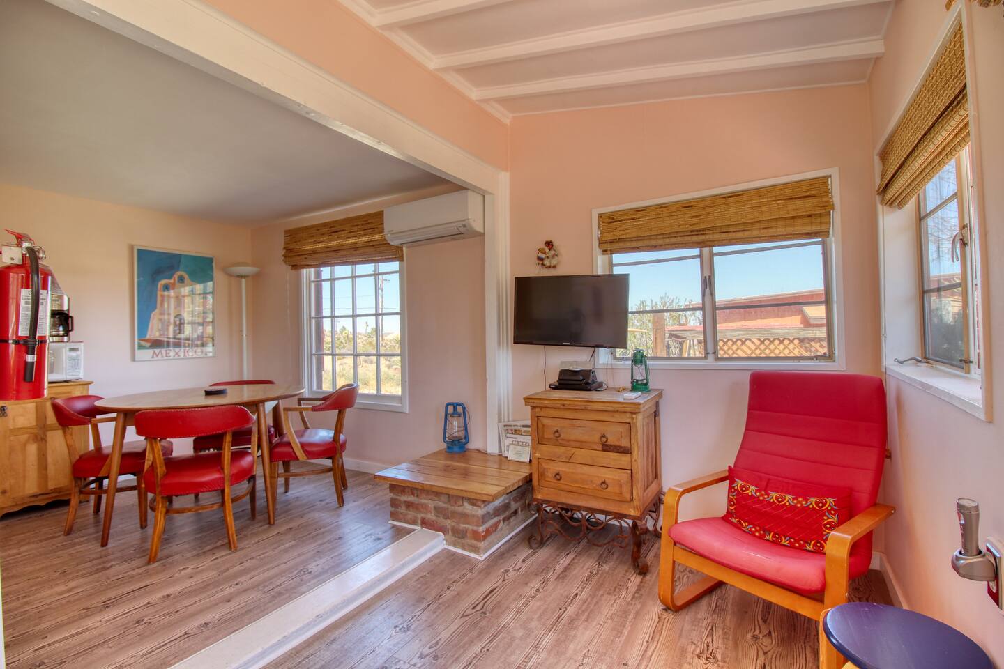 Pool and spa heating is available for an additional fee, as propane is very costly in the desert. Please inquire before booking if you’d like the pool or spa heated. The spa heating is $75 for 4 hours. Pool heating is $250 per day. This covers the actual cost of the fuel needed to heat it. Note: Heating cannot be guaranteed, and we’re unable to offer discounts if the heater isn’t working during your stay. The hot tub next to the house is heated and included with your booking. Pets: Up to two dogs allowed ($95 fee). No cats. Quiet hours: 9 PM to 8 AM Parties and events are not allowed Smoking only permitted outdoors No washer or dryer on-site (laundromat available in town) Wildlife You may spot rabbits, roadrunners, lizards, coyotes, and other desert creatures. The desert is peaceful but alive with nature. Keep doors closed and food sealed, and enjoy the quiet beauty of this high-desert landscape.