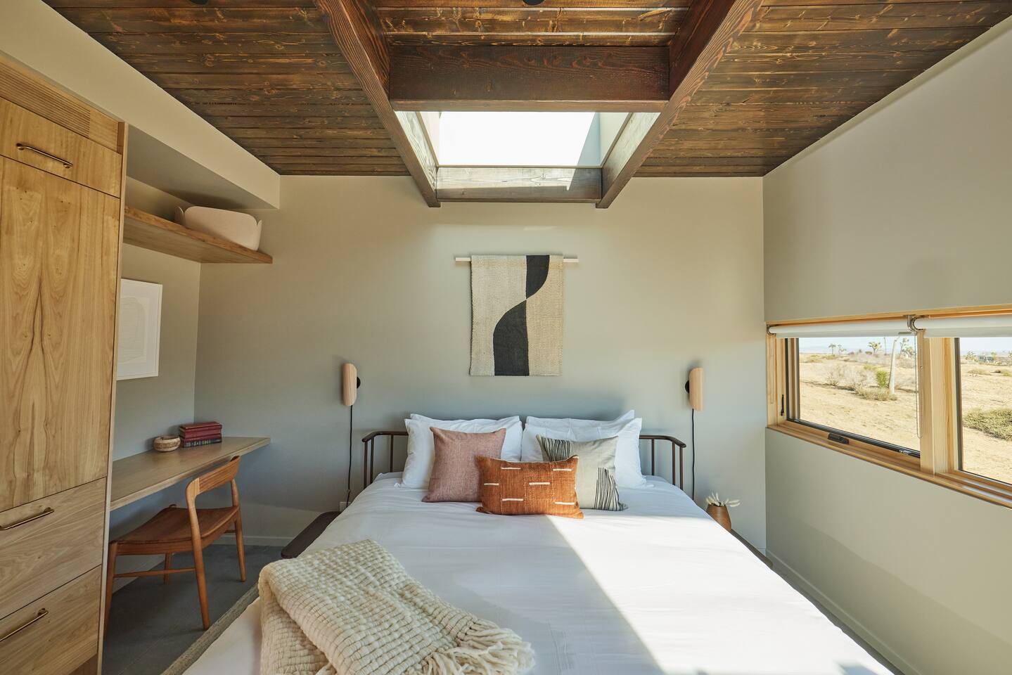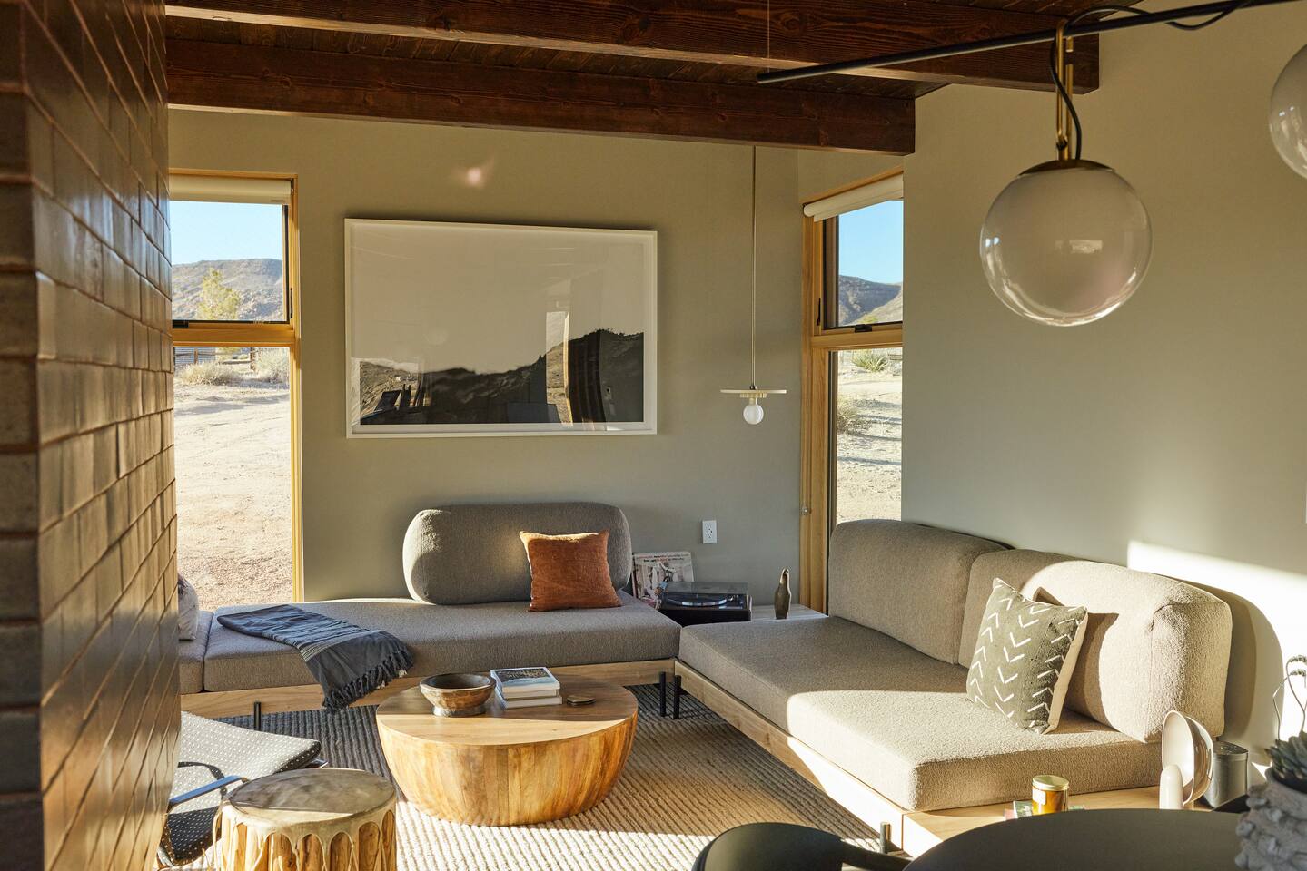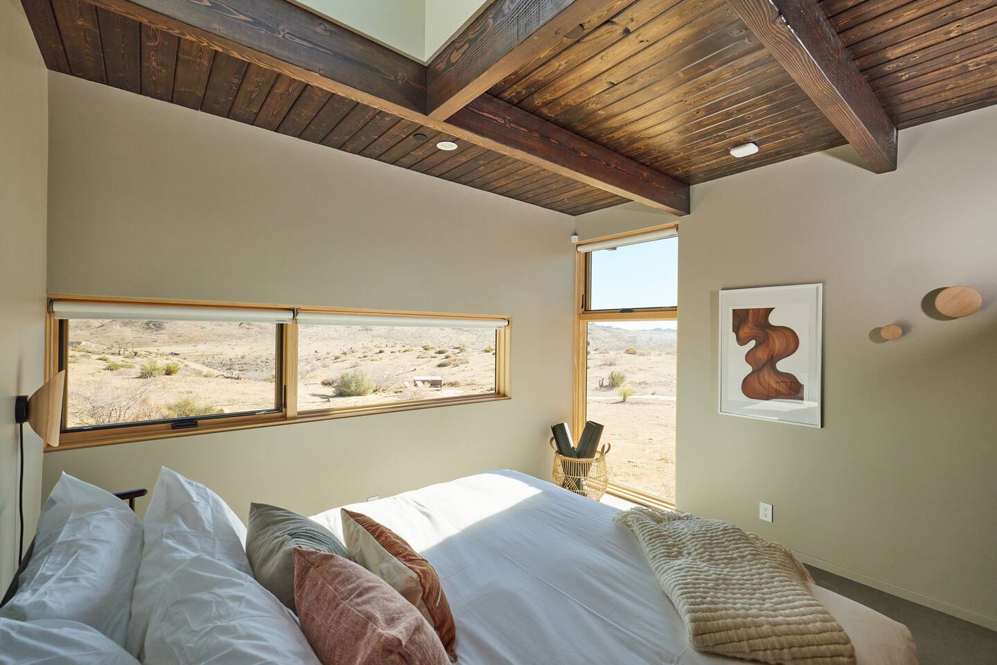 Secluded yet close to everything: 5 minutes ➔ La Copine 12 minutes ➔ Pappy & Harriet’s 15 minutes ➔ Frontier Cafe and Old Town Yucca Valley 15 minutes ➔ Integratron 16 minutes ➔ Joshua Tree National Park Visitors Center 45 minutes ➔ Palm Springs Please note: The map on Airbnb shows the general location of Pioneertown and not the location of the cabin. We are a 12 minute drive to the town of Pioneertown. The Ocotillo is private but our sister cabin, The Yucca, is on the same 5 acre property. Highlights include: - 1 bedroom with comfy King bed. Sleeps up to 2 guests. - Skylight over the bed for stargazing. - Off-grid with solar power. - Amazing views in all directions. - Zero light pollution. - Gas fire pit and grill. - Outdoor dining and seating area. - Gas fireplace for cozy night. - Pet friendly for up to 1 well behaved pup. - Open floor plan kitchen, dining and living area. - Coffee with pour over maker ready to start your day. Please note: This cabin is 100% off grid and uses solar power with a generator as a back up. This means it's best to conserve as much power as you can once the sun goes down. If the battery runs below 25% the generator will kick on, but please be aware, it's loud, so it's better to avoid needing it. There is a tablet in the cabin where you can monitor the battery level. -- Owned by Tyler & Brandy, a husband and wife team who work together to renovate and develop projects with a modern look and feel. Together, they work alongside their realtors, architecture team, GCs, and interior designers to create truly special properties. Tyler specializes in finding and funding the deal, as well as coordinates planning and acquiring them while Brandy project manages and handles finishing out each property. They have completed five projects, two in Brooklyn, two in Los Angeles and now here in Joshua Tree. With their family, you can find them checking out potential deals, hiking, biking and having dinner parties. -- The project was brought to life with Duane Founder and Principle Designer at Hundred Mile House. Duane studied sustainable architecture at the Bauhaus in Dessau. He has completed design-build residential and retail projects throughout the United States and Canada and has been featured in numerous global design and architecture magazines, books and editorials. Duane’s work is highly sensitive to sustainability and environmental best practices. -- Locally hosted by Jenn, an East Coast transplant, who loves living in the desert and sharing this area with guests. If you need a recommendation or help during your stay, Jenn will be available and happy to help. Some fun things to do while in the area: - Go to a sound bath at Integratron or with one of our local practitioners. - Get an in-home massage by one of our awesome, local massage therapists. - Go on a private, guided hike - a favorite activity for guests! - Have a meal prepared by a local private chef. - Get a private Yoga or Pilates session. - Go on a star gazing tour with Sky Watcher Tours - another favorite! - Go on a private horseback ride and explore canyons, creeks, and desert wildlife. Ready to book? Grab your dates now (before someone else does)! Not ready to decide? Please save our listing ♡ so you can come back when you're ready.