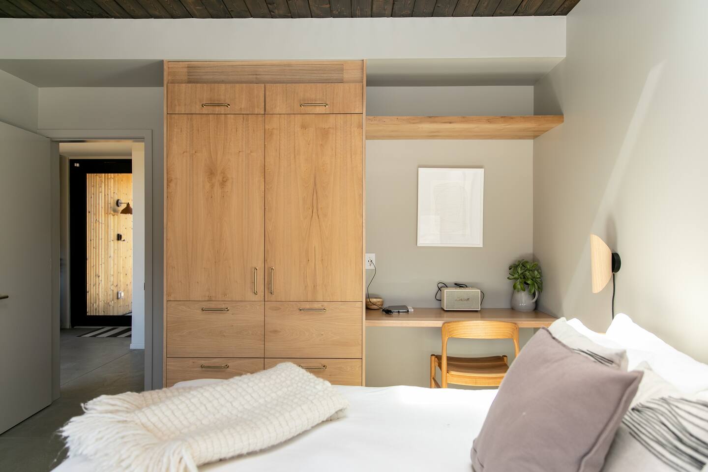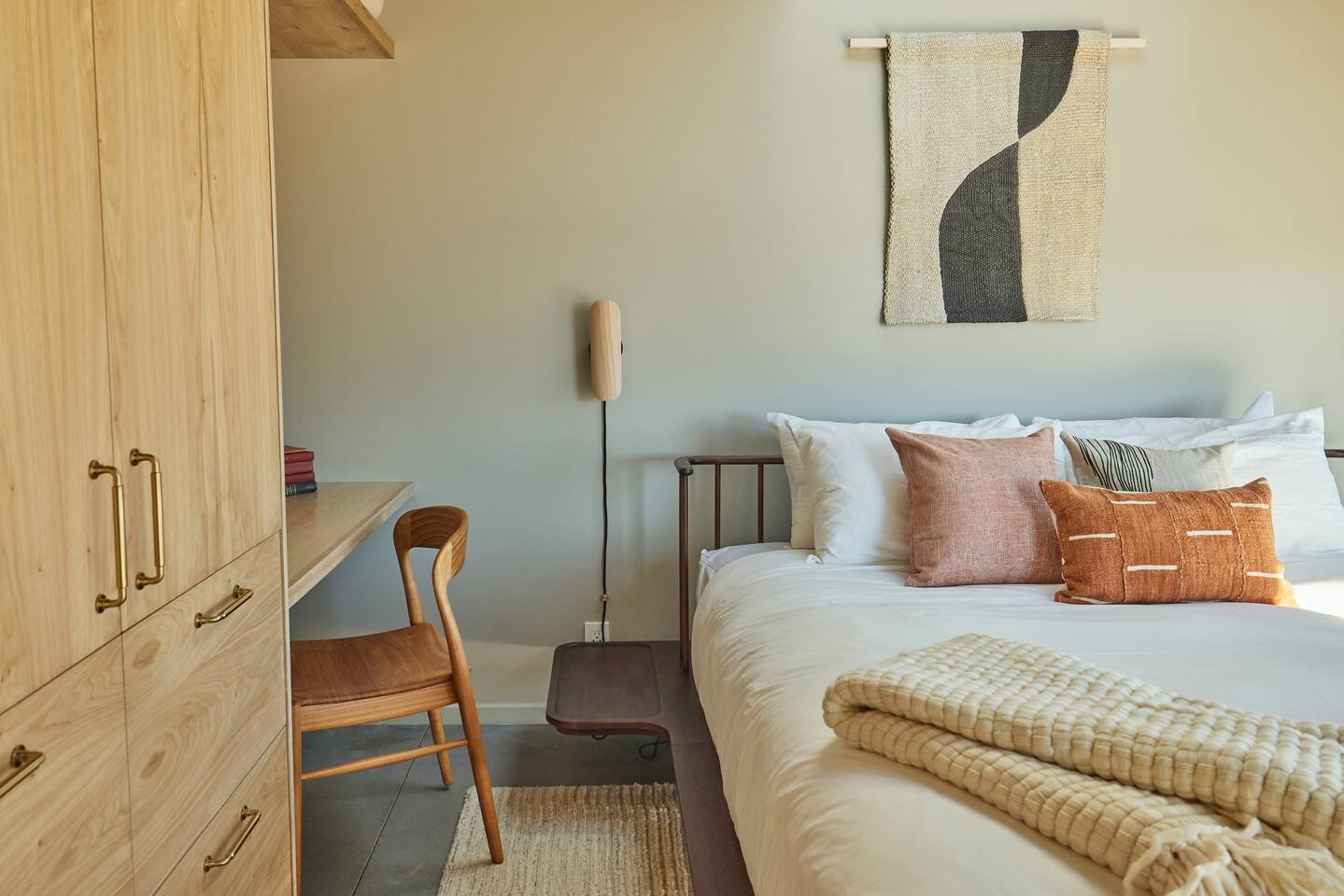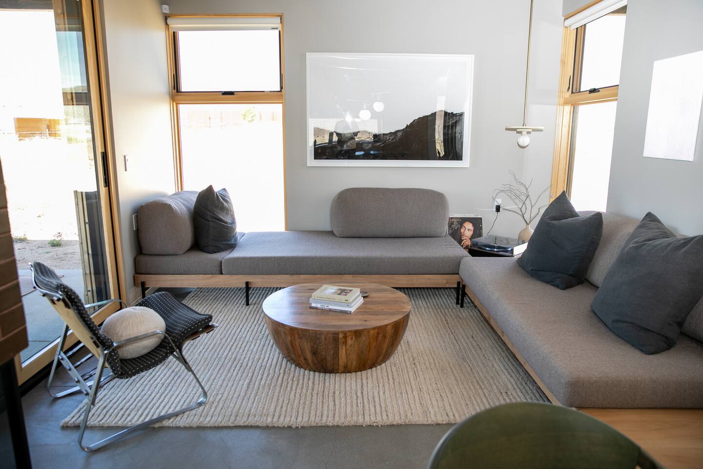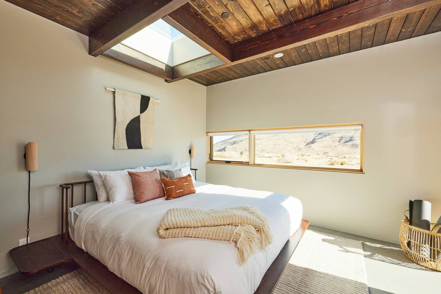 Secluded yet close to everything: 5 minutes ➔ La Copine 12 minutes ➔ Pappy & Harriet’s 15 minutes ➔ Frontier Cafe and Old Town Yucca Valley 15 minutes ➔ Integratron 16 minutes ➔ Joshua Tree National Park Visitors Center 45 minutes ➔ Palm Springs Please note: The map on Airbnb shows the general location of Pioneertown and not the location of the cabin. We are a 12 minute drive to the town of Pioneertown. The Ocotillo is private but our sister cabin, The Yucca, is on the same 5 acre property. Highlights include: - 1 bedroom with comfy King bed. Sleeps up to 2 guests. - Skylight over the bed for stargazing. - Off-grid with solar power. - Amazing views in all directions. - Zero light pollution. - Gas fire pit and grill. - Outdoor dining and seating area. - Gas fireplace for cozy night. - Pet friendly for up to 1 well behaved pup. - Open floor plan kitchen, dining and living area. - Coffee with pour over maker ready to start your day. Please note: This cabin is 100% off grid and uses solar power with a generator as a back up. This means it's best to conserve as much power as you can once the sun goes down. If the battery runs below 25% the generator will kick on, but please be aware, it's loud, so it's better to avoid needing it. There is a tablet in the cabin where you can monitor the battery level. -- Owned by Tyler & Brandy, a husband and wife team who work together to renovate and develop projects with a modern look and feel. Together, they work alongside their realtors, architecture team, GCs, and interior designers to create truly special properties. Tyler specializes in finding and funding the deal, as well as coordinates planning and acquiring them while Brandy project manages and handles finishing out each property. They have completed five projects, two in Brooklyn, two in Los Angeles and now here in Joshua Tree. With their family, you can find them checking out potential deals, hiking, biking and having dinner parties. -- The project was brought to life with Duane Founder and Principle Designer at Hundred Mile House. Duane studied sustainable architecture at the Bauhaus in Dessau. He has completed design-build residential and retail projects throughout the United States and Canada and has been featured in numerous global design and architecture magazines, books and editorials. Duane’s work is highly sensitive to sustainability and environmental best practices. -- Locally hosted by Jenn, an East Coast transplant, who loves living in the desert and sharing this area with guests. If you need a recommendation or help during your stay, Jenn will be available and happy to help. Some fun things to do while in the area: - Go to a sound bath at Integratron or with one of our local practitioners. - Get an in-home massage by one of our awesome, local massage therapists. - Go on a private, guided hike - a favorite activity for guests! - Have a meal prepared by a local private chef. - Get a private Yoga or Pilates session. - Go on a star gazing tour with Sky Watcher Tours - another favorite! - Go on a private horseback ride and explore canyons, creeks, and desert wildlife. Ready to book? Grab your dates now (before someone else does)! Not ready to decide? Please save our listing ♡ so you can come back when you're ready.