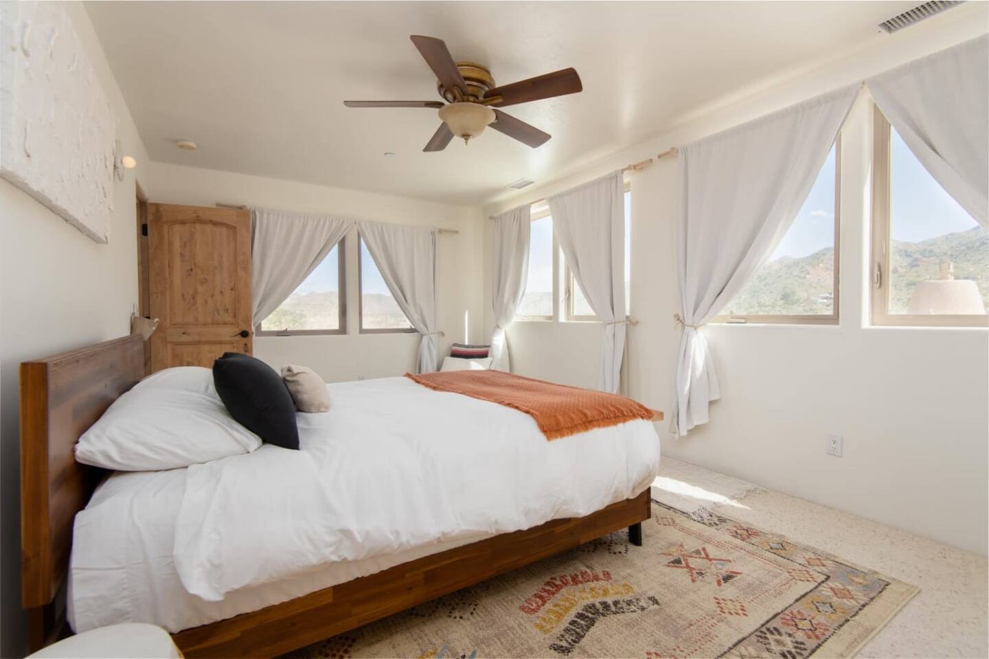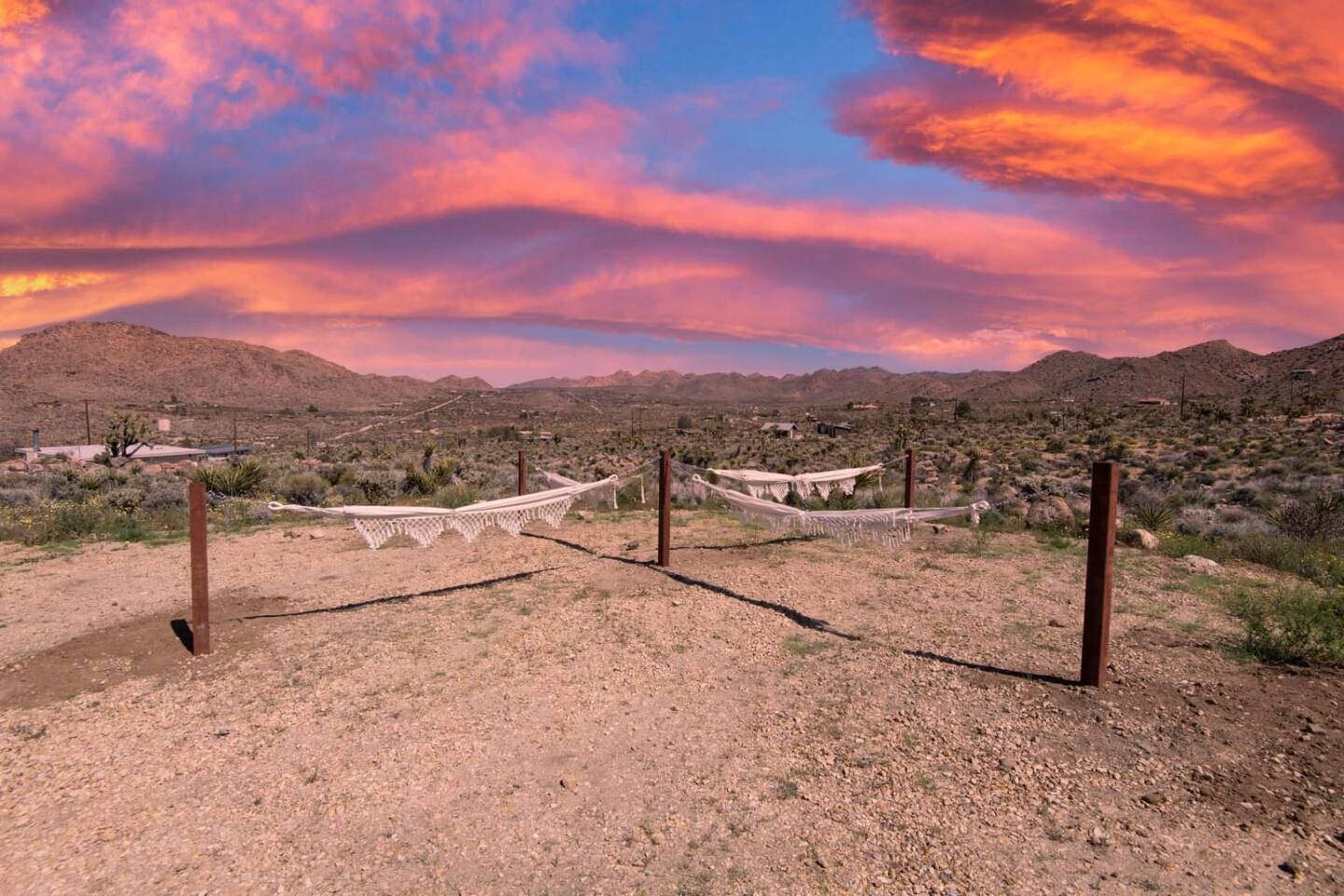 Set on five sun-drenched acres in north Joshua Tree, The Desert Lily is a relaxed and character-filled retreat surrounded by open desert and endless views. The Sunrise Suite offers a private living area, two bedrooms upstairs, and your own hot tub—plus access to shared outdoor spaces and the home’s main common areas. Both bedrooms have queen beds with cozy linens and natural light. The primary bathroom is attached to one bedroom, and there’s an additional shared living area with a TV and comfortable sofa. Enjoy use of the shared kitchen, outdoor dining areas, firepit, and pool. Lounge in a hammock, watch the sunrise over the desert, or unwind in your private hot tub under the stars. Highlights Include: Private entrance with two bedrooms and one bath Private hot tub and shared pool Shared kitchen, dining room, and firepit Rustic, well-loved desert home with charm and history EV charging available 15 minutes to Joshua Tree National Park Peaceful, simple, and full of character—a true high-desert experience. Local Experiences: Enhance your stay with thoughtfully curated local experiences. Sound baths at the Integratron or with a local practitioner Massage, bodywork, or energy sessions at the house Guided desert hikes and nature walks Yoga, Pilates, or breathwork under open skies Private chef dinners and in-home dining Stargazing and astronomy tours Horseback rides through desert trails Cold plunges and wellness sessions with local experts We’d love to connect you with our favorite local guides and practitioners.